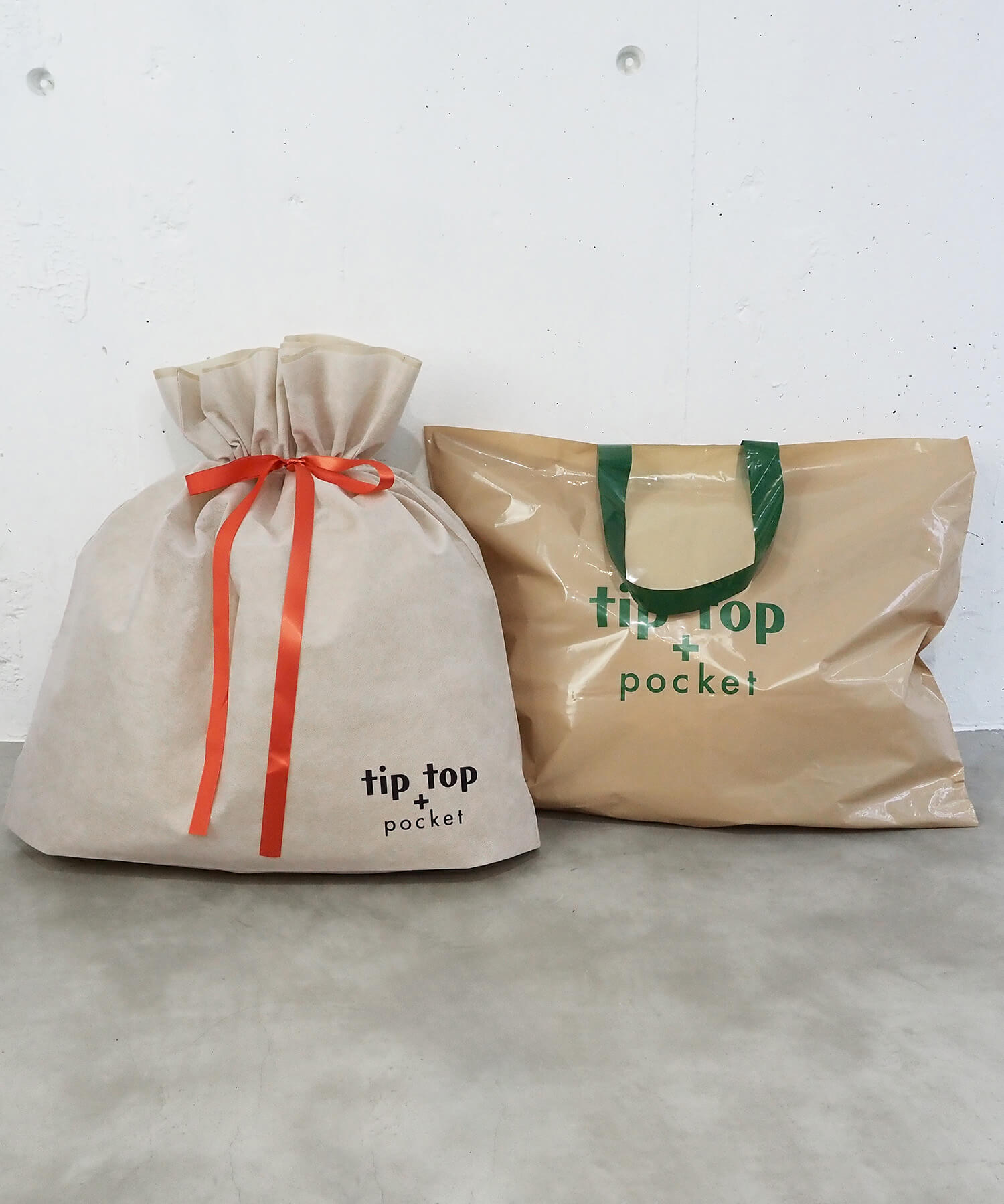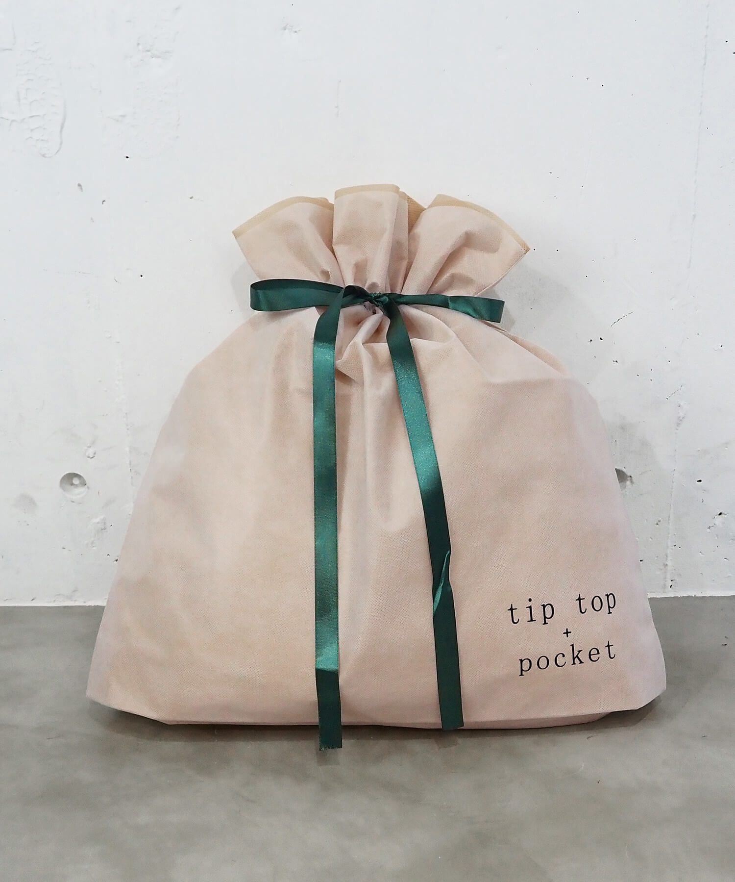 ・tiptop+pocketのロゴ入りの巾着型ギフトラッピング袋(L)です。