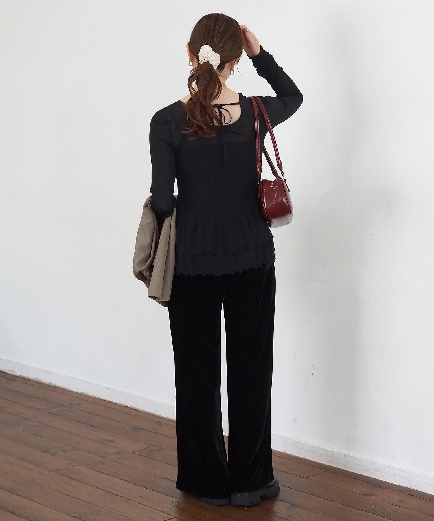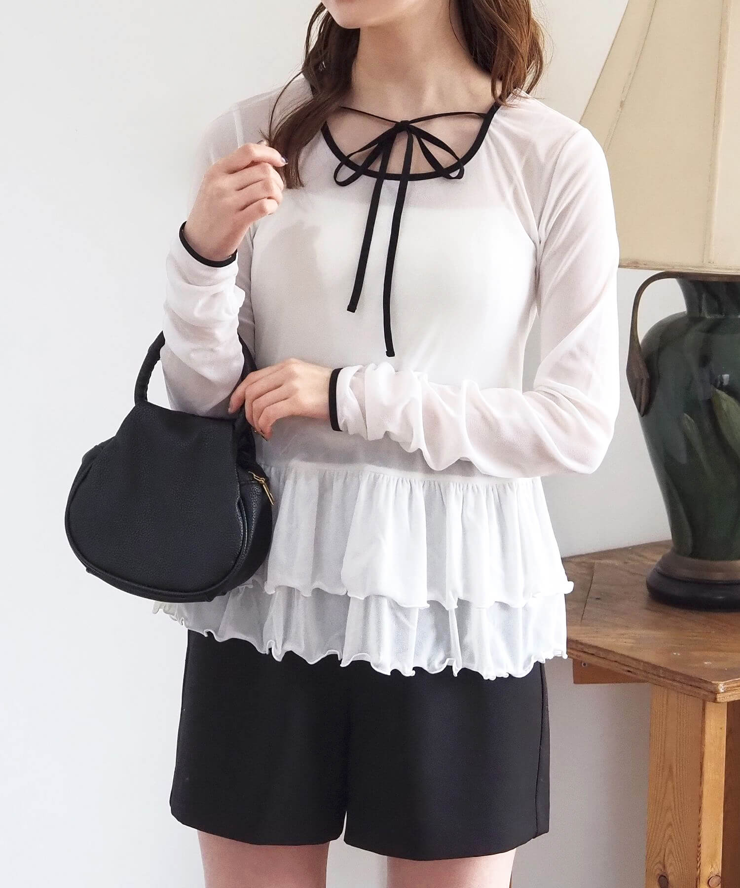 ・ショート丈のニットやスウェットとのレイヤードにも最適。女性らしいシアー素材が旬の大人ガーリーを叶えます。