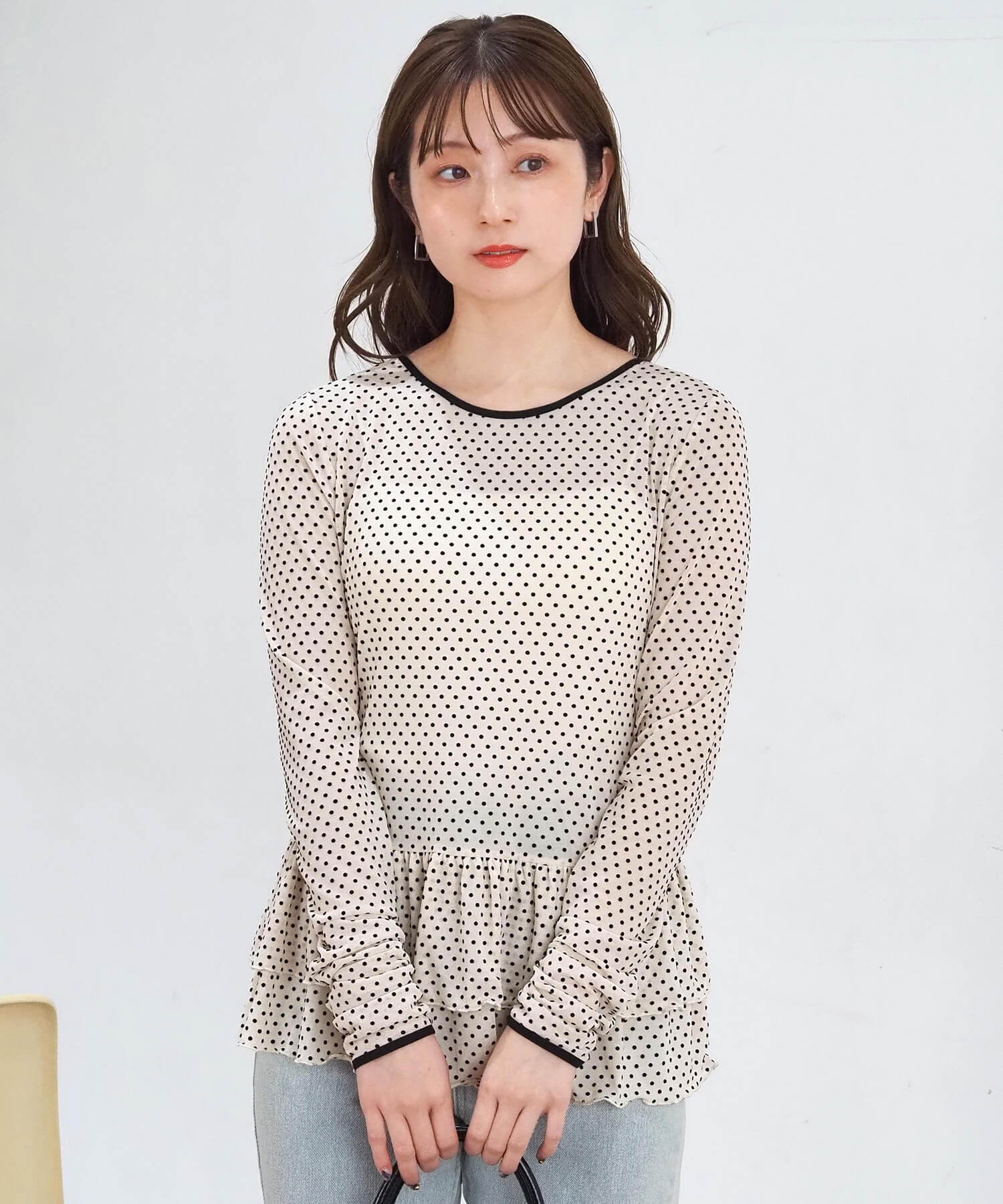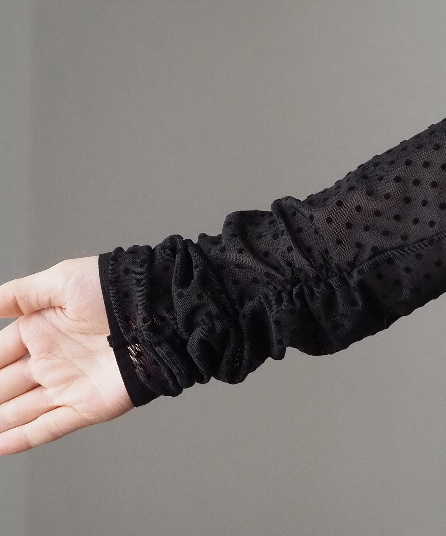 ・大人可愛いドット柄と、上品な無地の2タイプ。どちらも程よいシアー感で軽さのあるアイテムです。