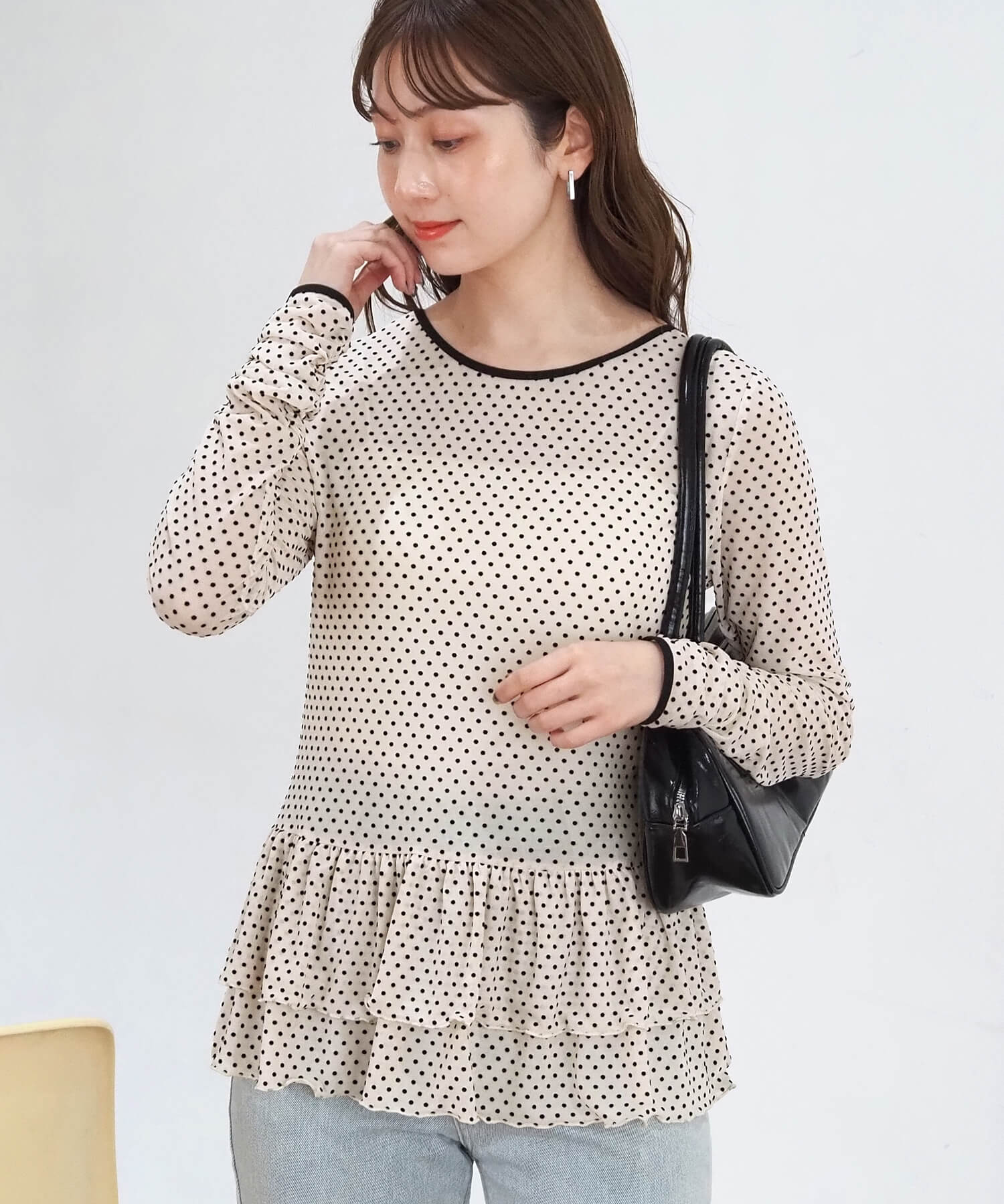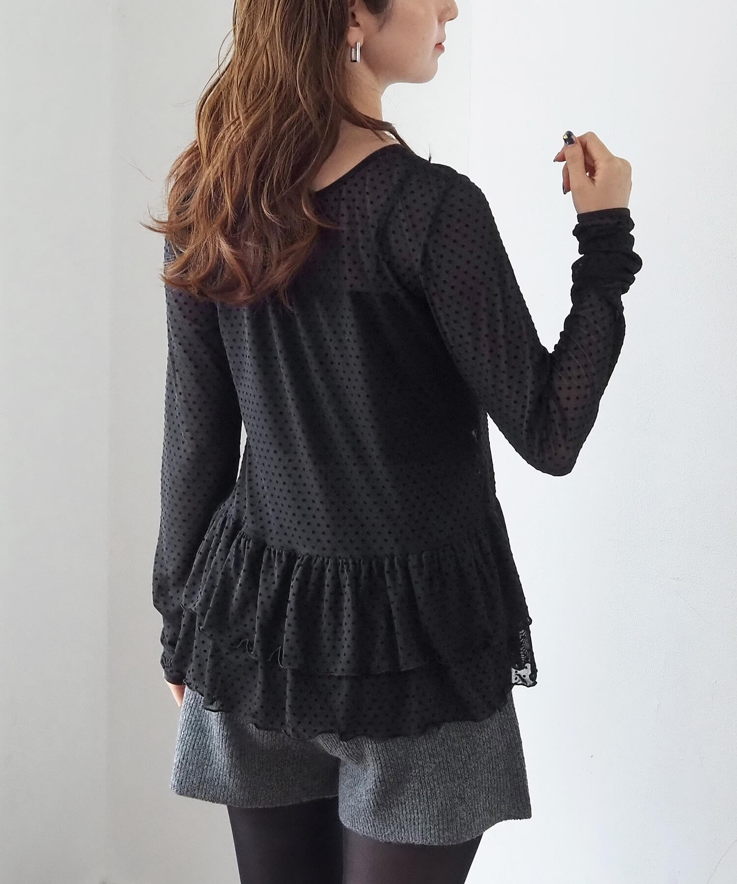 [1月6日販売開始!!] 前後2wayシアードット裾ティアードロンT