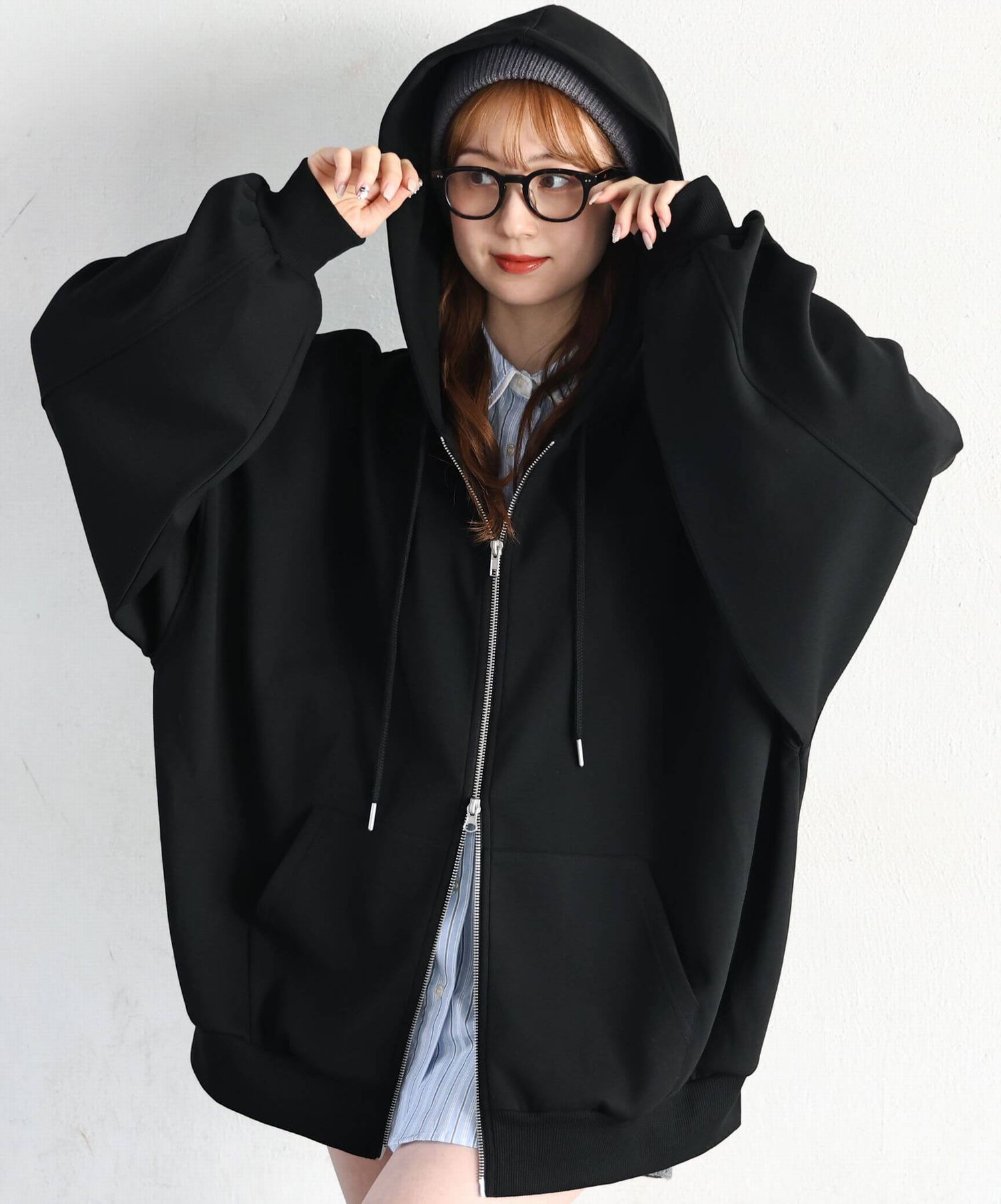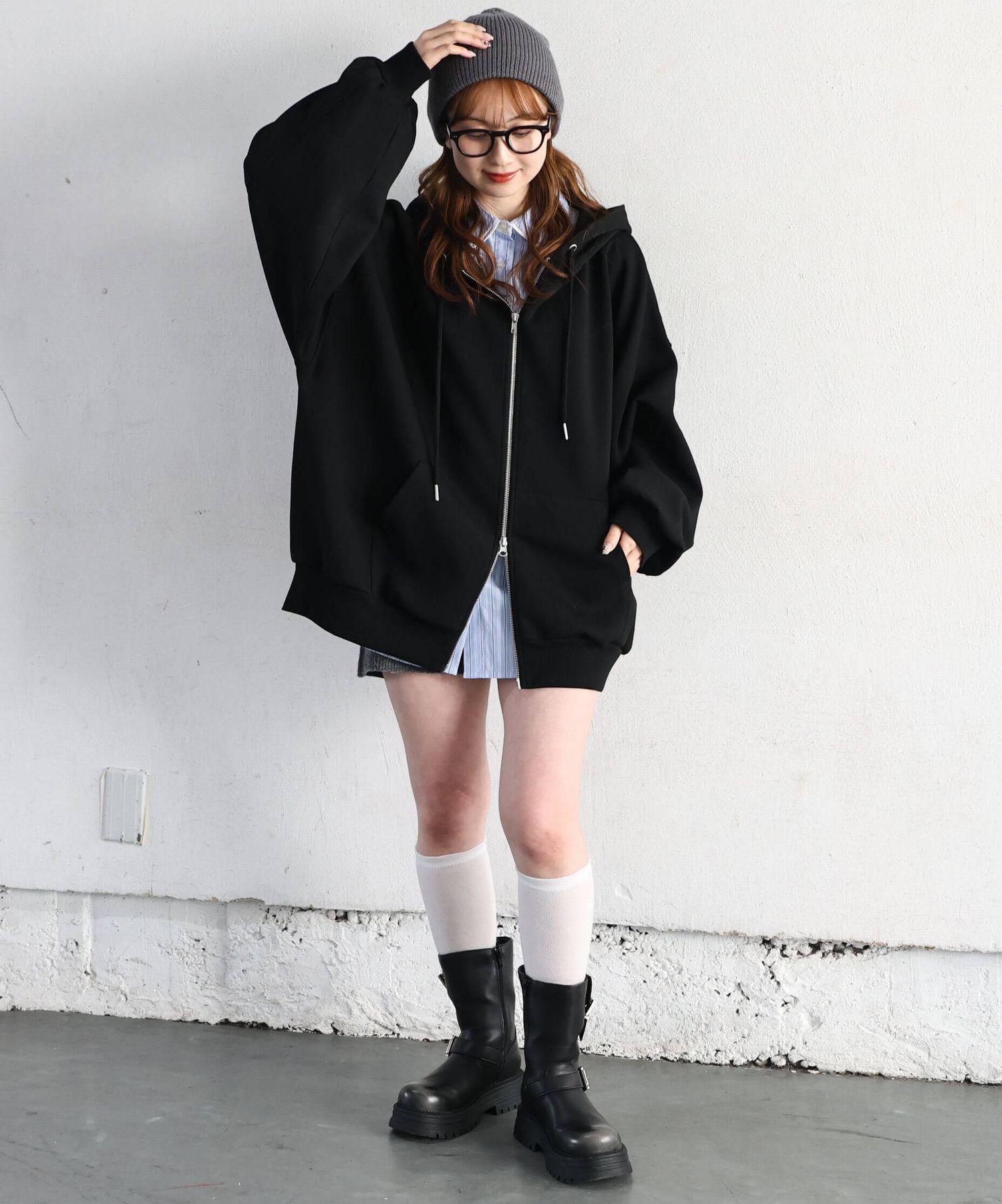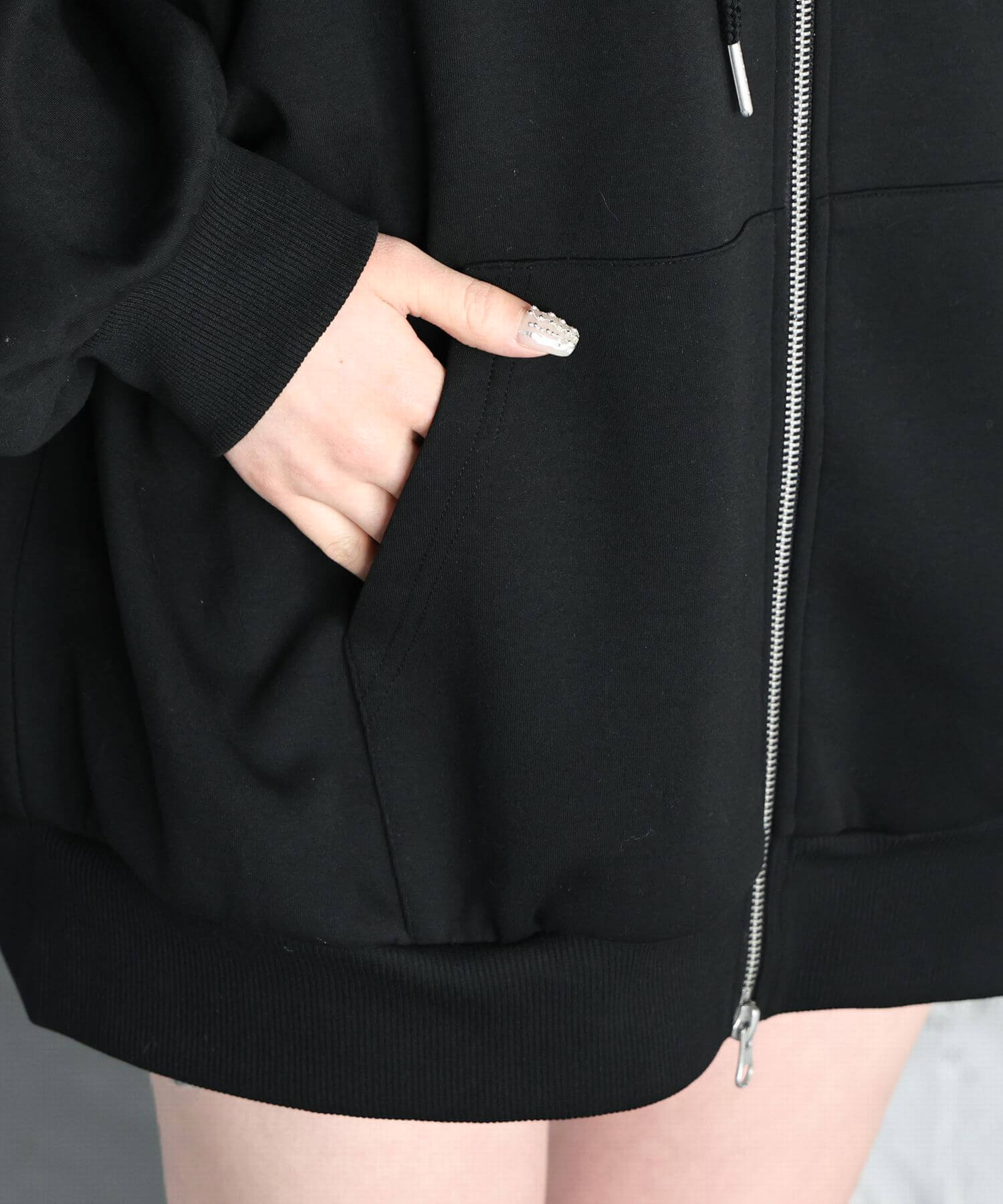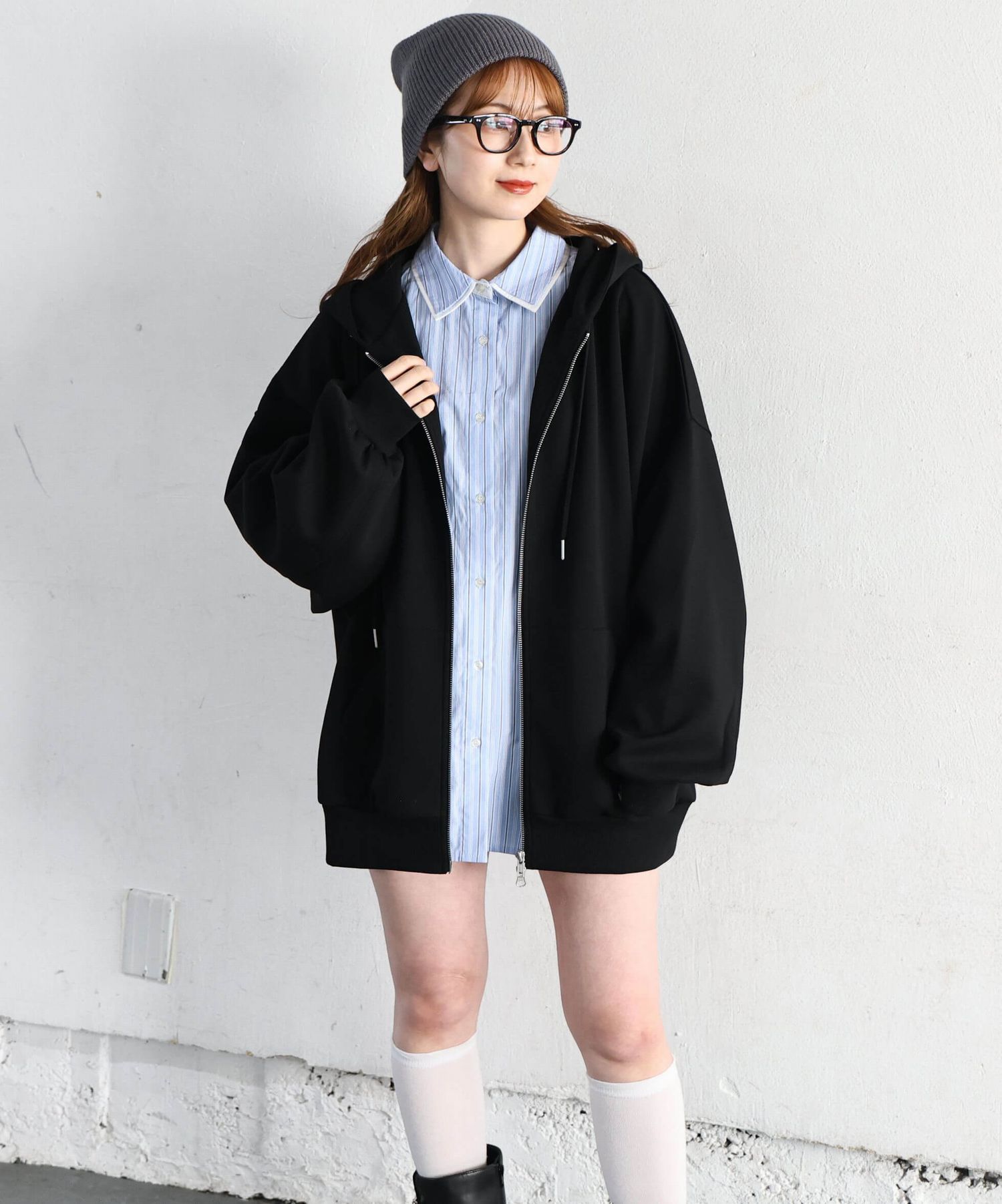 ・フロントのジップを少し開けると、程よい抜け感が出ます。