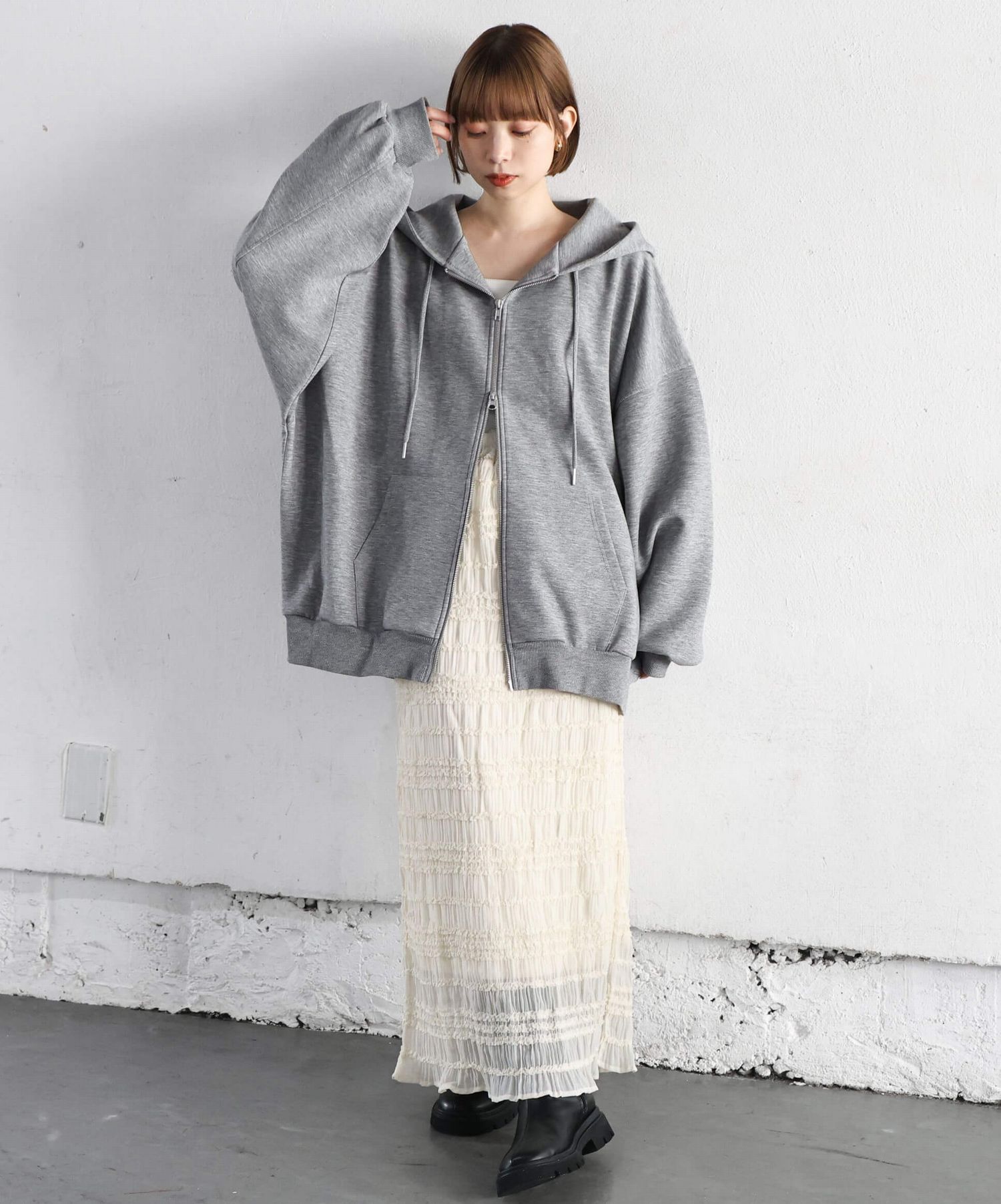 ・フロントはダブルジップで機能性も◎シルエットのアレンジも楽しめます。