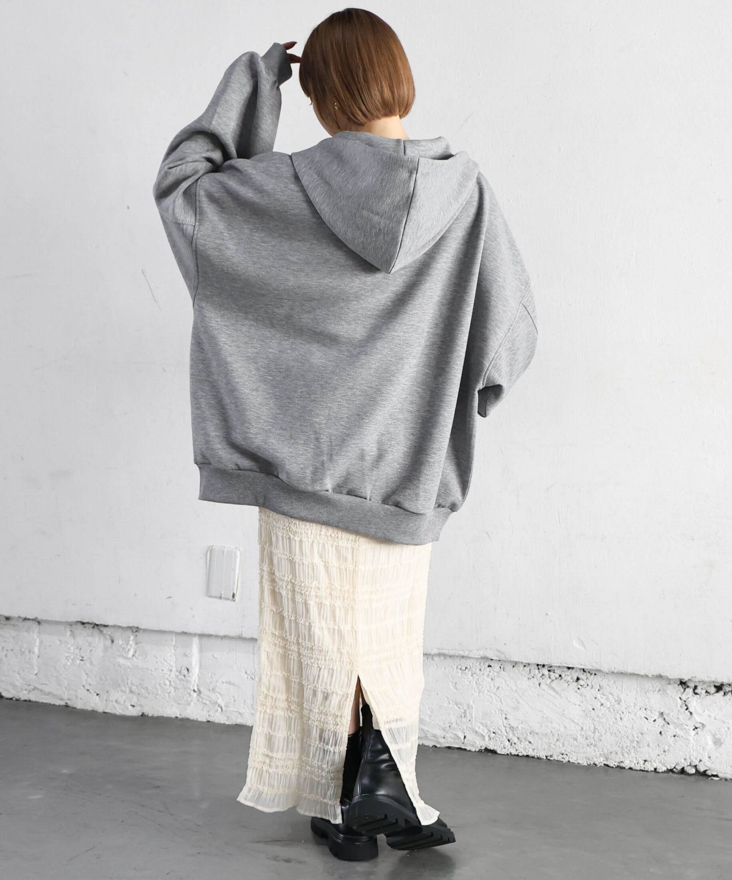 ※当アイテムはLサイズ表記ですが、ダンボールダブルジップパーカー(品番:07700T2062)のロング丈です。フリーサイズとして着用頂けるサイズ感です。