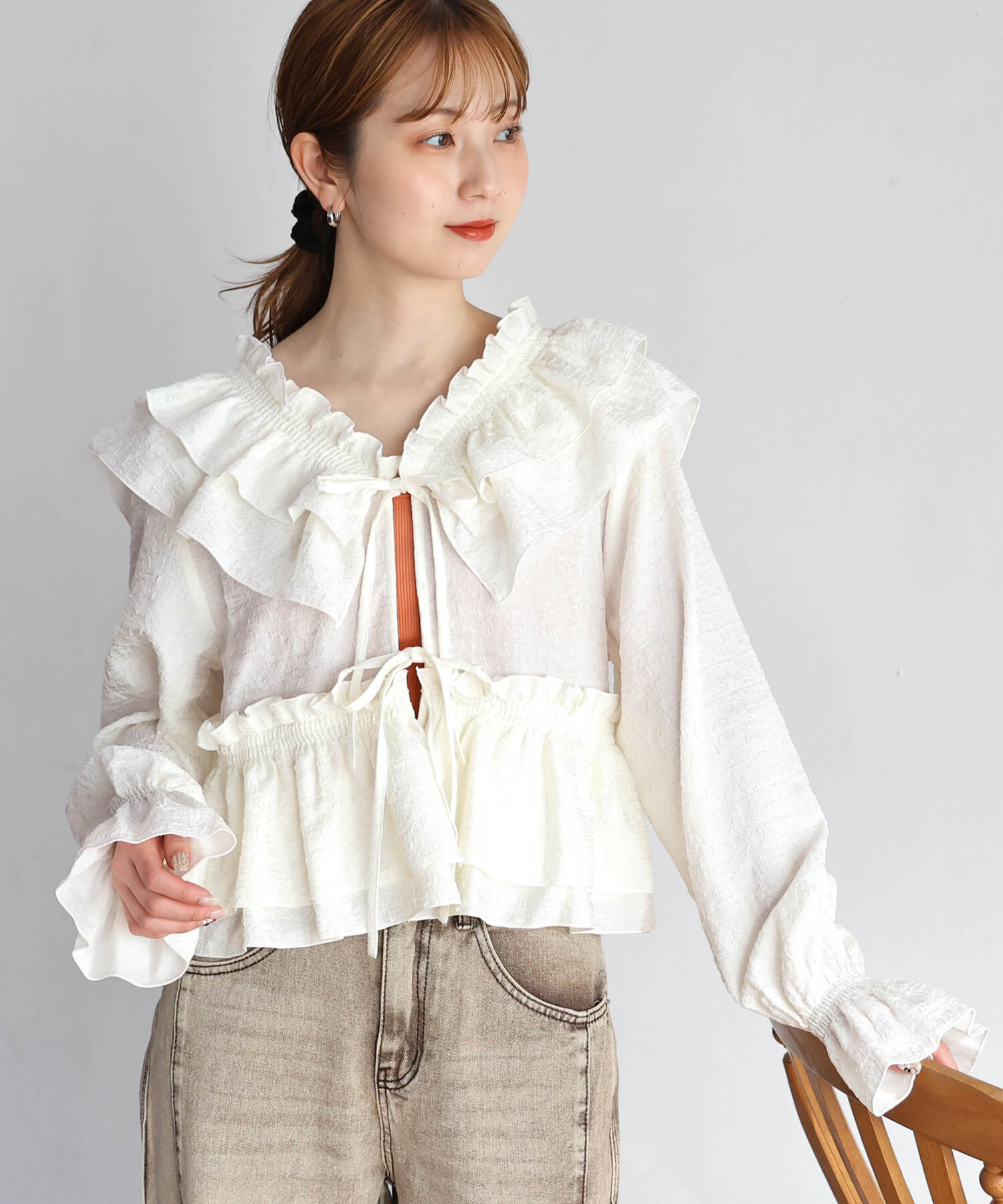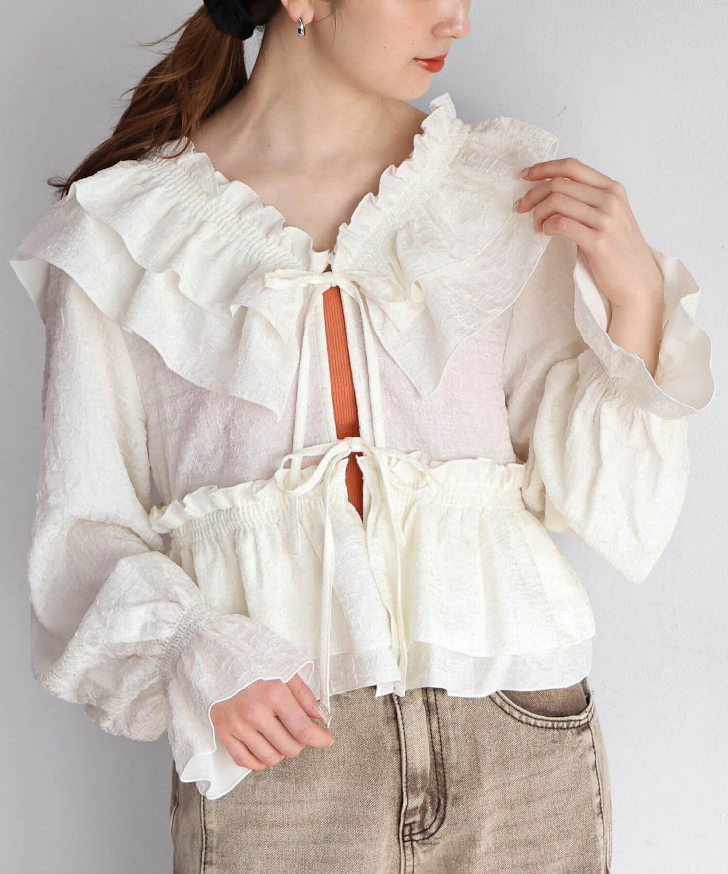[2月25日販売開始!!] フリルクロスマルチWAYブラウス