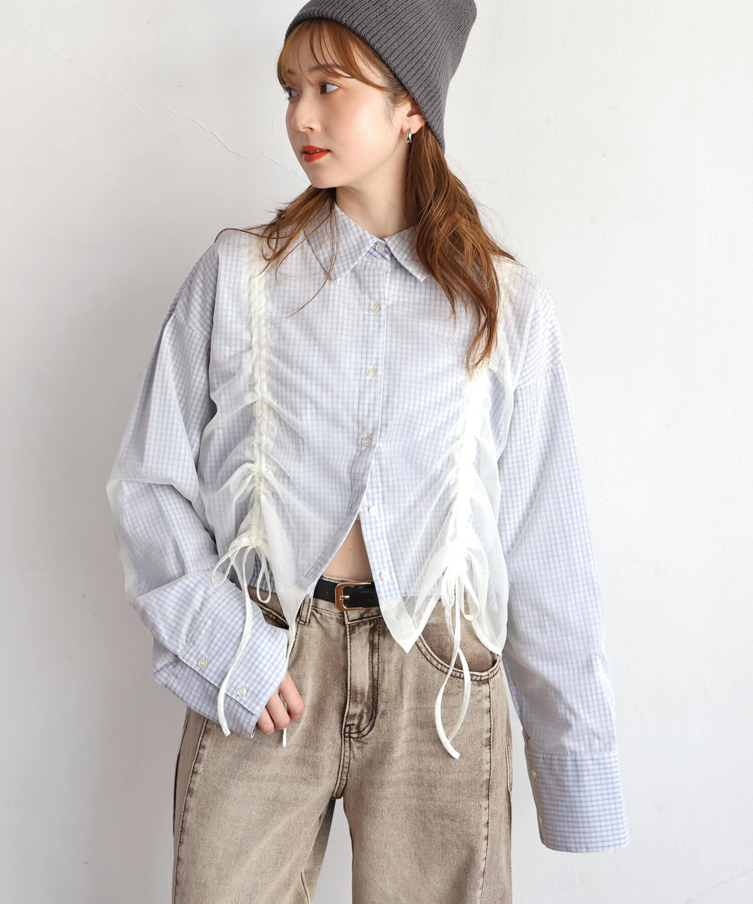 [2月25日販売開始!!] チュール重ね長袖シャツ