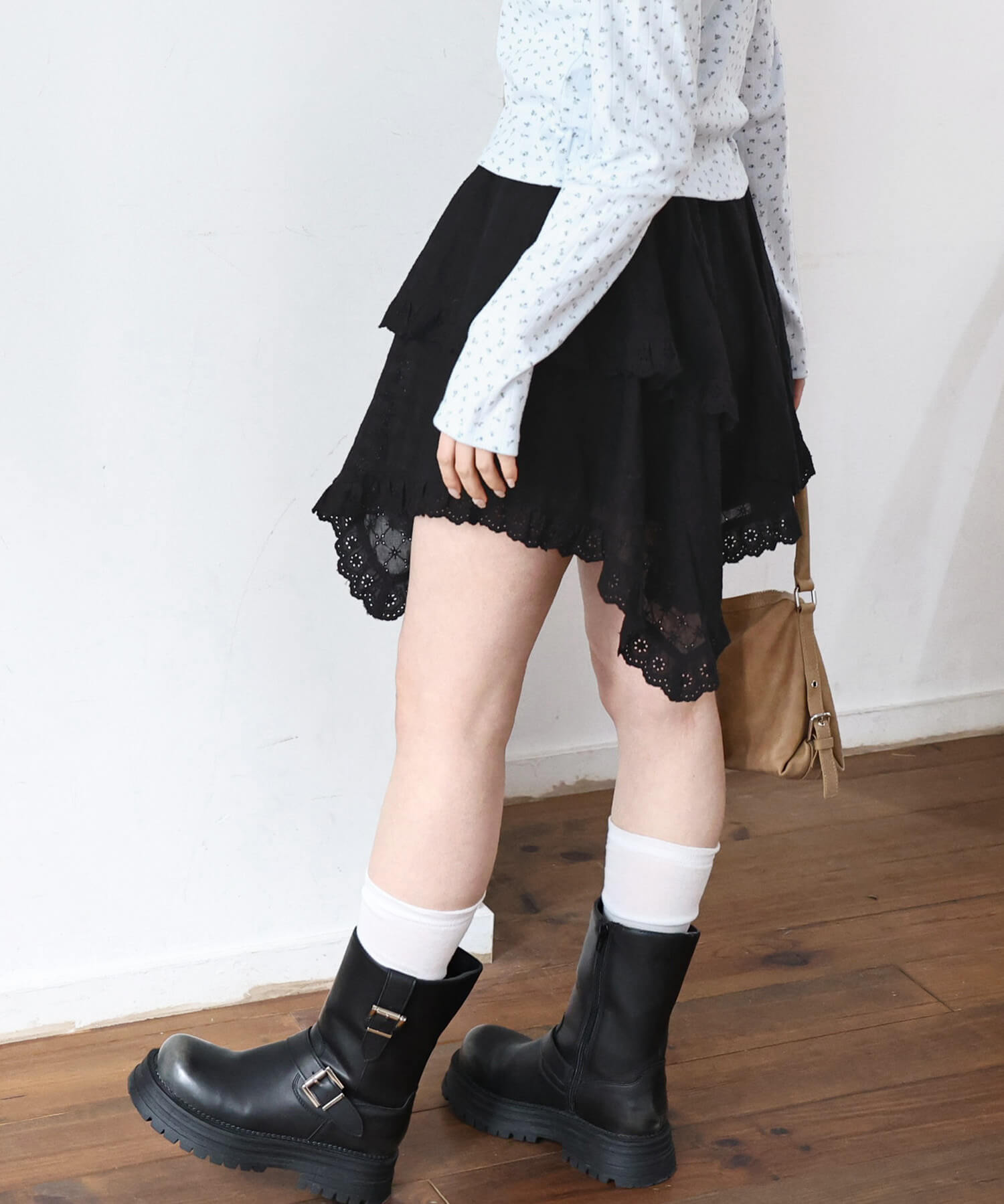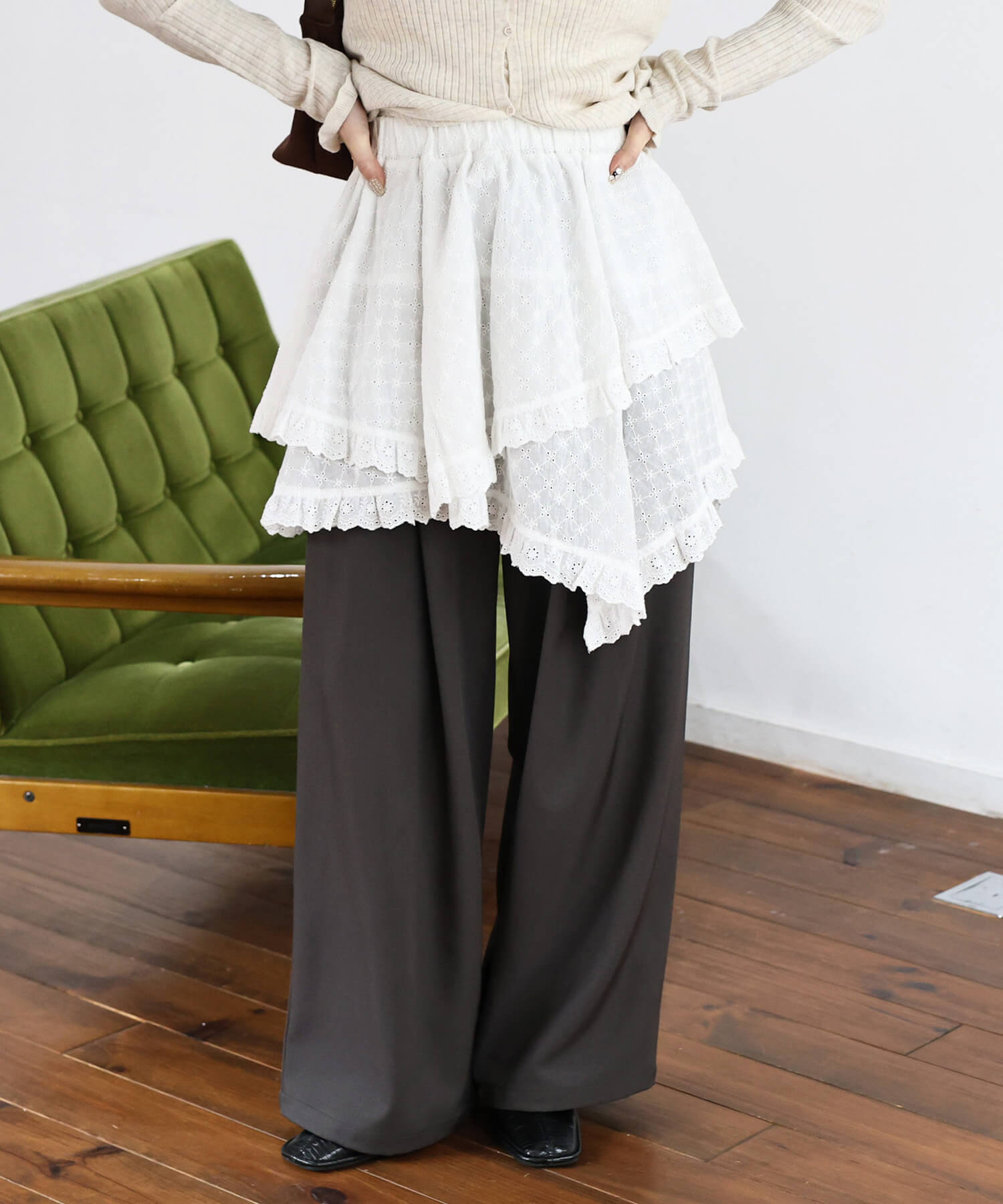 ・オーバーサイズトップスからレースを覗かせたり、気になるヒップ周りをお洒落にカバーできます。