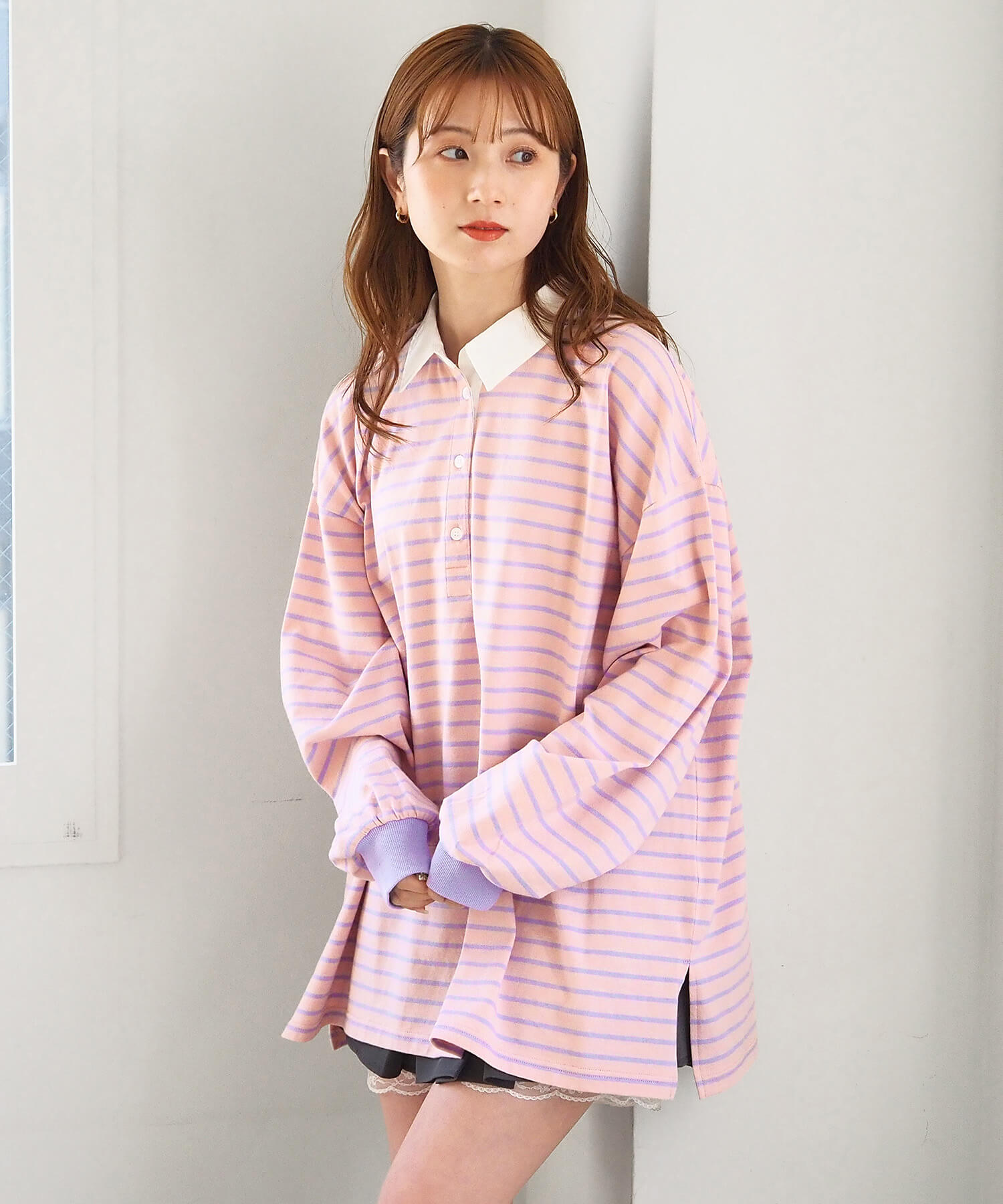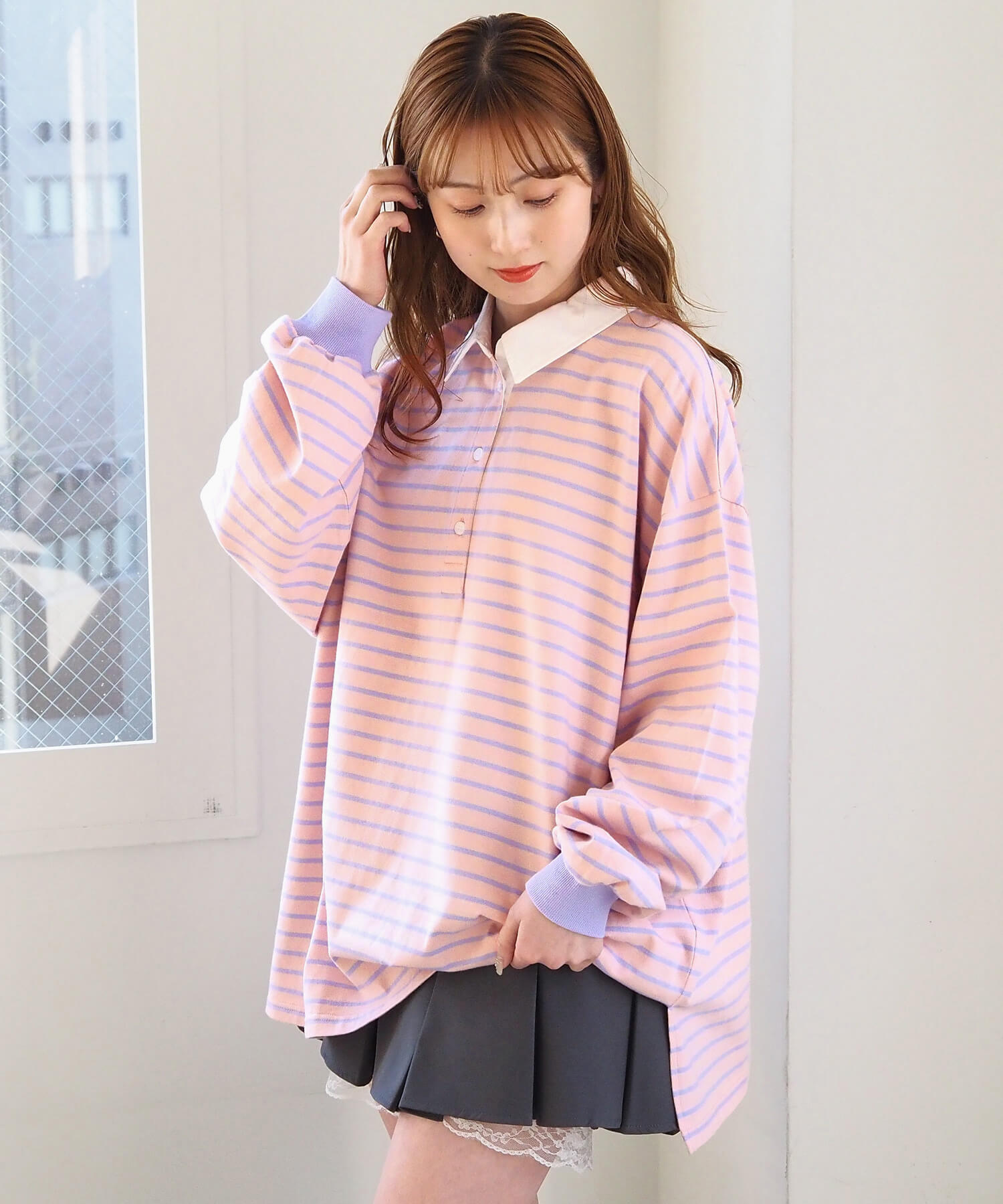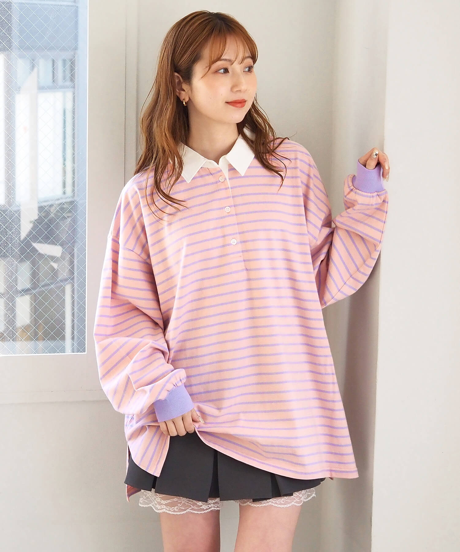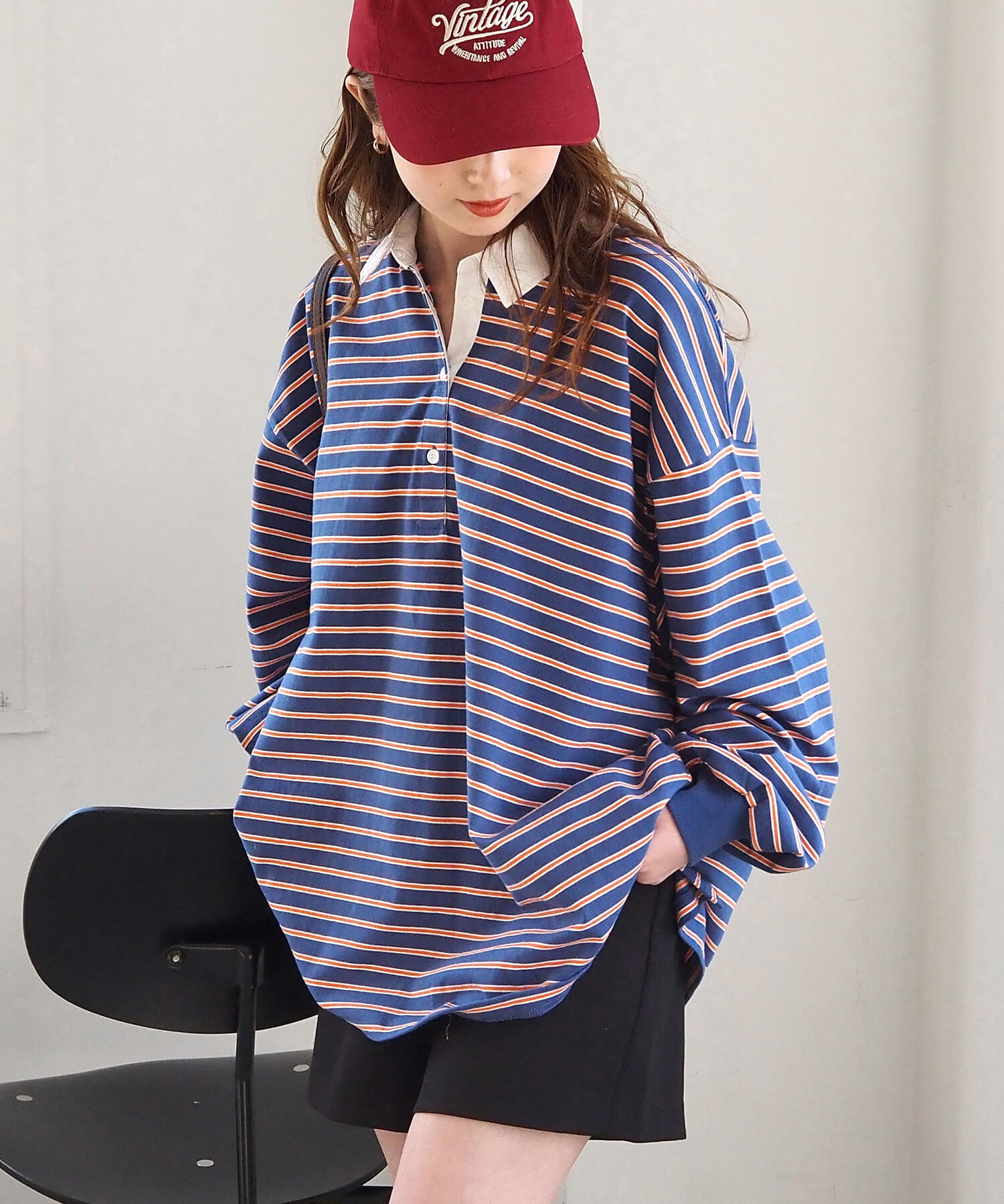 オーバーサイズが可愛いラガーロンT