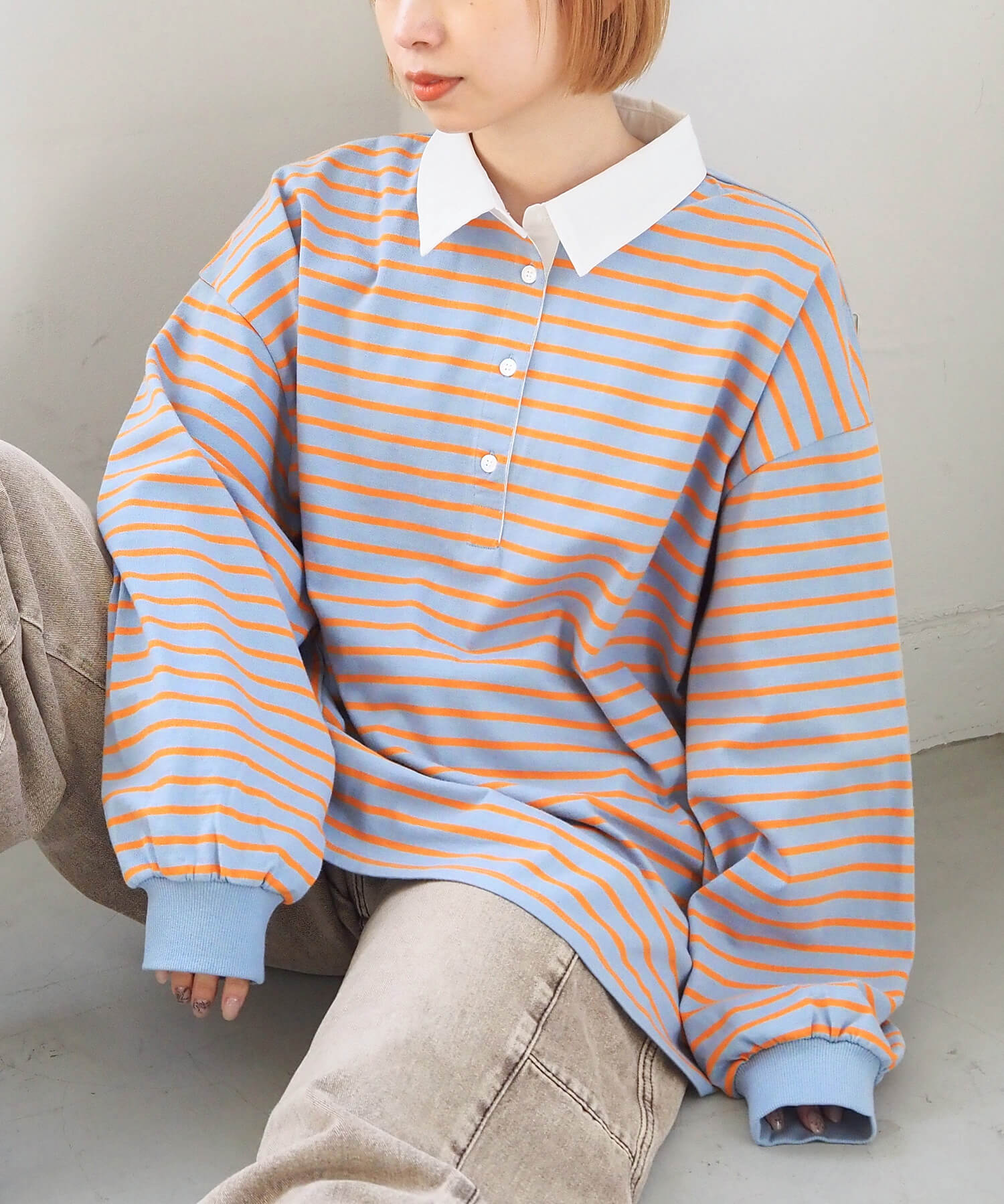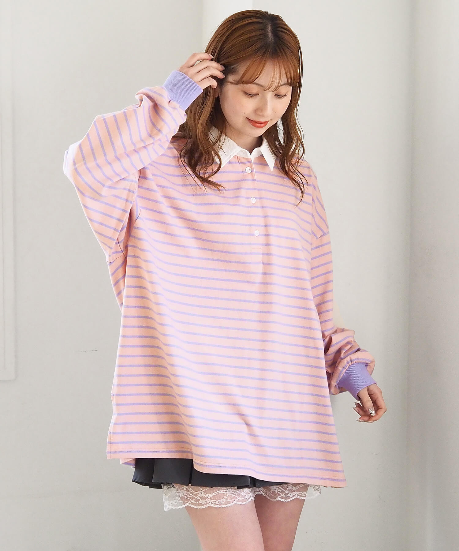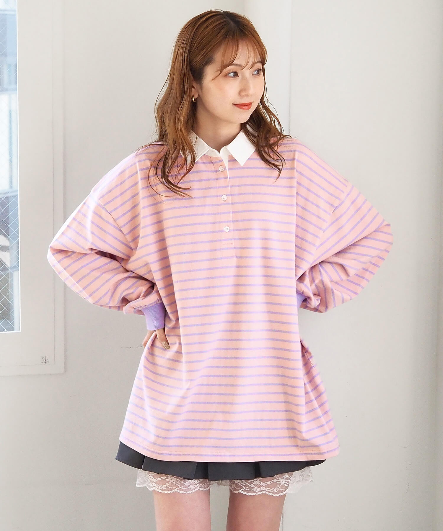 オーバーサイズが可愛いラガーロンT