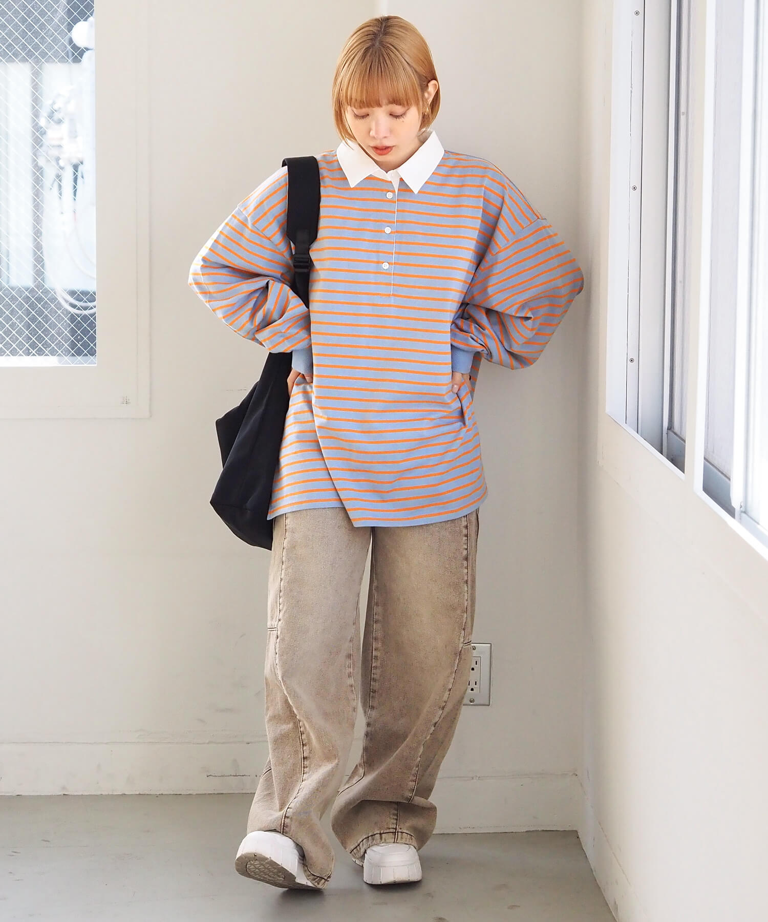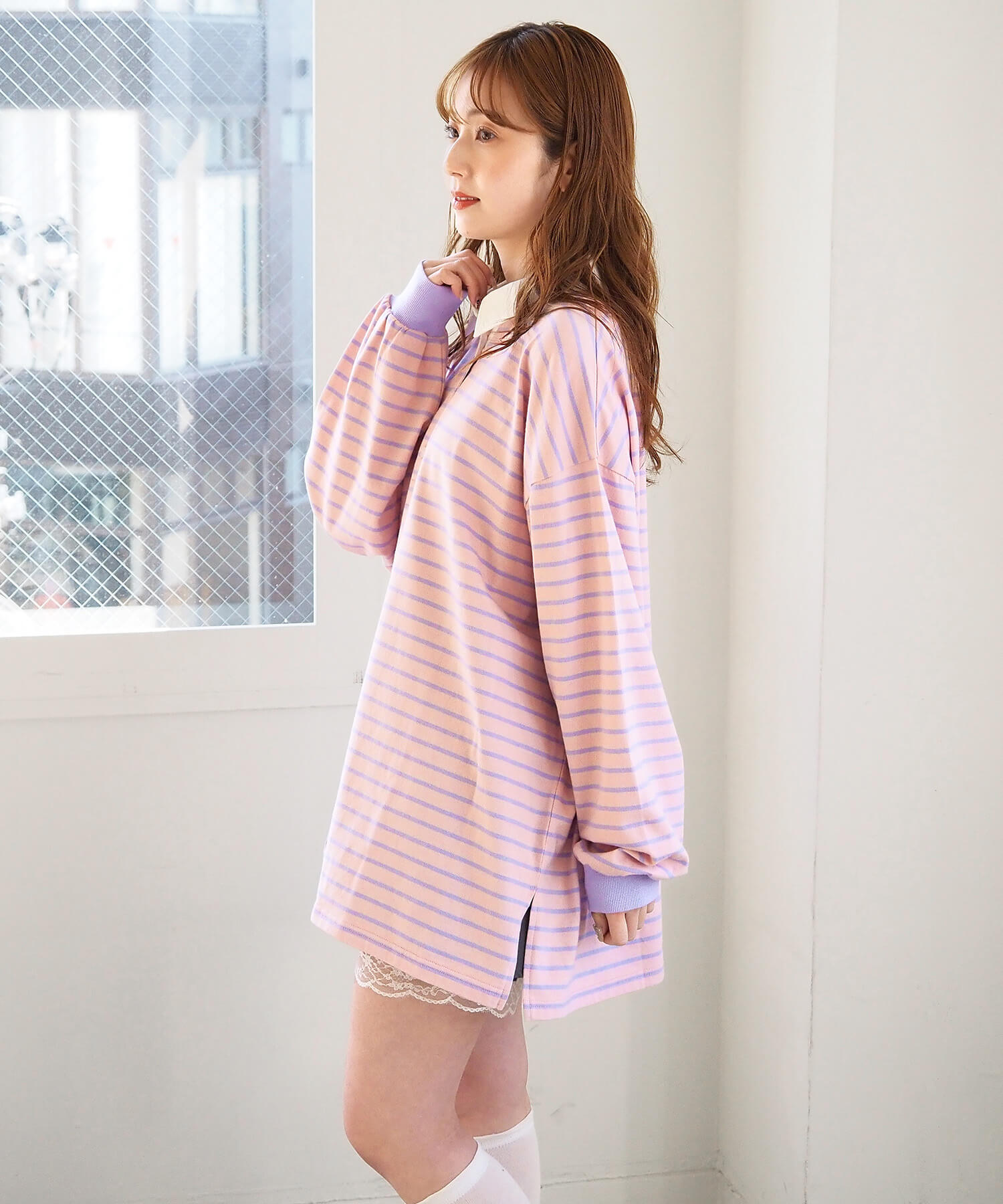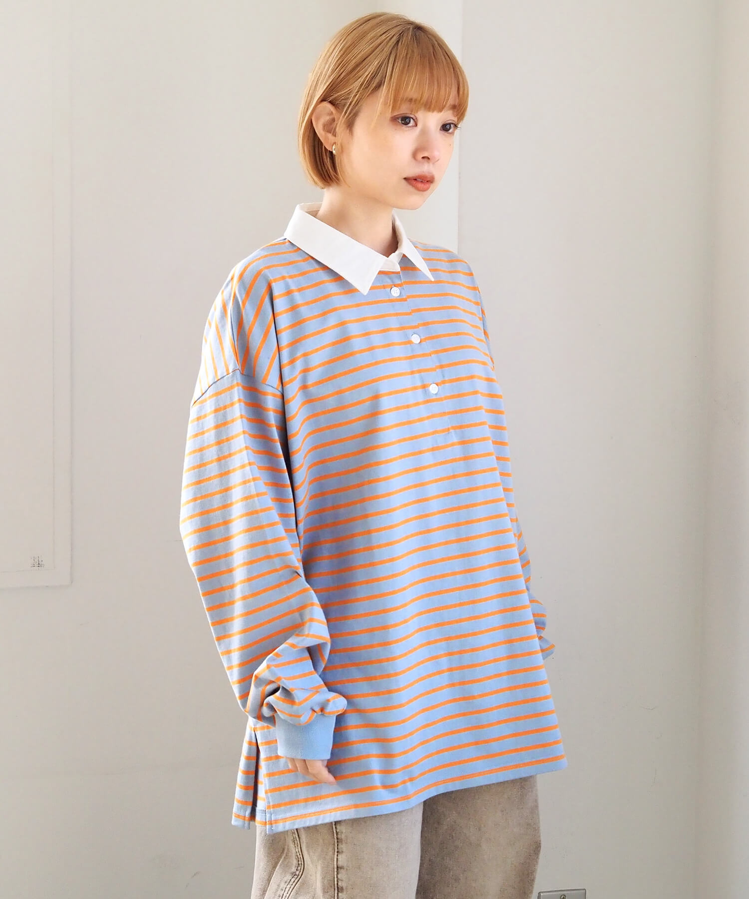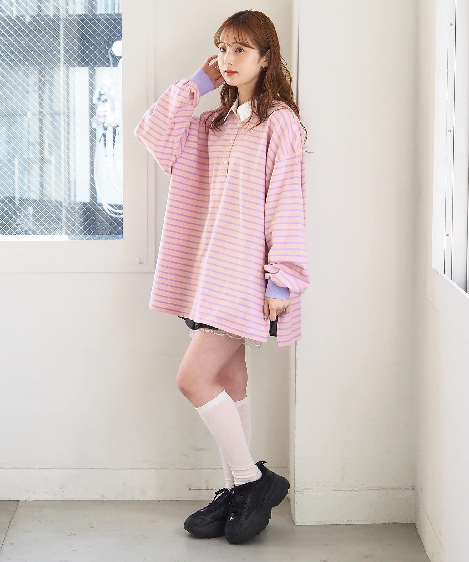 オーバーサイズが可愛いラガーロンT