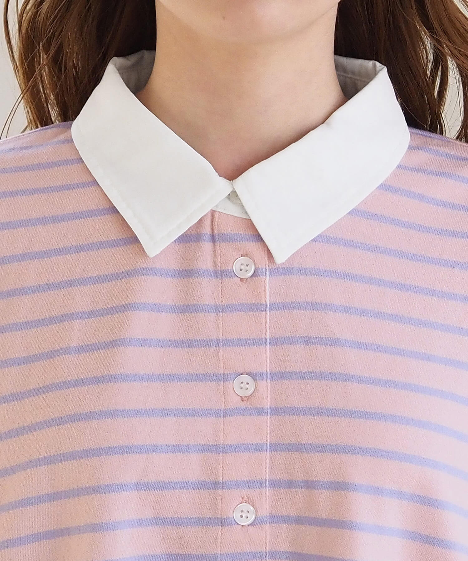 ・襟元も白で統一しているので派手見えせず、バッグやアウターなど、小物合わせも楽しめます。