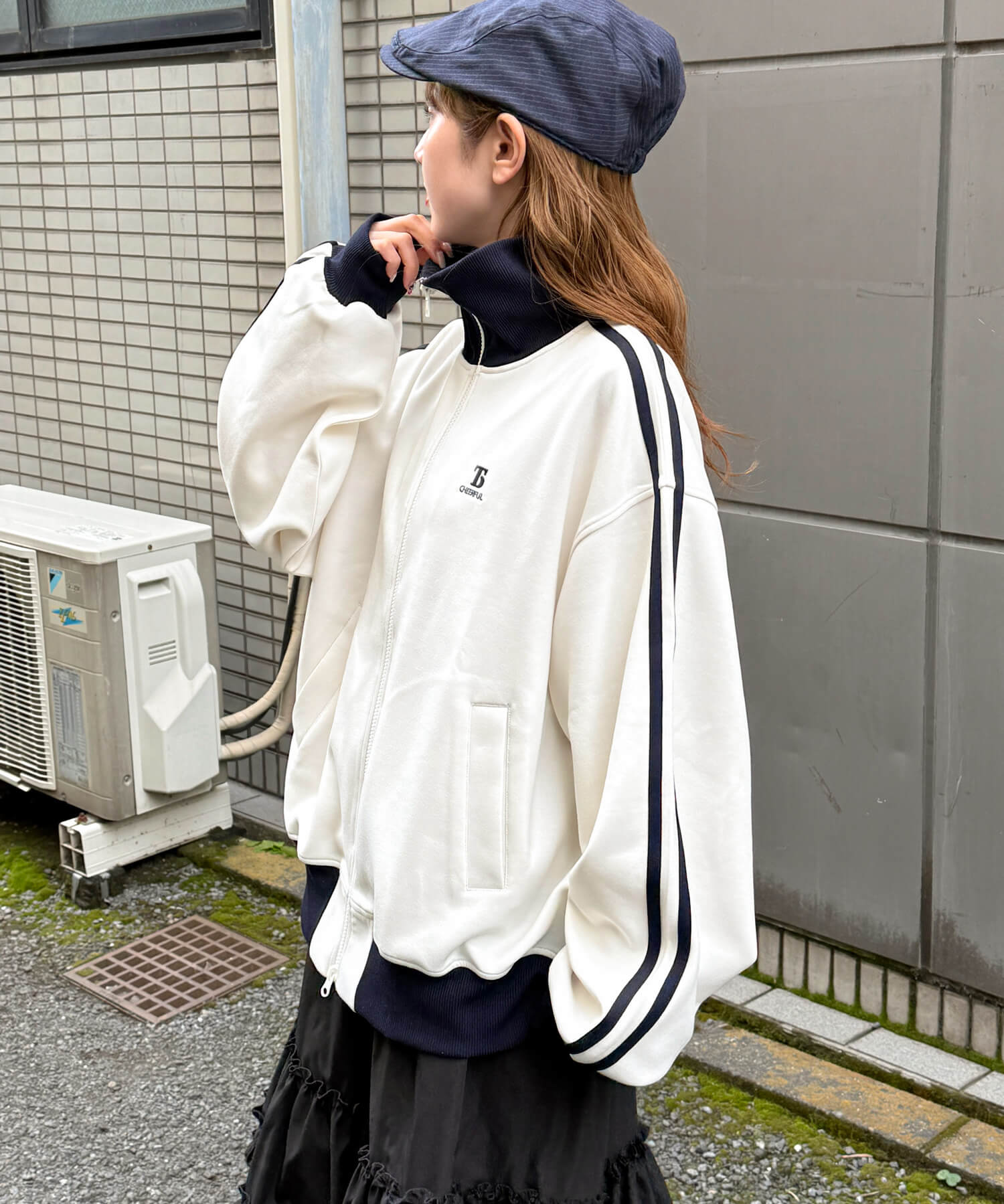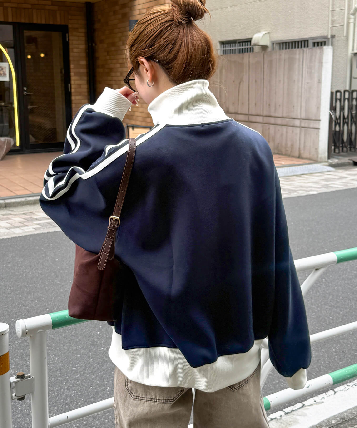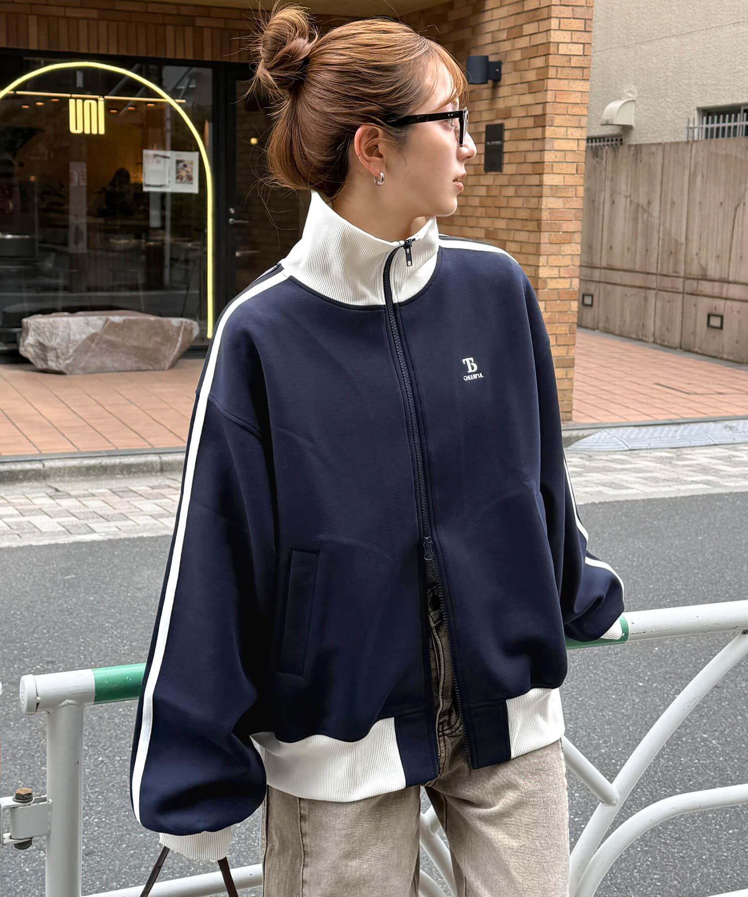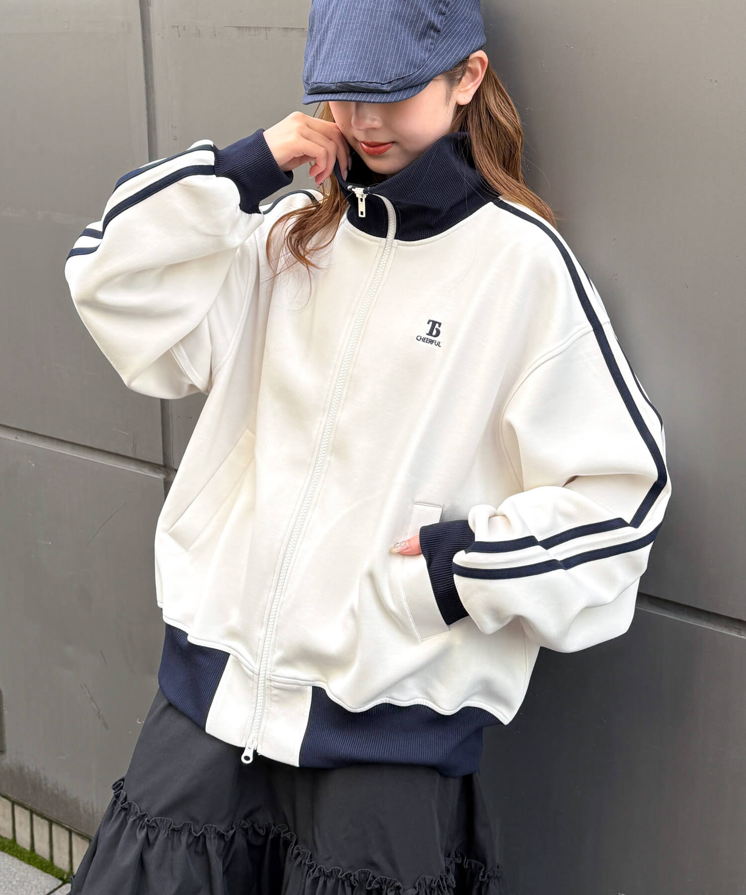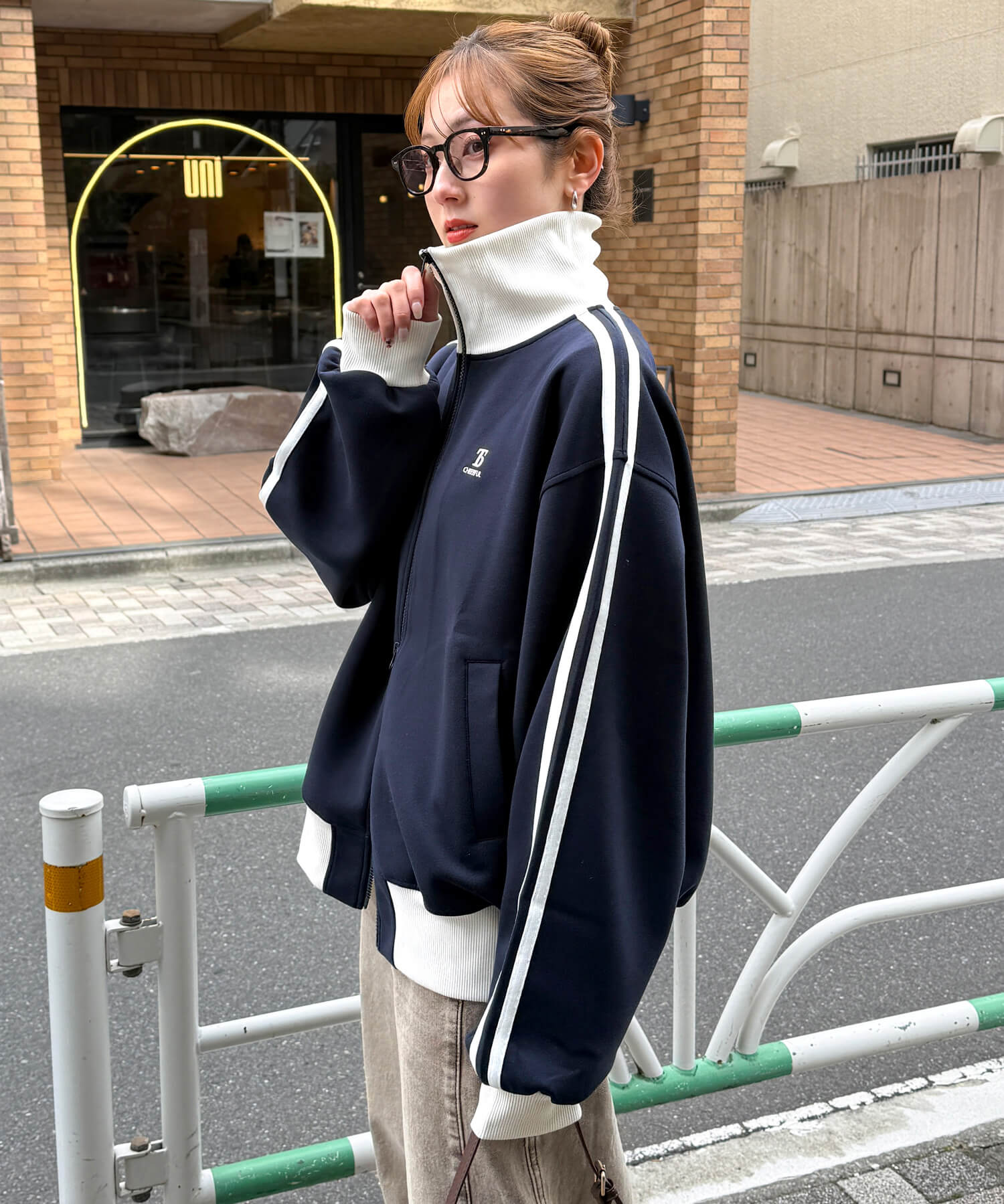 ・コーディネートの主役になるバイカラーのトラックジャケットです。
