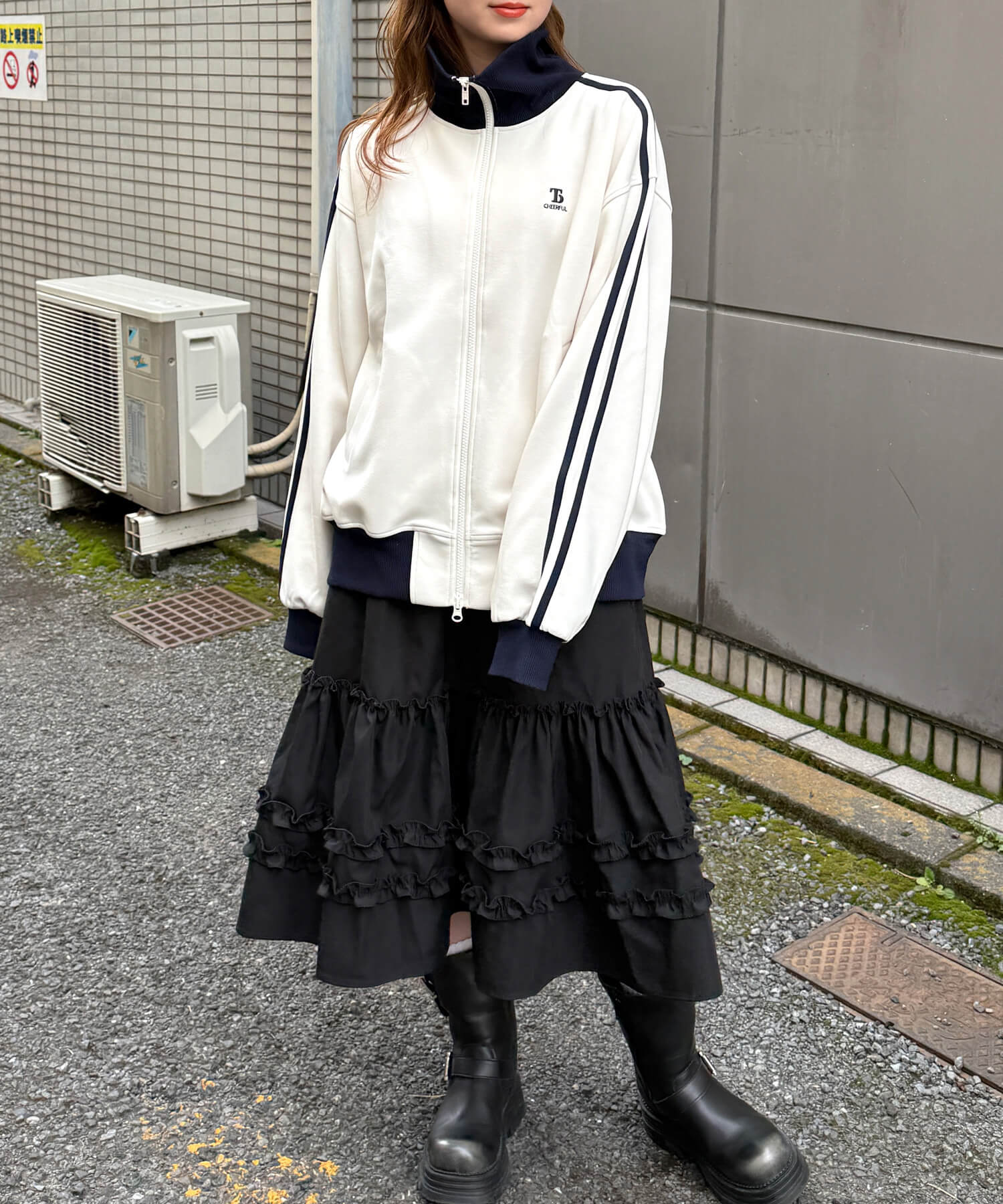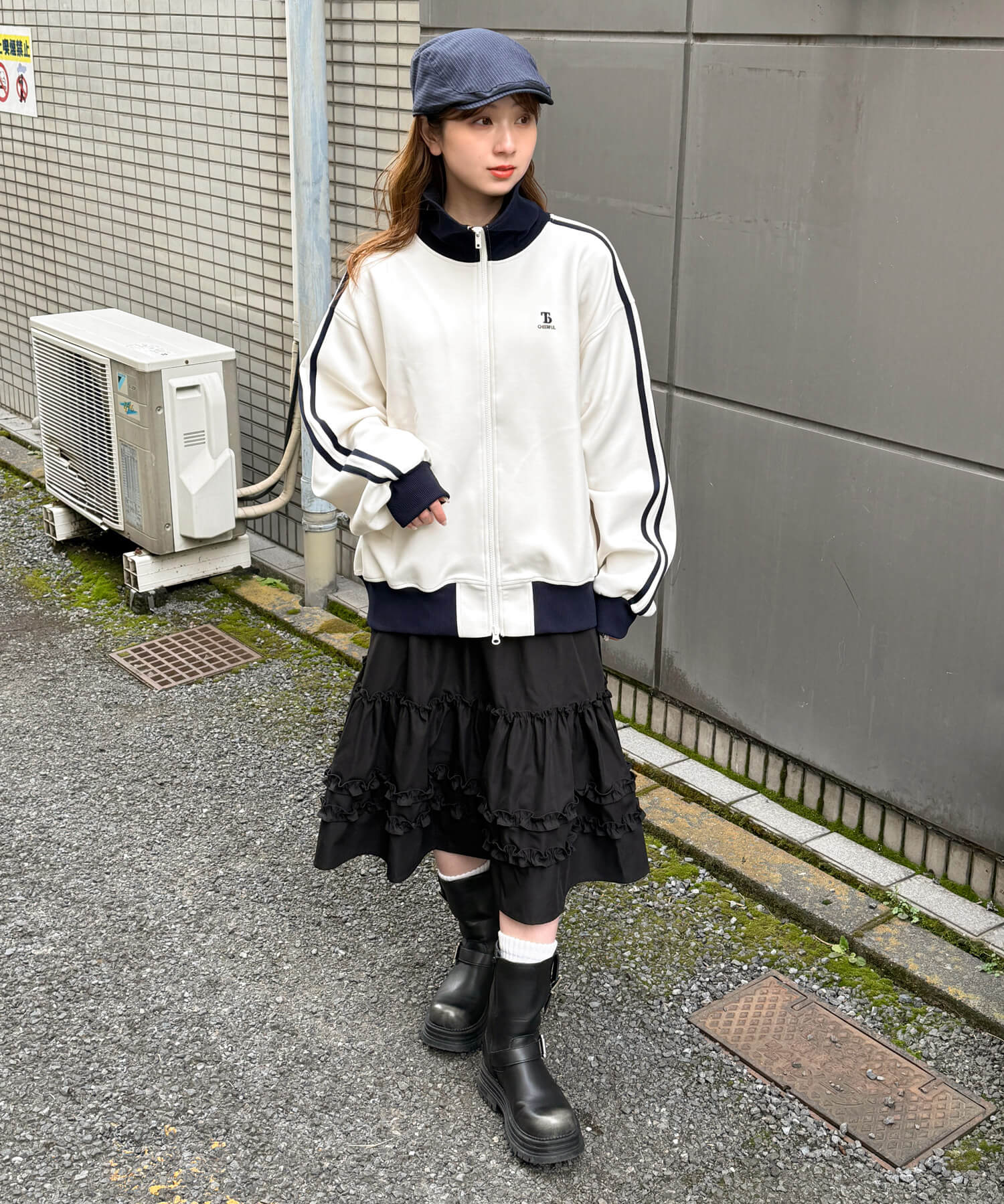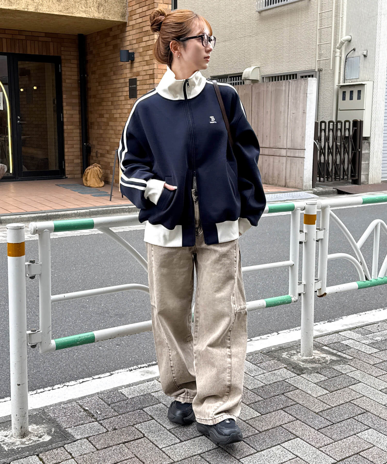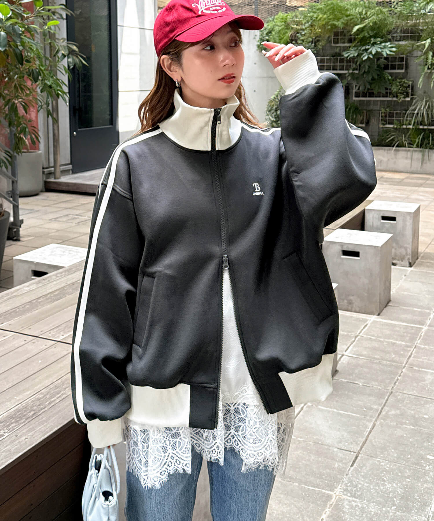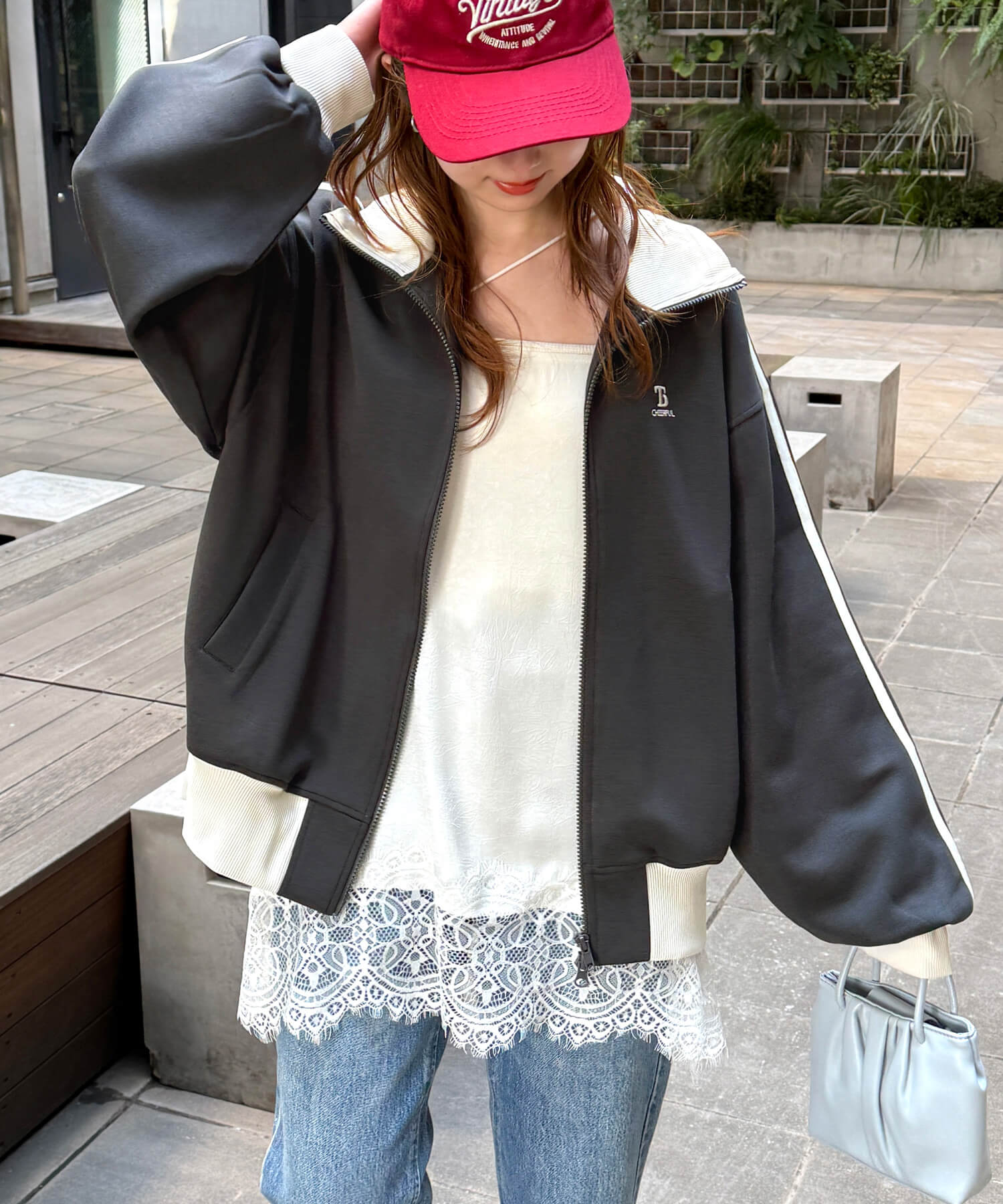 ・コーディネートの主役になるバイカラーのトラックジャケットです。