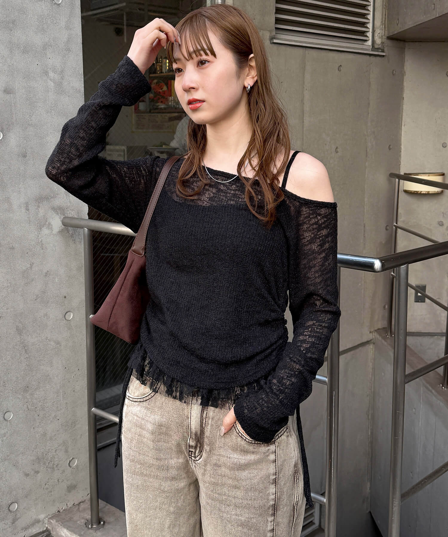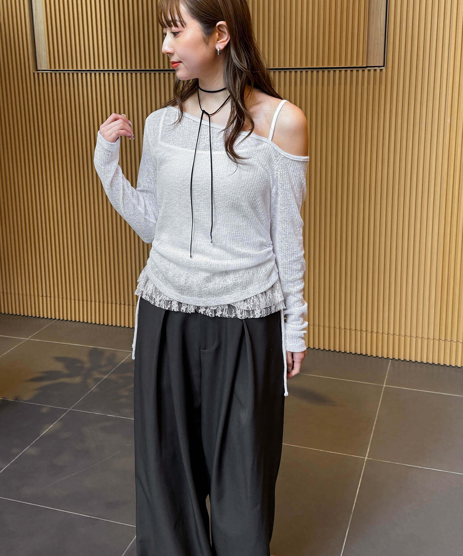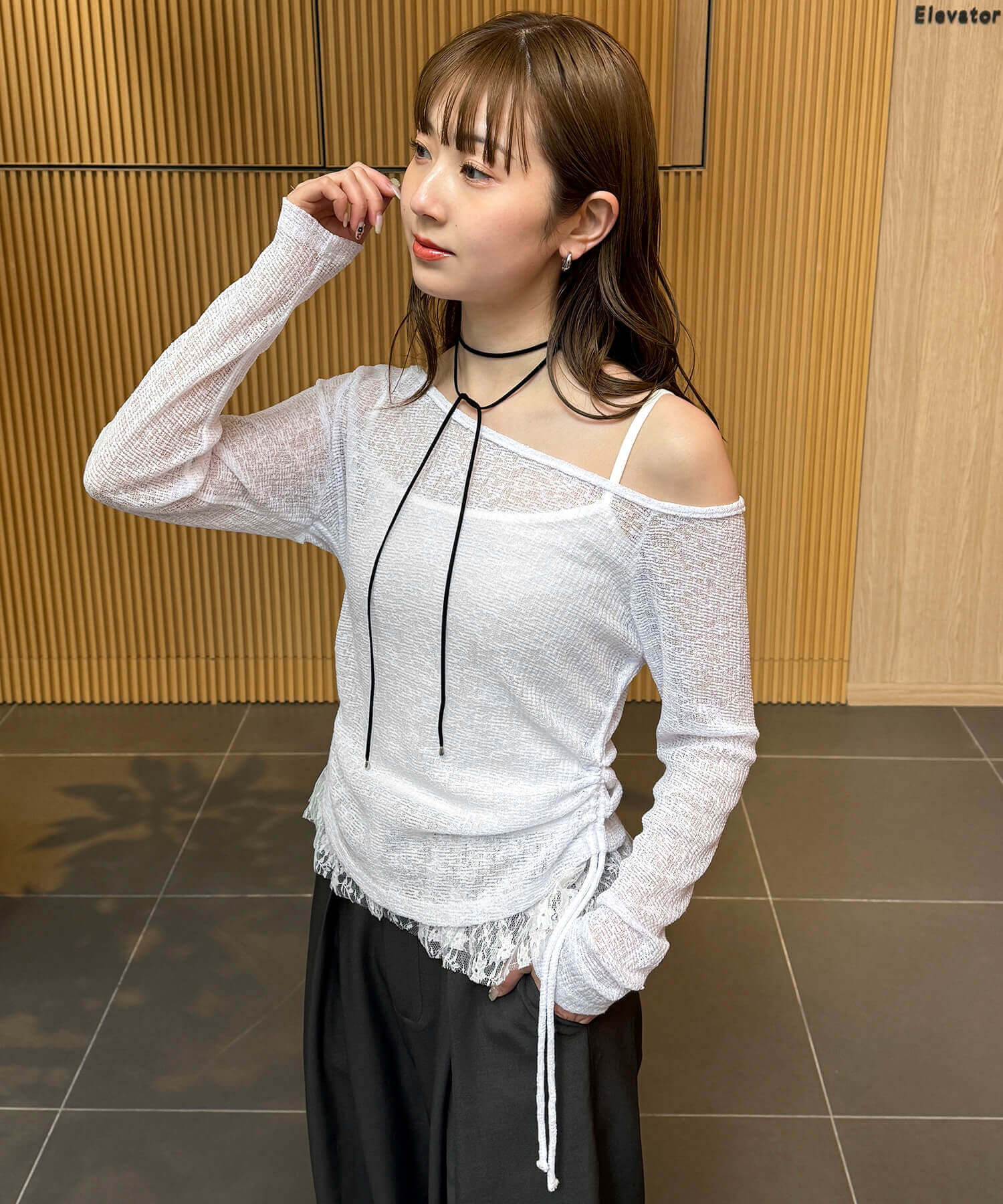 シアーカットソー×裾レースキャミソールのセットアイテム♪