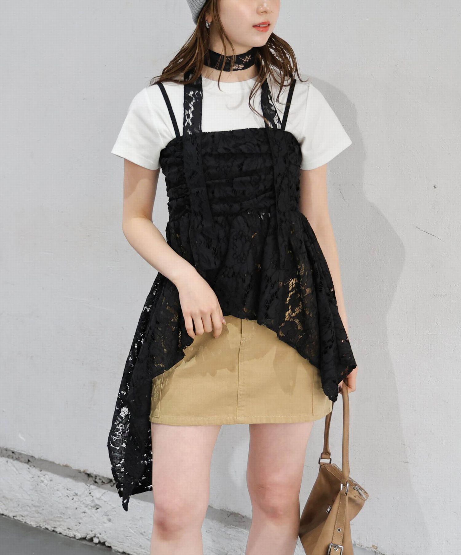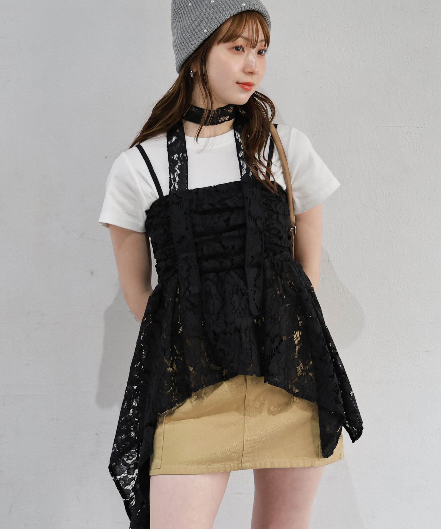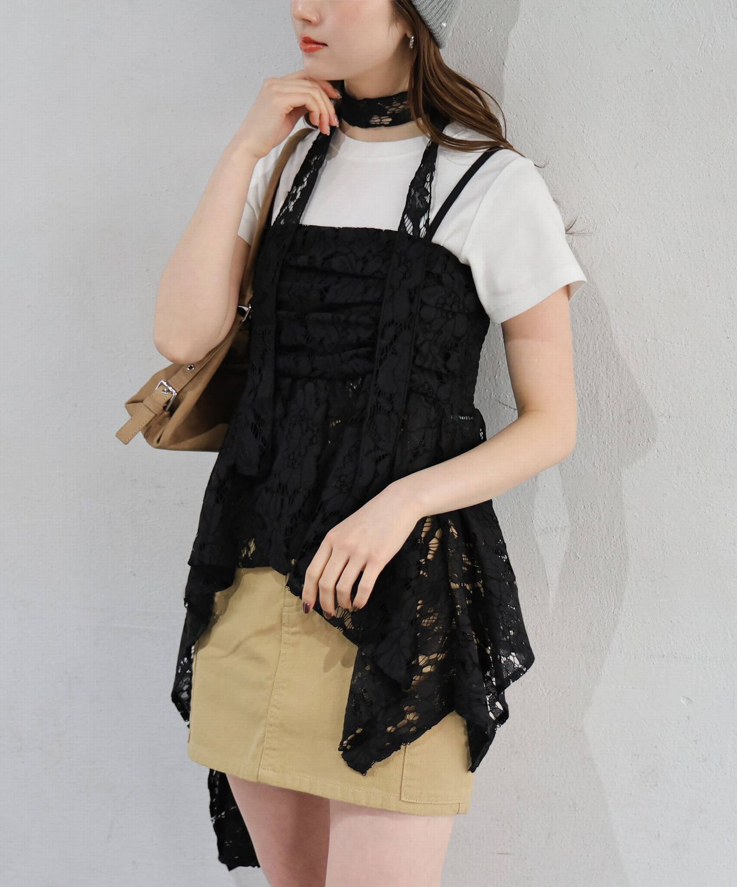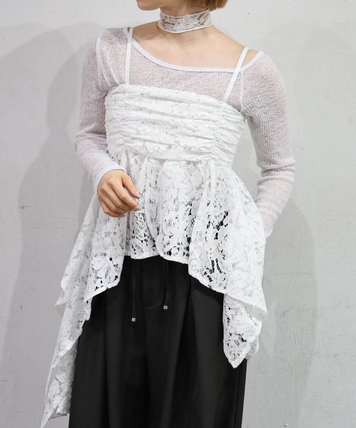 ※当アイテムはSサイズ表記ですが、チョーカー付きレースキャミチュニック(品番:165T511540)のショート丈です。フリーサイズとして着用頂けるサイズ感です。