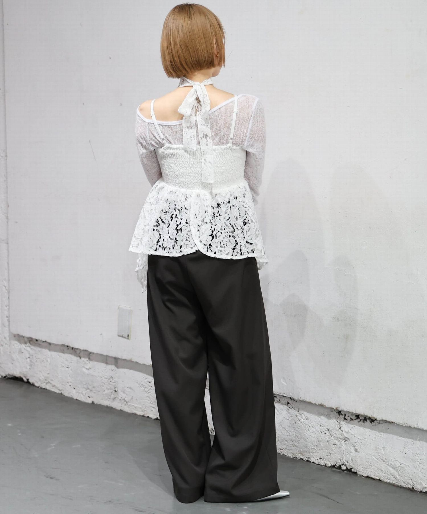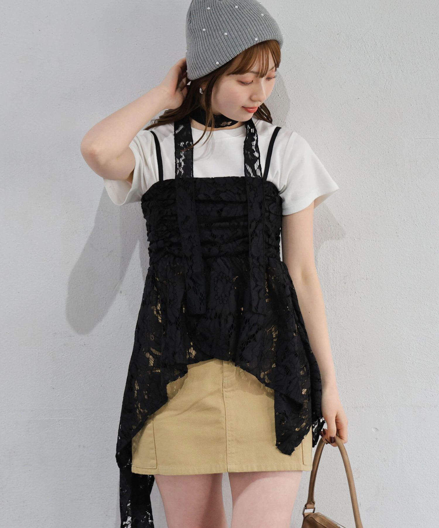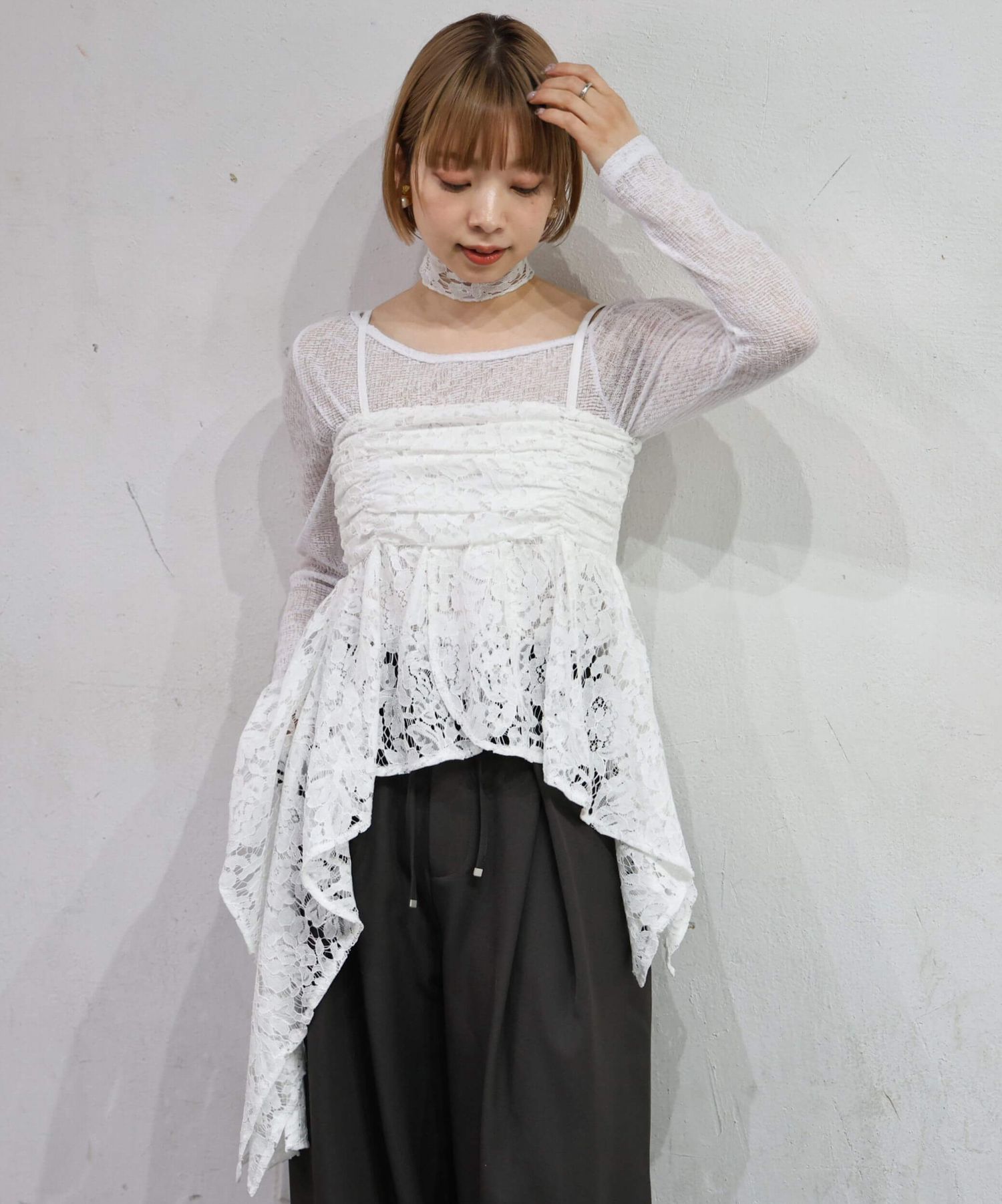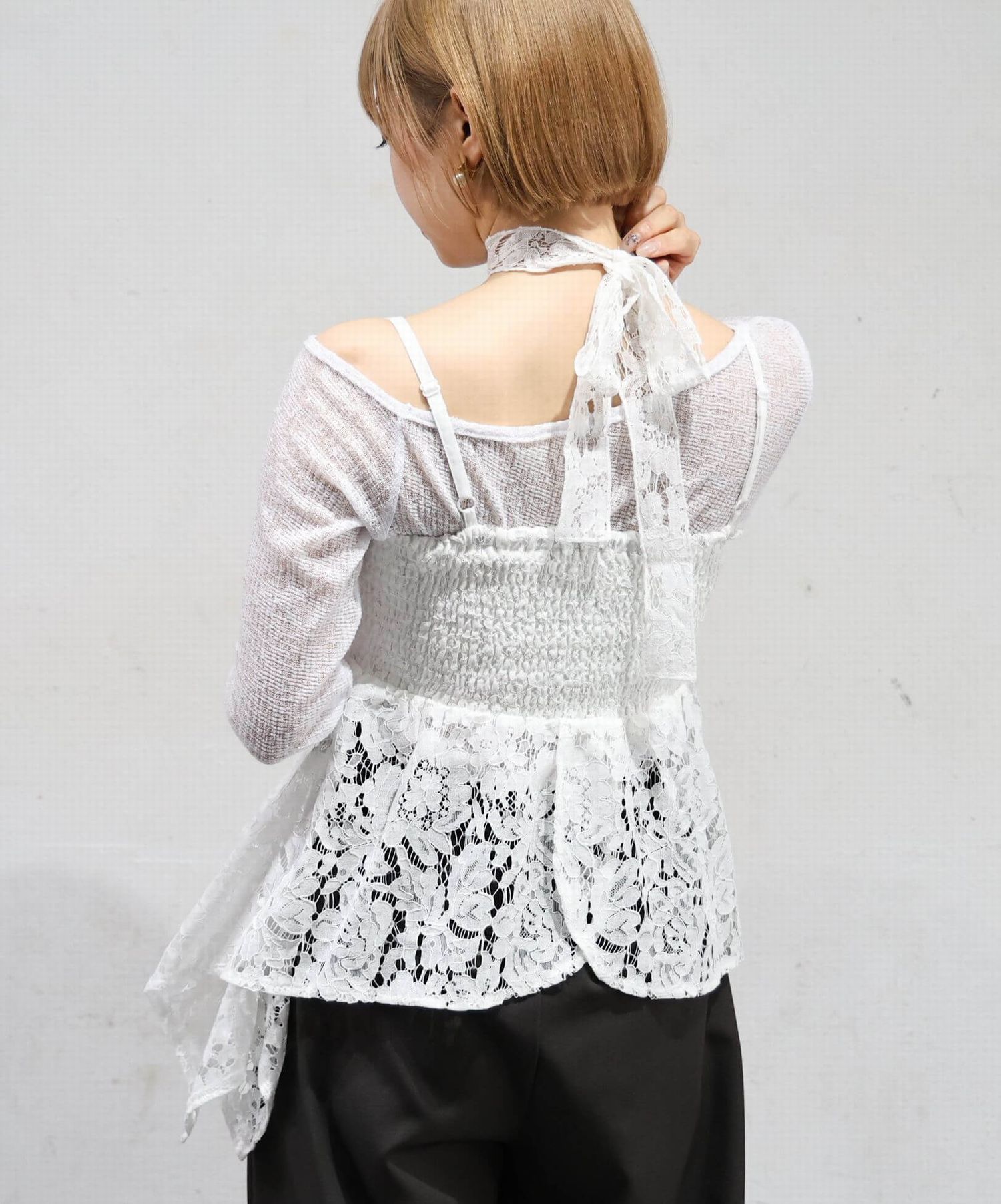 ※当アイテムはSサイズ表記ですが、チョーカー付きレースキャミチュニック(品番:165T511540)のショート丈です。フリーサイズとして着用頂けるサイズ感です。