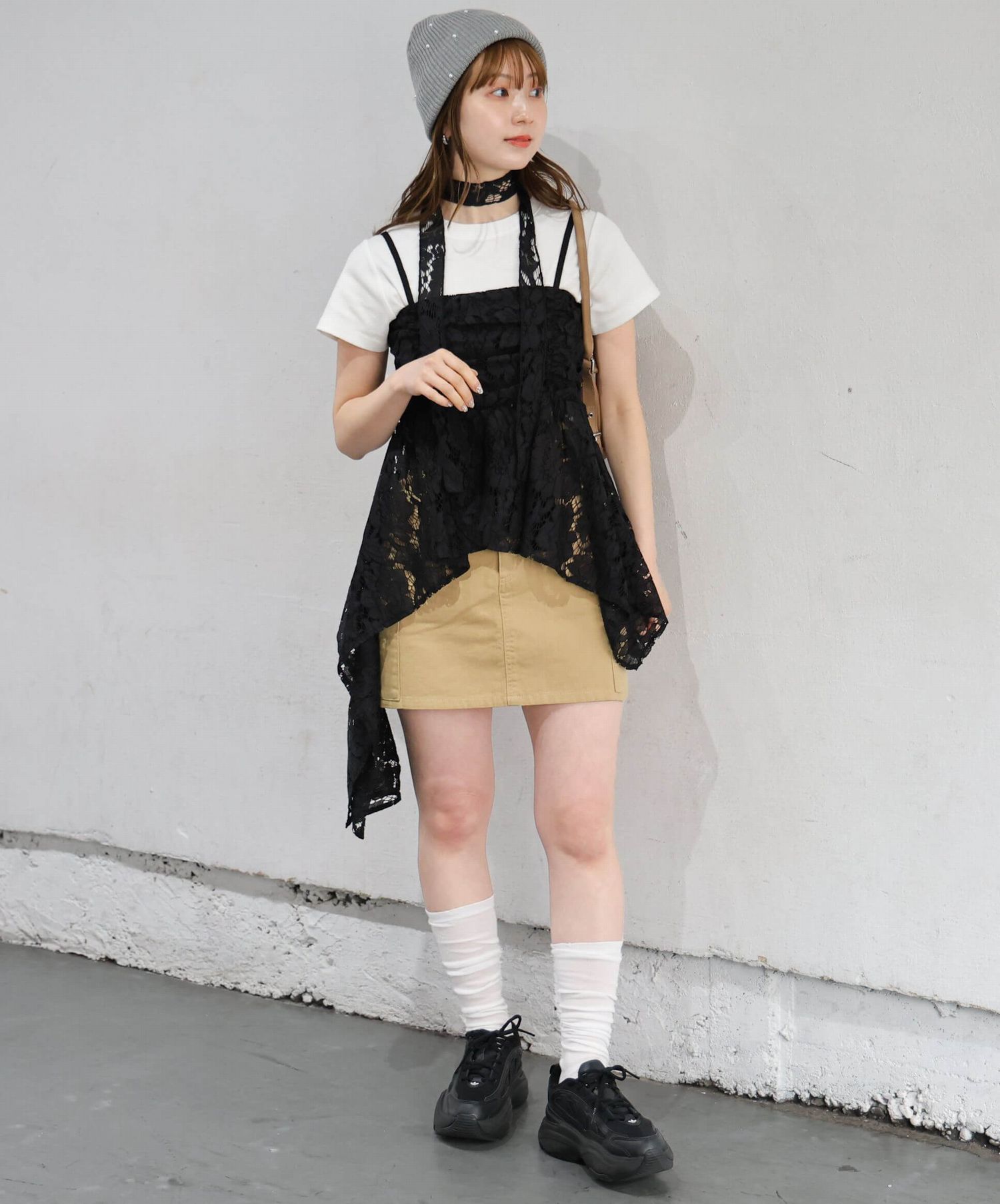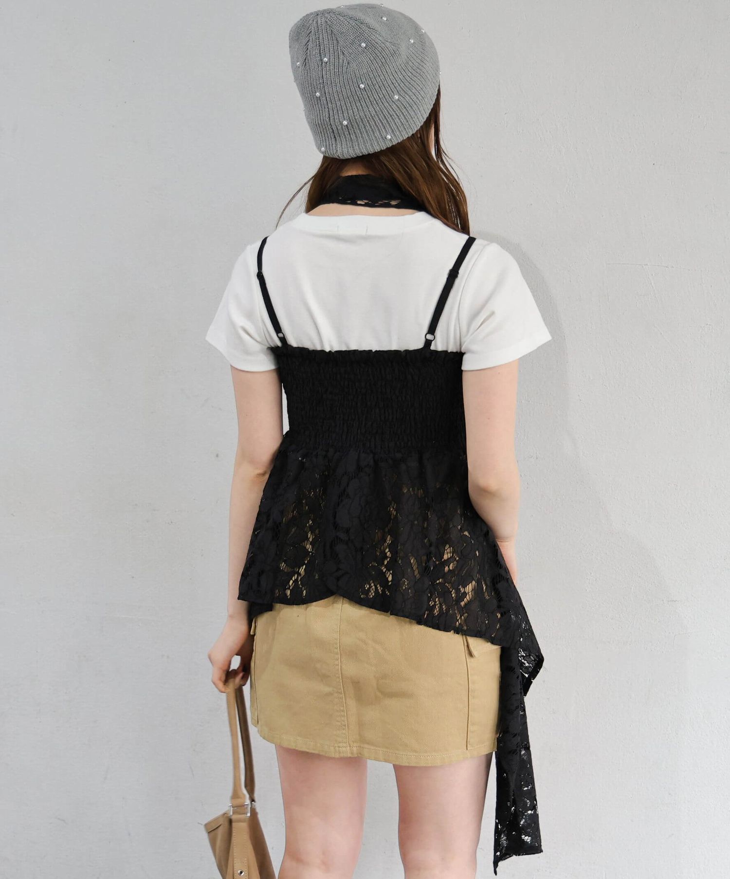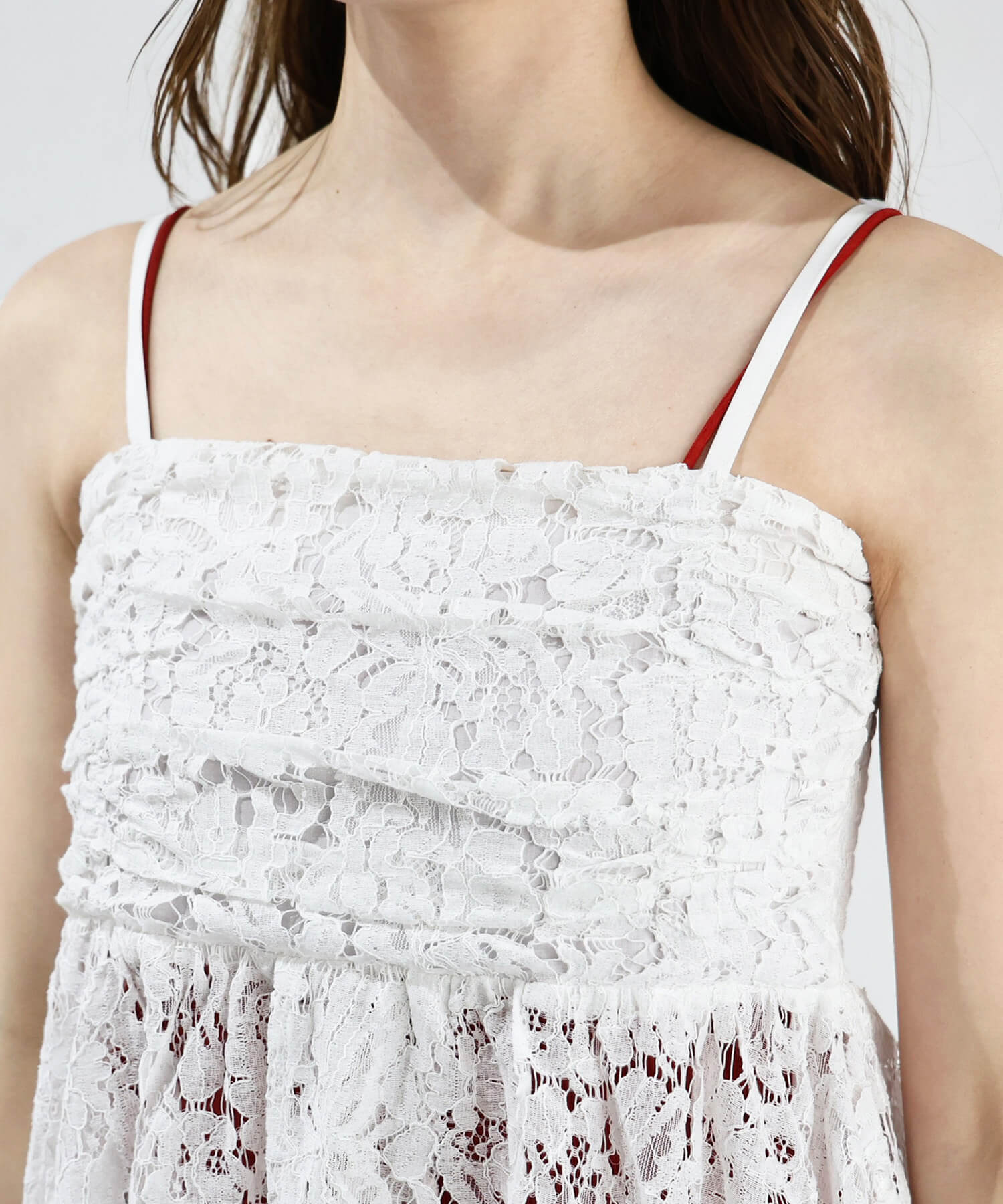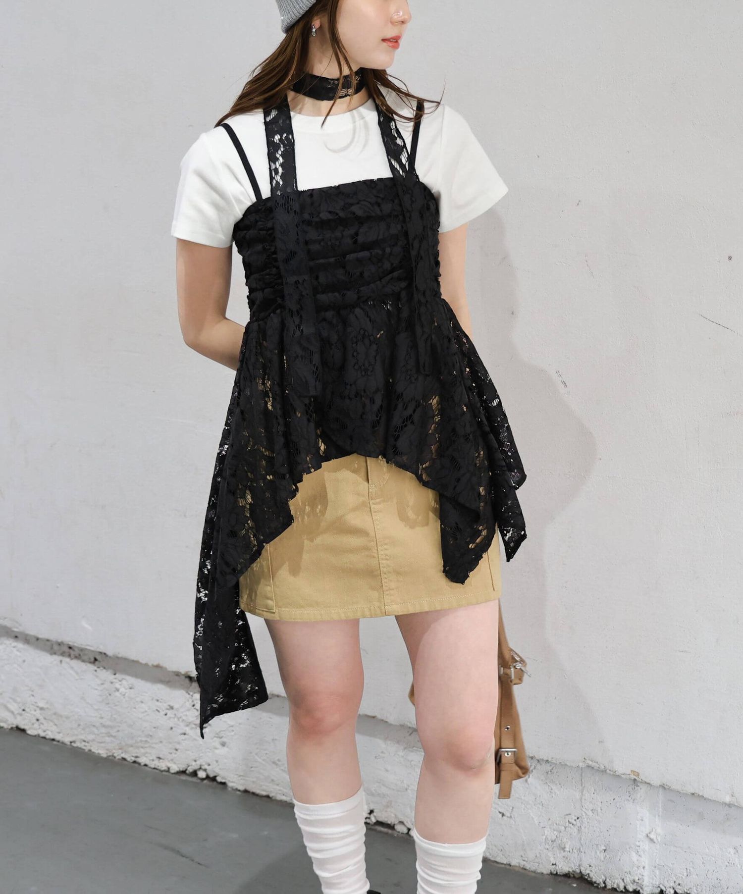 ※当アイテムはSサイズ表記ですが、チョーカー付きレースキャミチュニック(品番:165T511540)のショート丈です。フリーサイズとして着用頂けるサイズ感です。