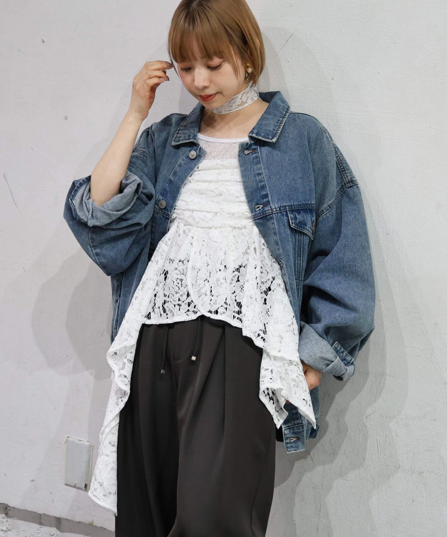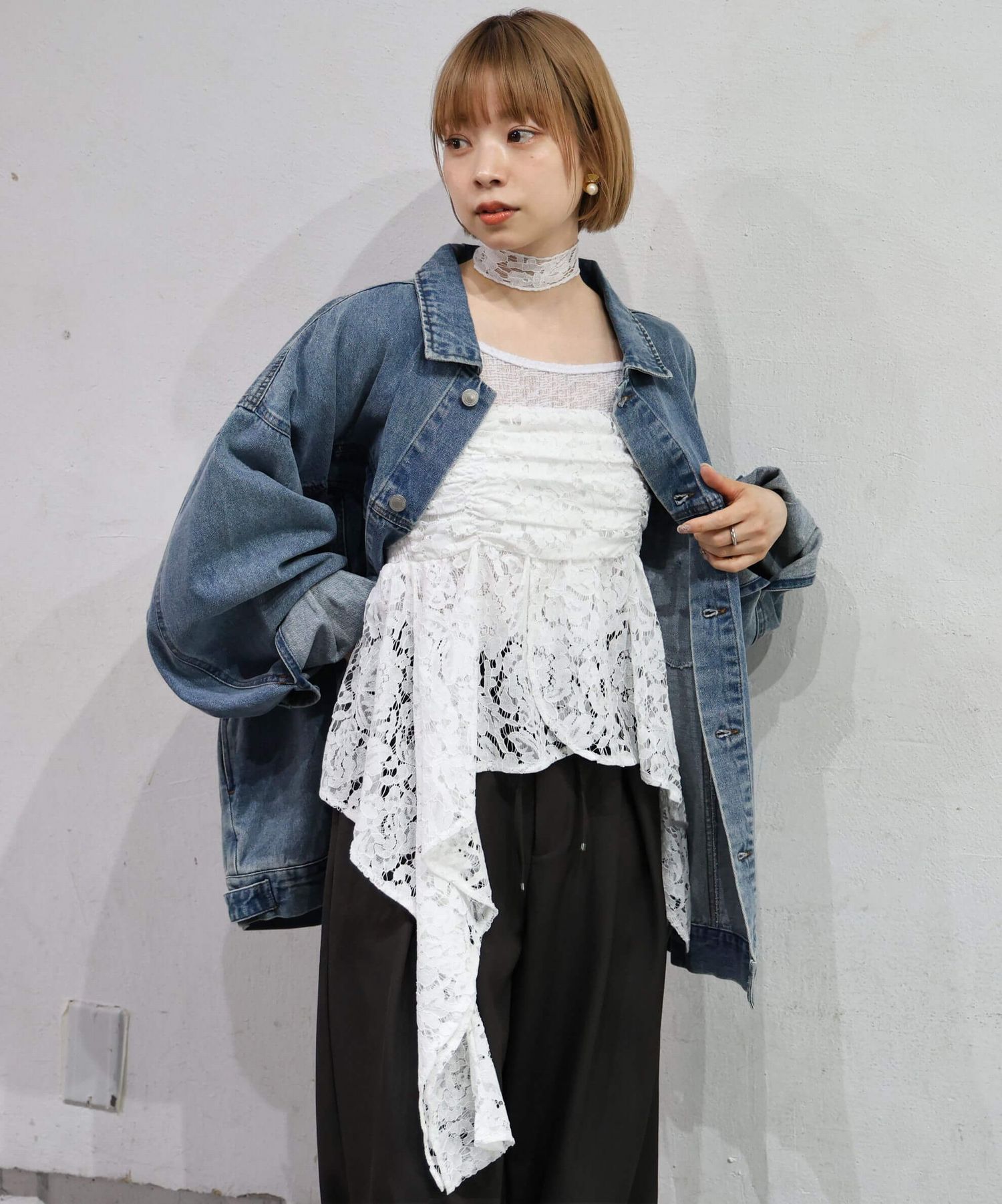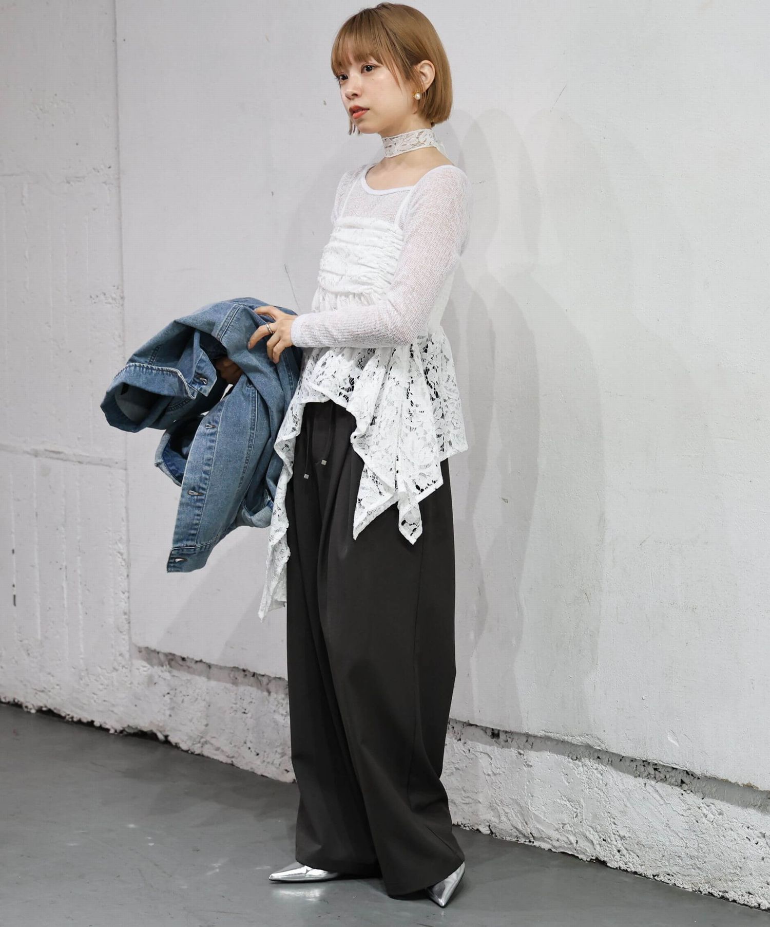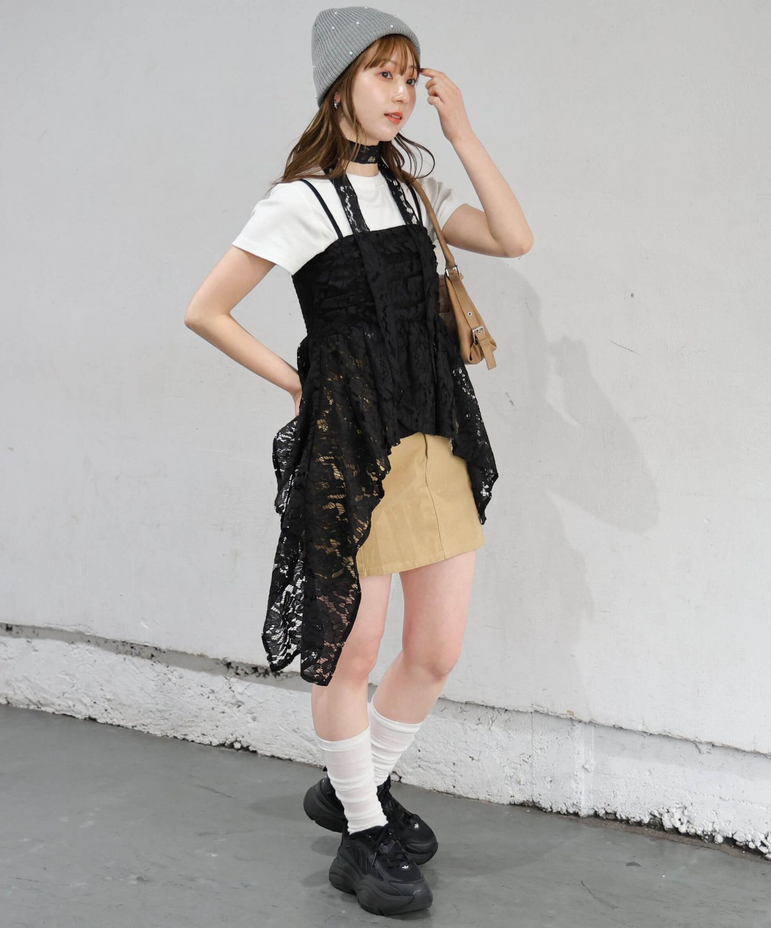 ※当アイテムはSサイズ表記ですが、チョーカー付きレースキャミチュニック(品番:165T511540)のショート丈です。フリーサイズとして着用頂けるサイズ感です。
