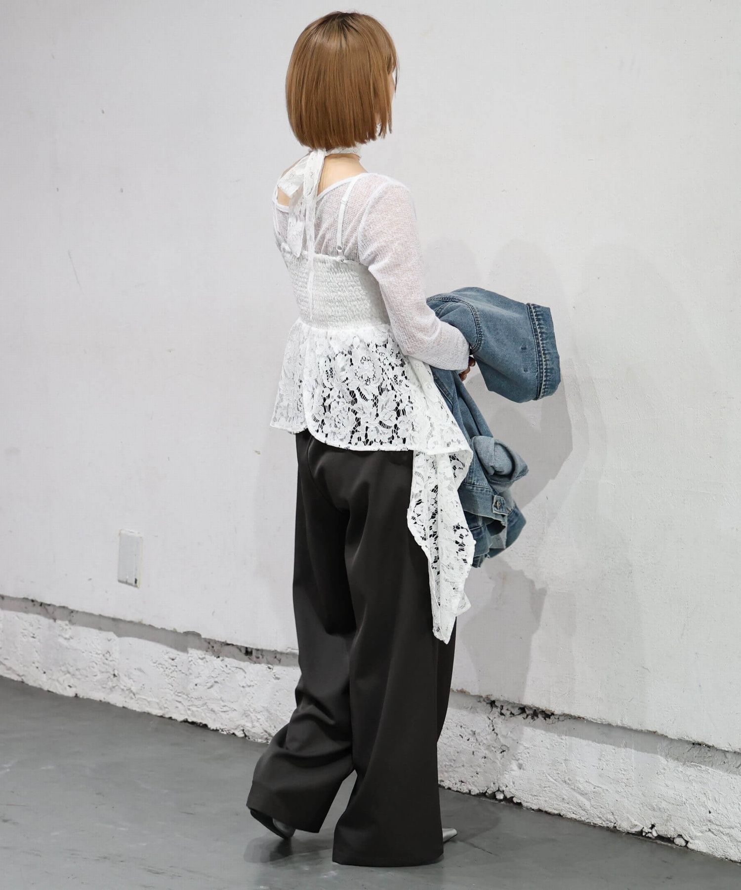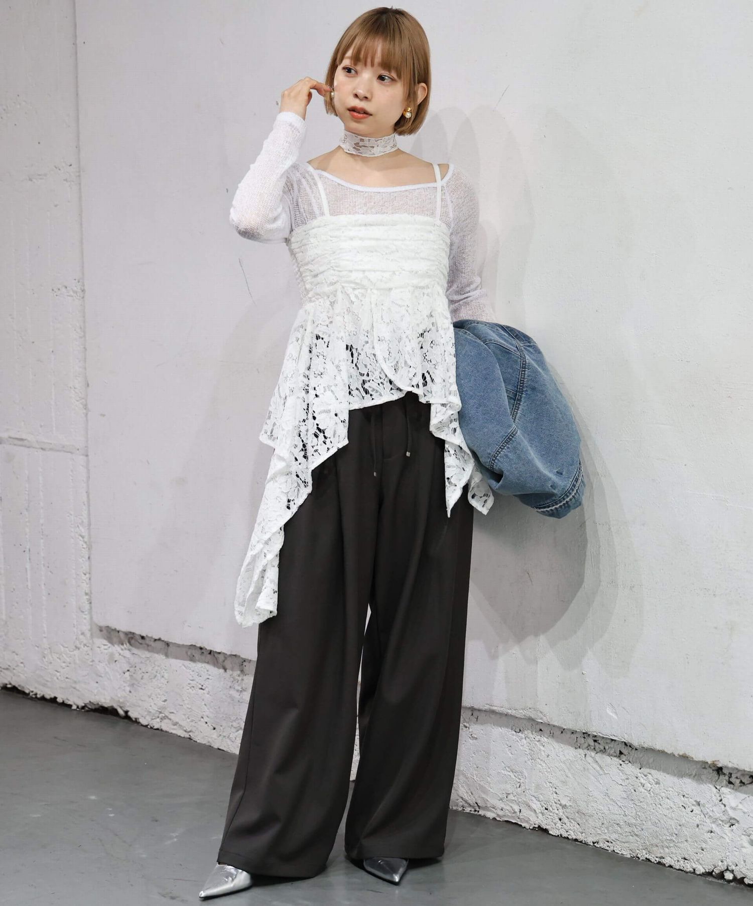 ・透け感を活かし、カラーインナーをポイントにしたコーディネートも楽しめます。