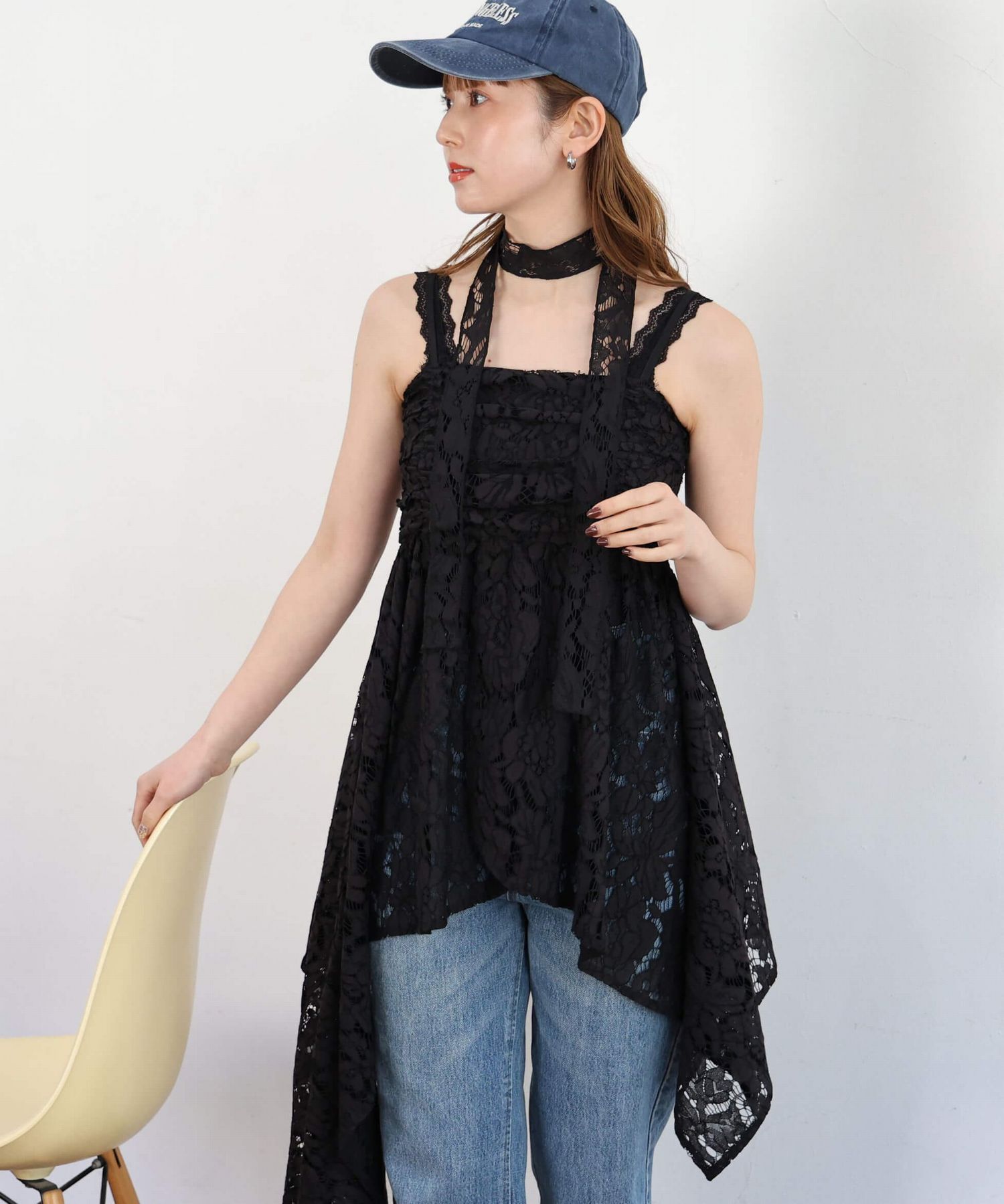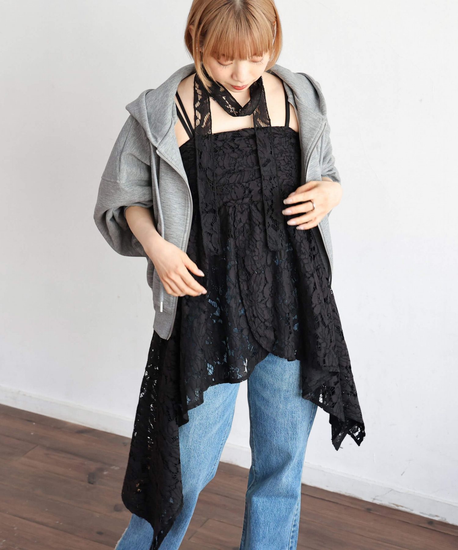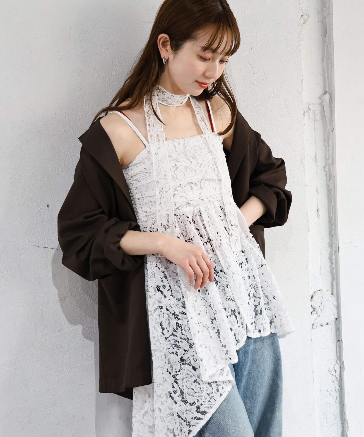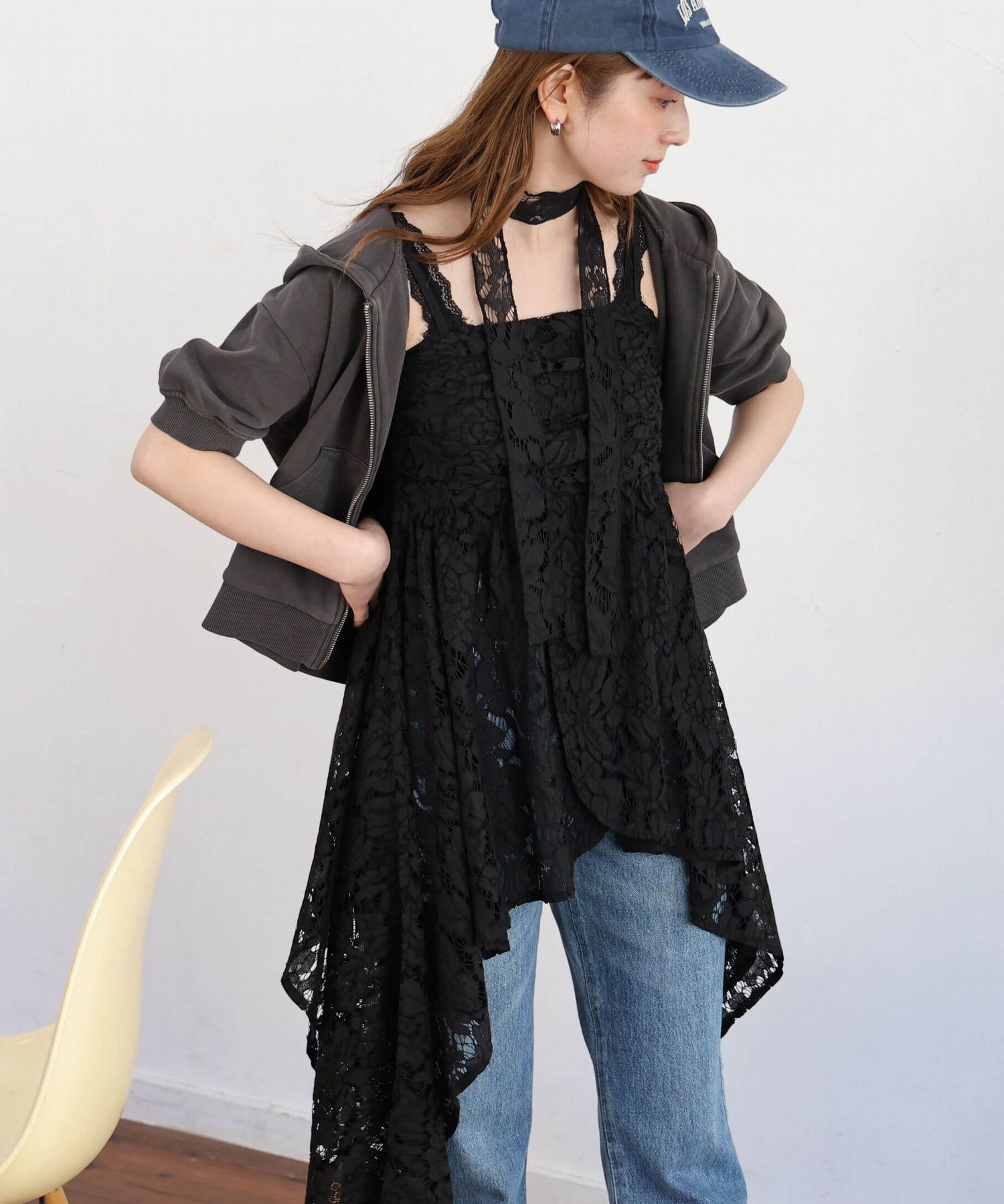 ※当アイテムはLサイズ表記ですが、チョーカー付きレースキャミチュニック(品番:165T511540)のロング丈です。フリーサイズとして着用頂けるサイズ感です。