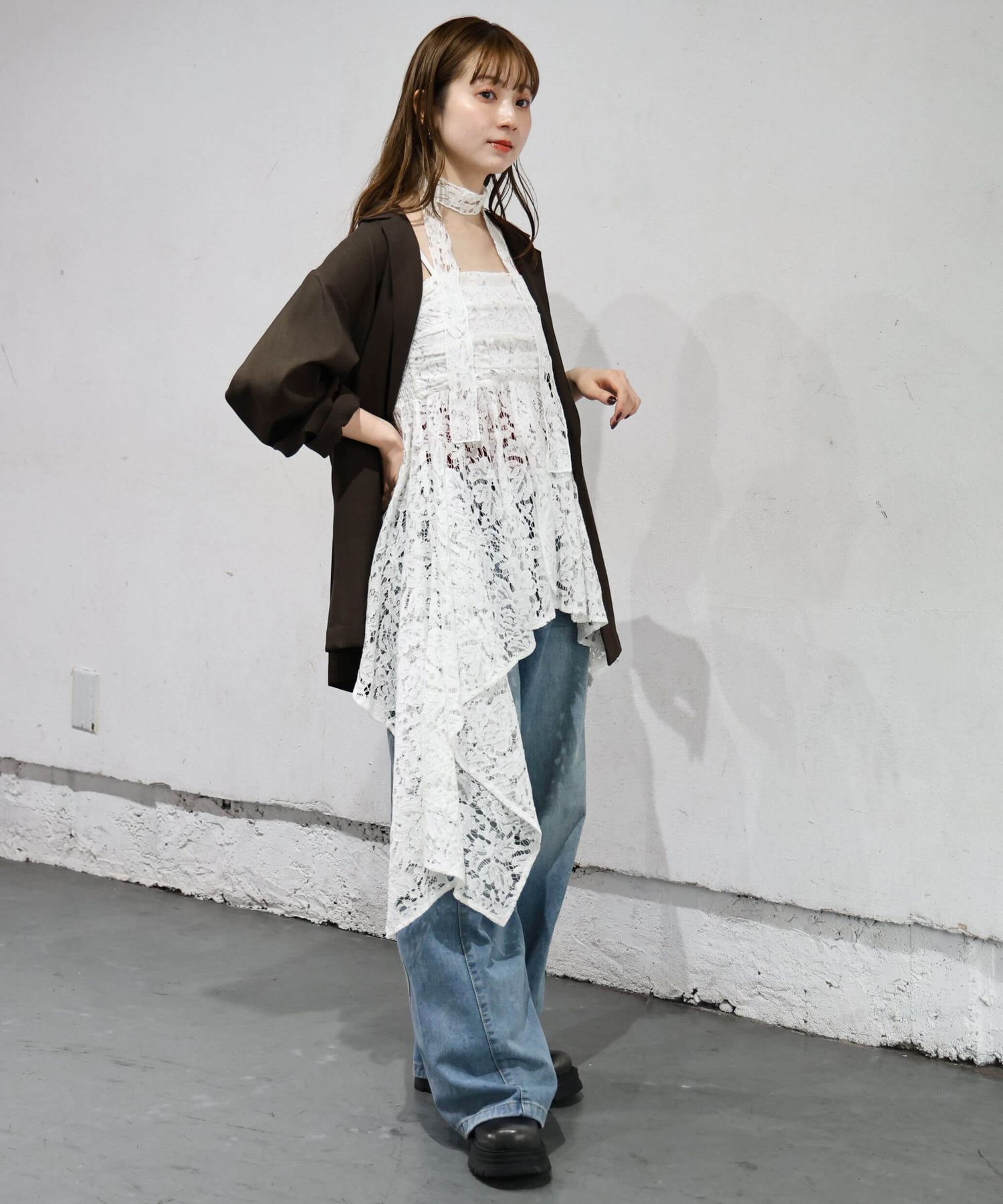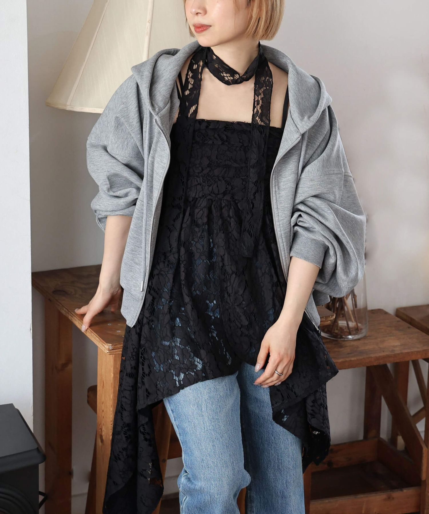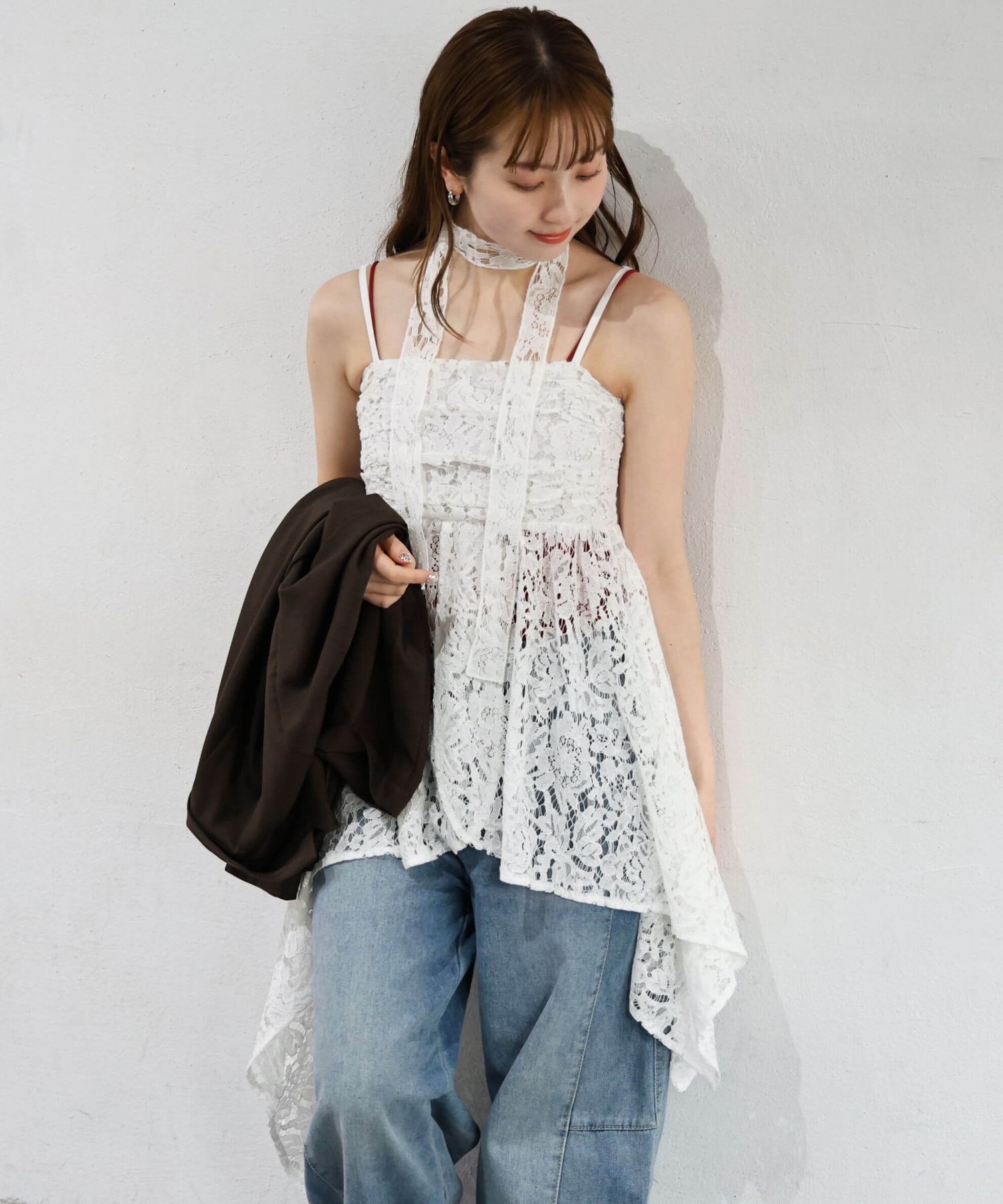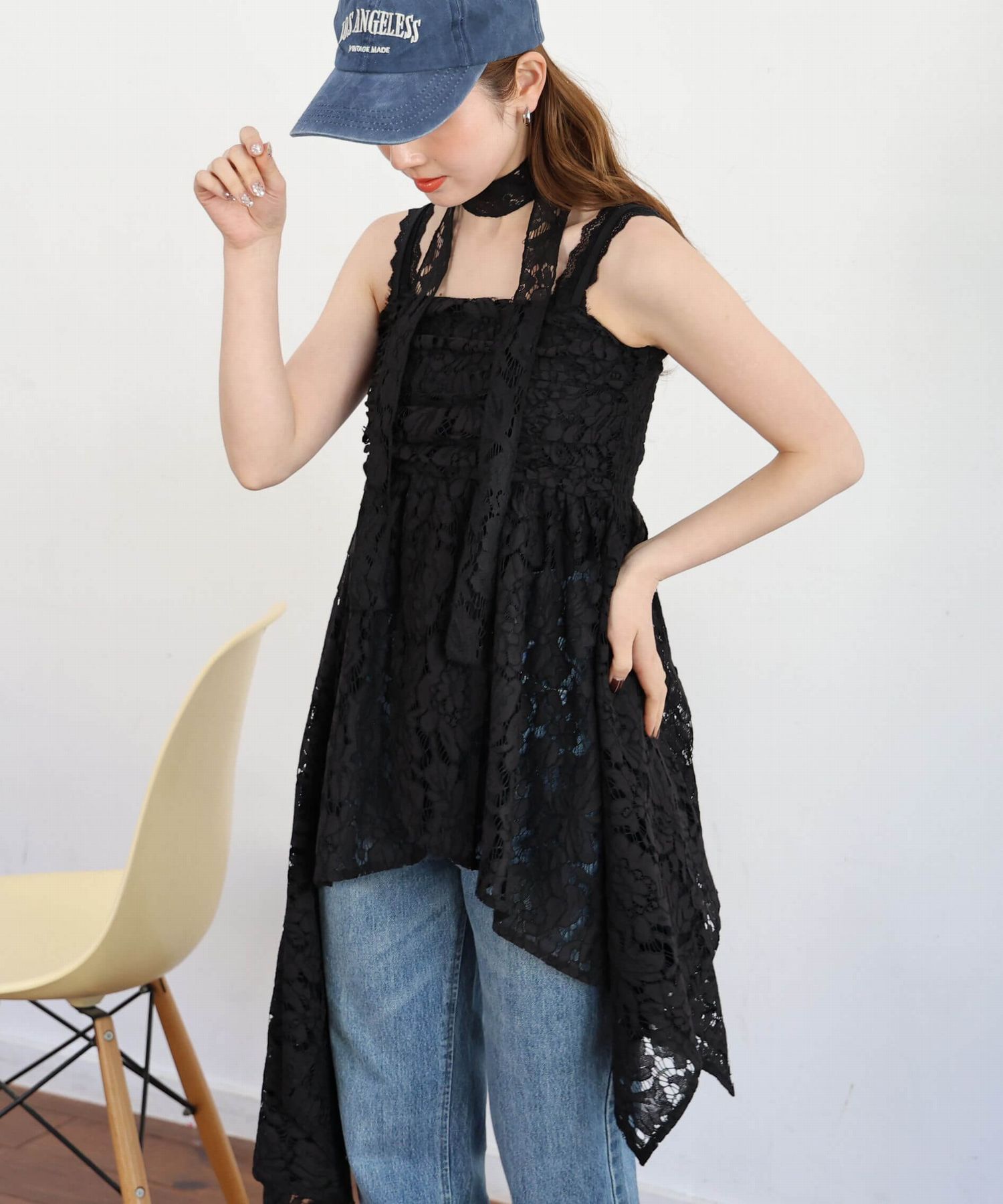 ※当アイテムはLサイズ表記ですが、チョーカー付きレースキャミチュニック(品番:165T511540)のロング丈です。フリーサイズとして着用頂けるサイズ感です。