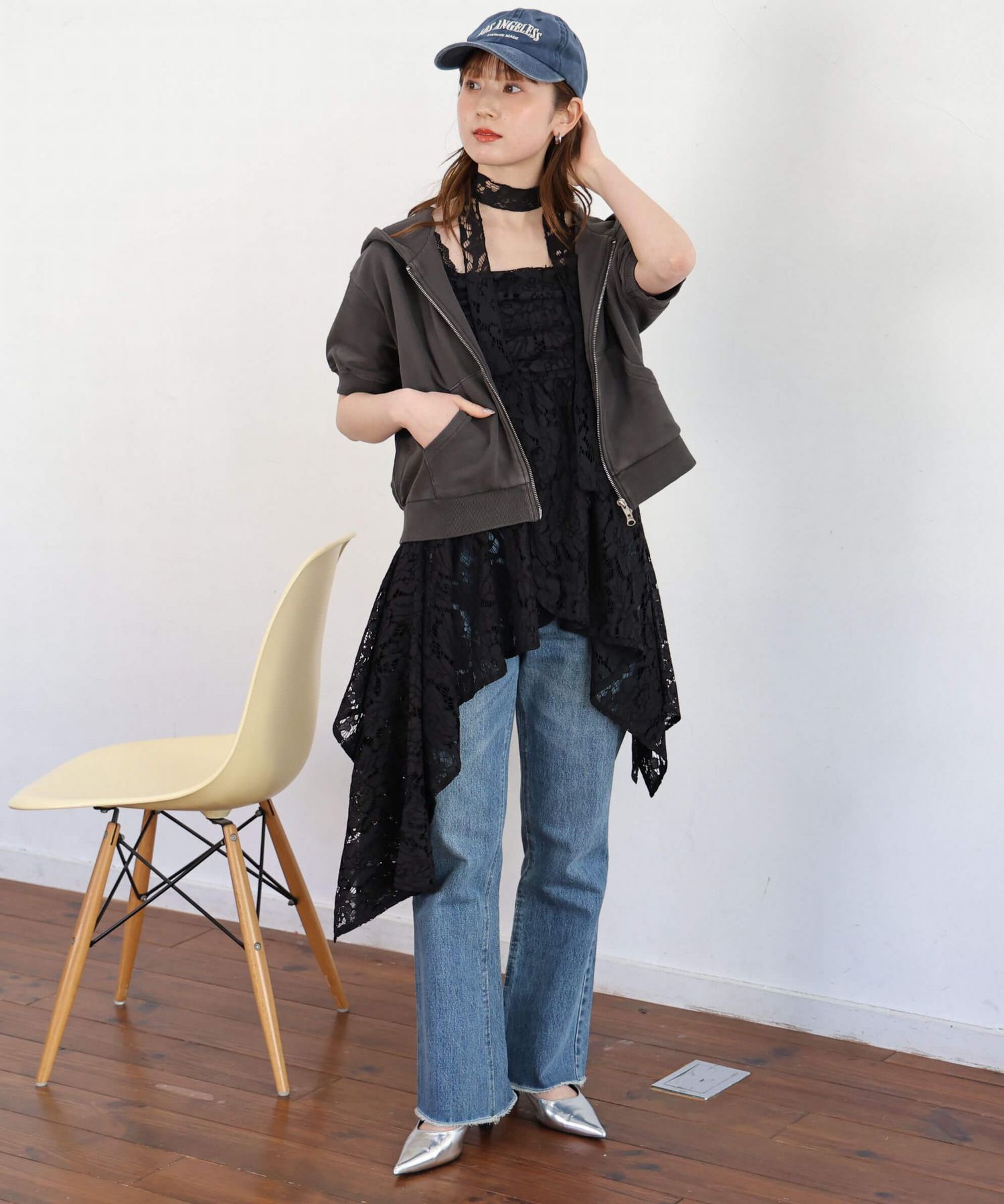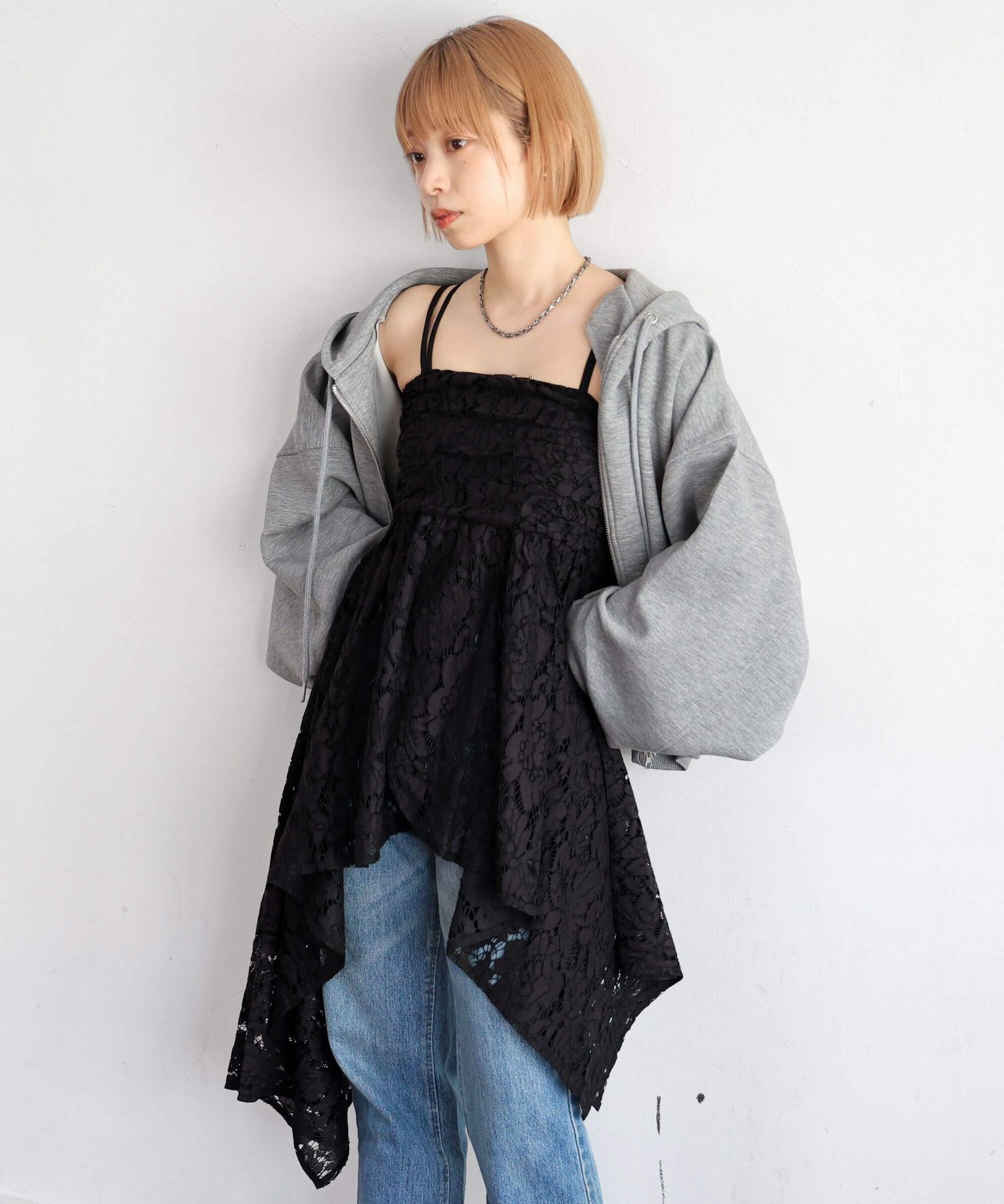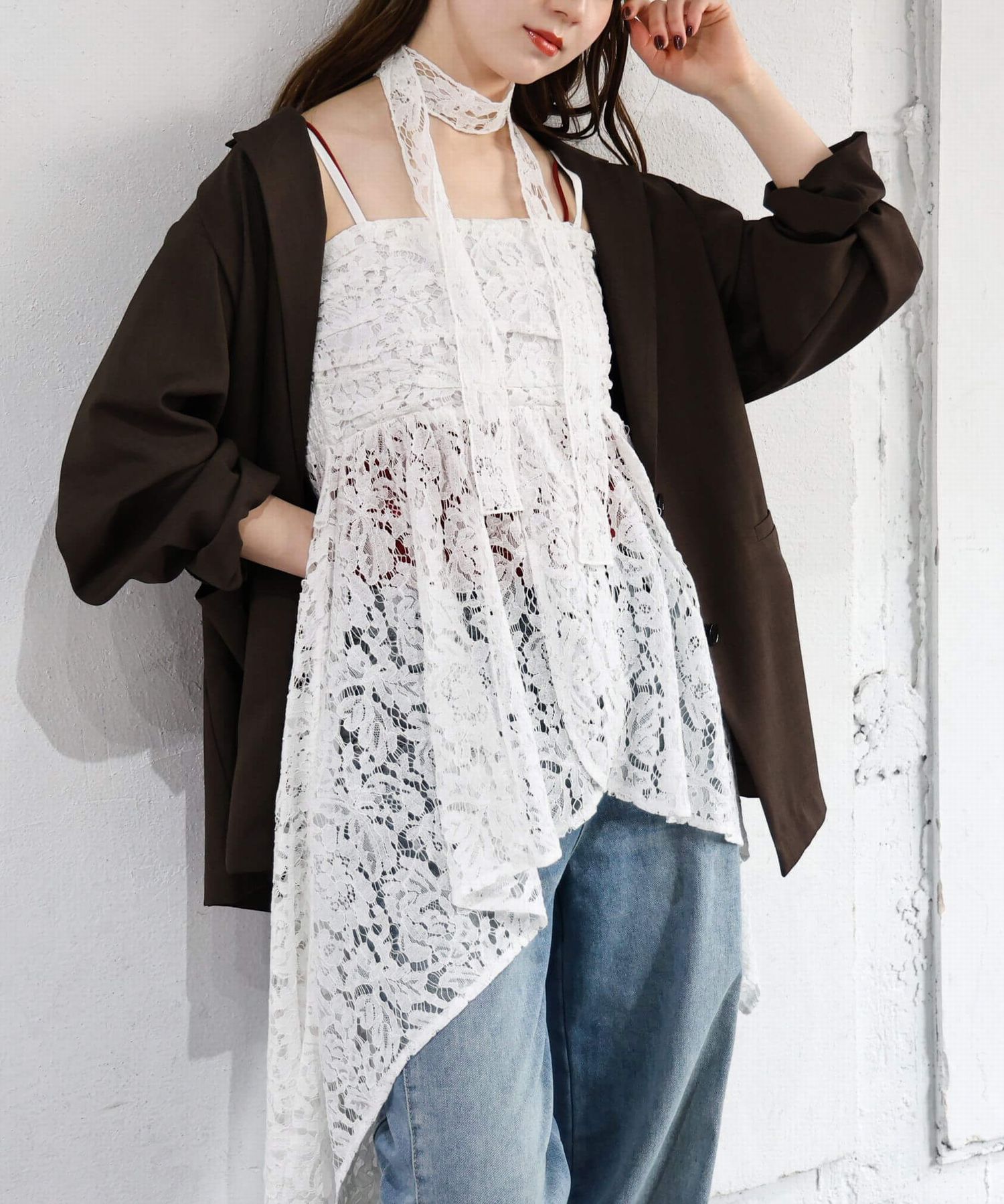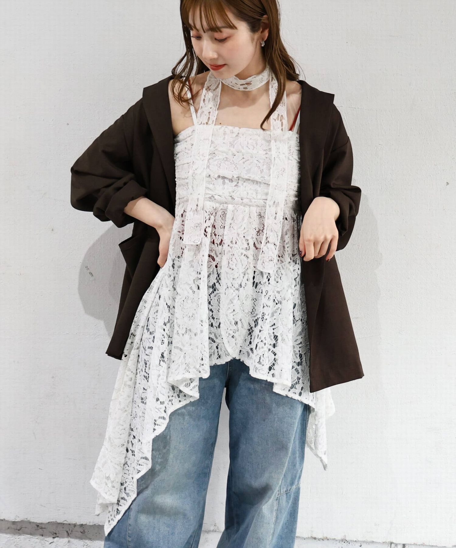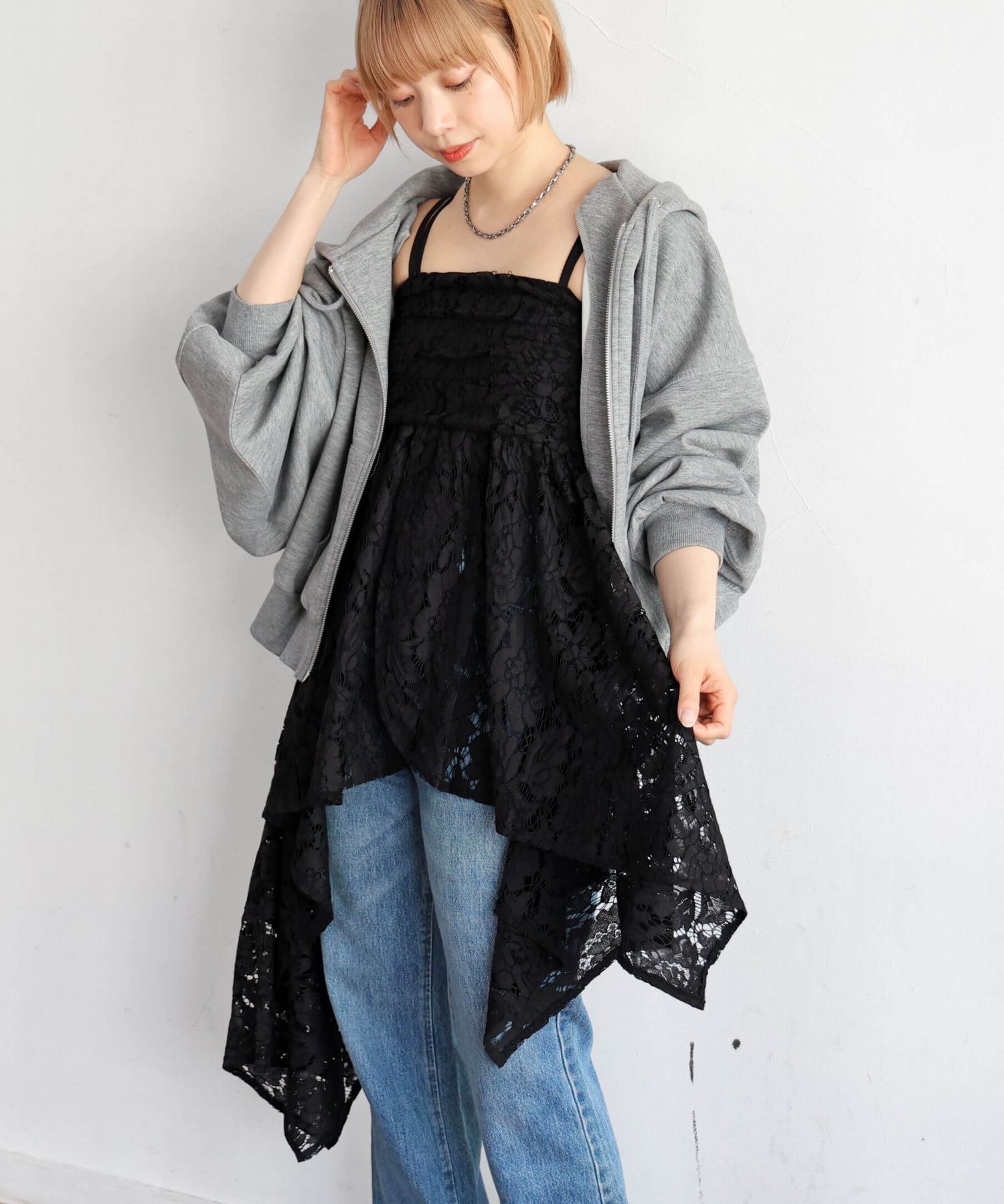 ※当アイテムはLサイズ表記ですが、チョーカー付きレースキャミチュニック(品番:165T511540)のロング丈です。フリーサイズとして着用頂けるサイズ感です。