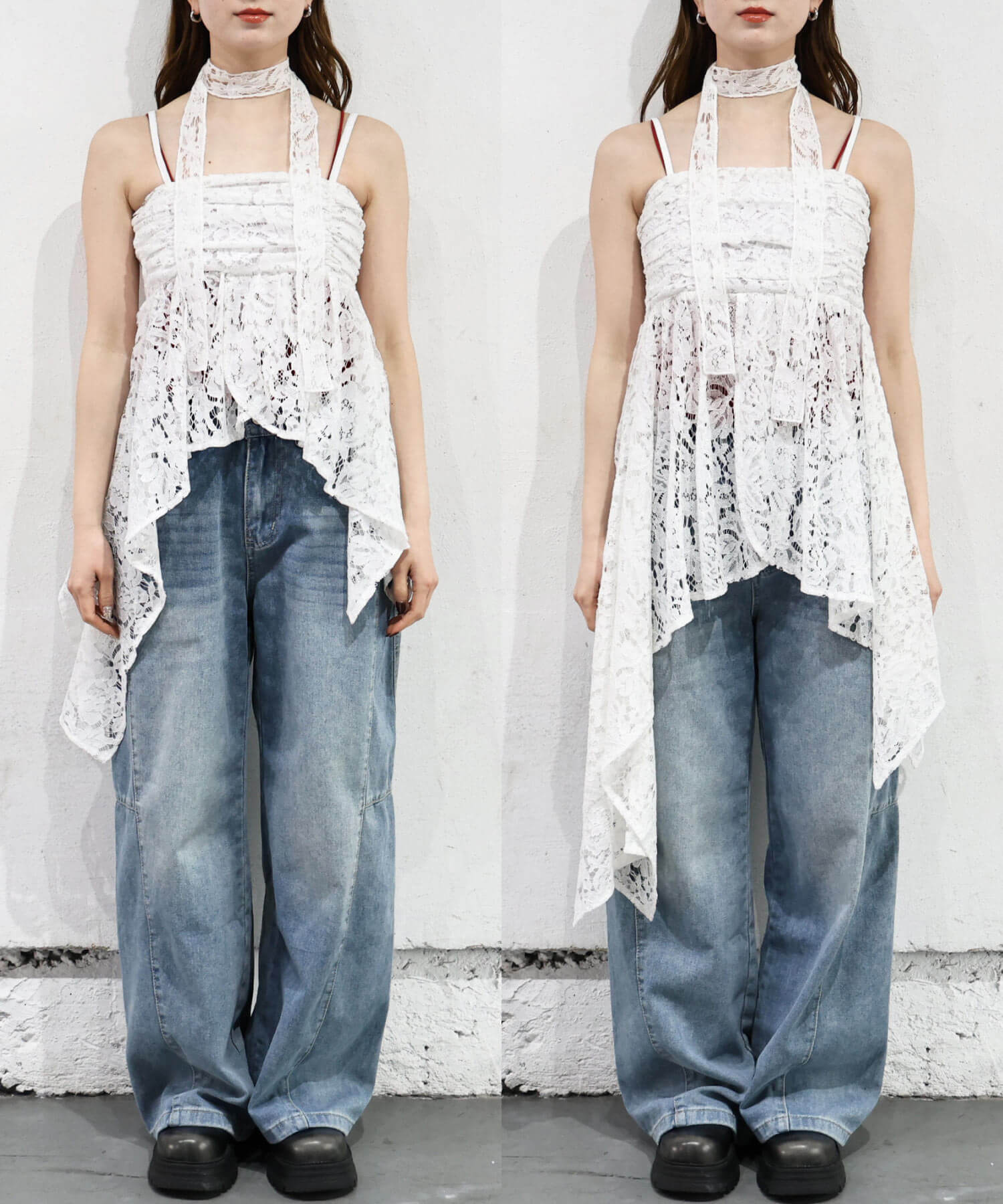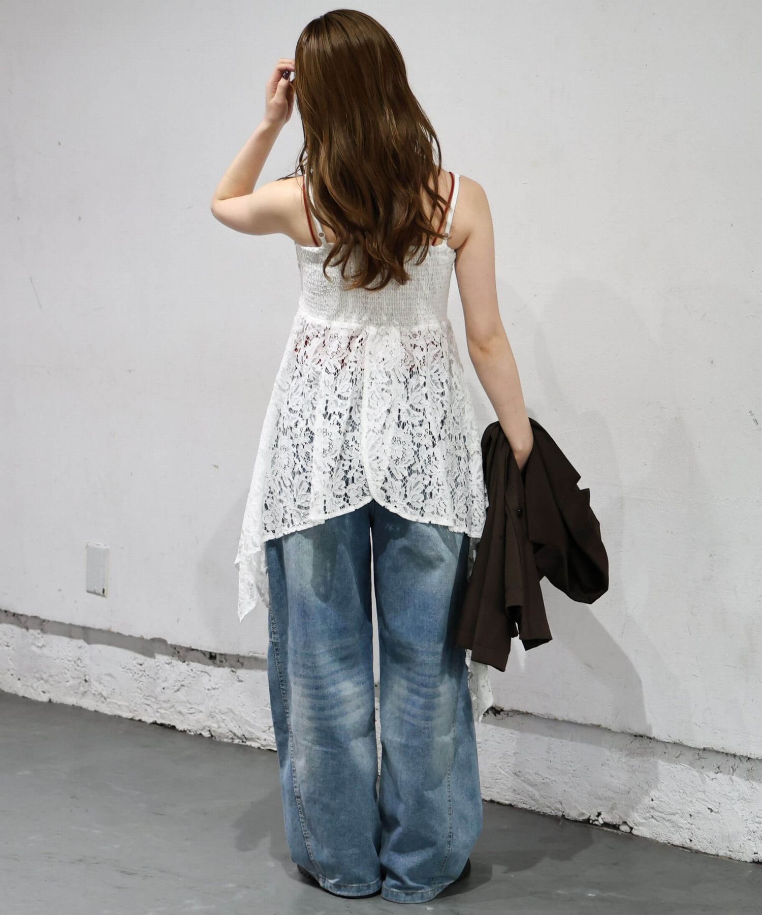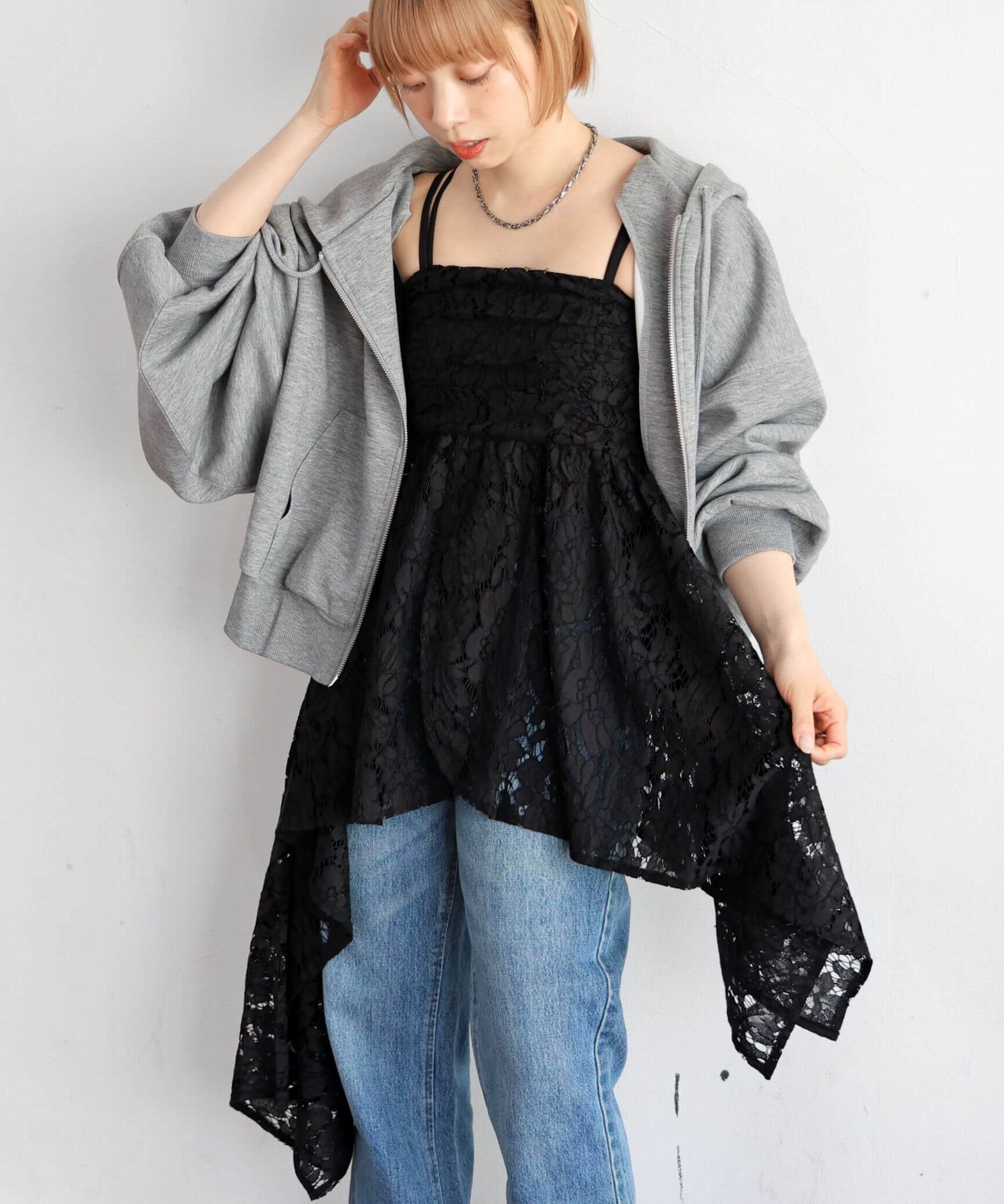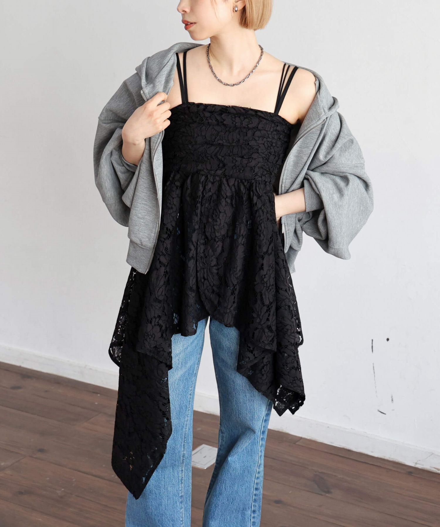 ※当アイテムはLサイズ表記ですが、チョーカー付きレースキャミチュニック(品番:165T511540)のロング丈です。フリーサイズとして着用頂けるサイズ感です。