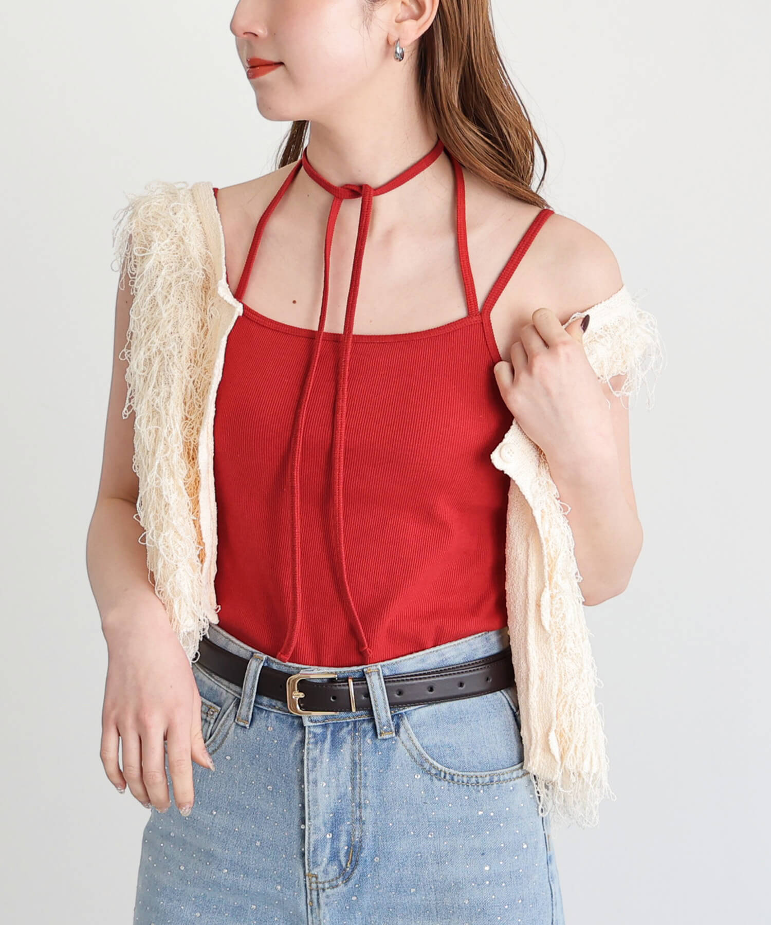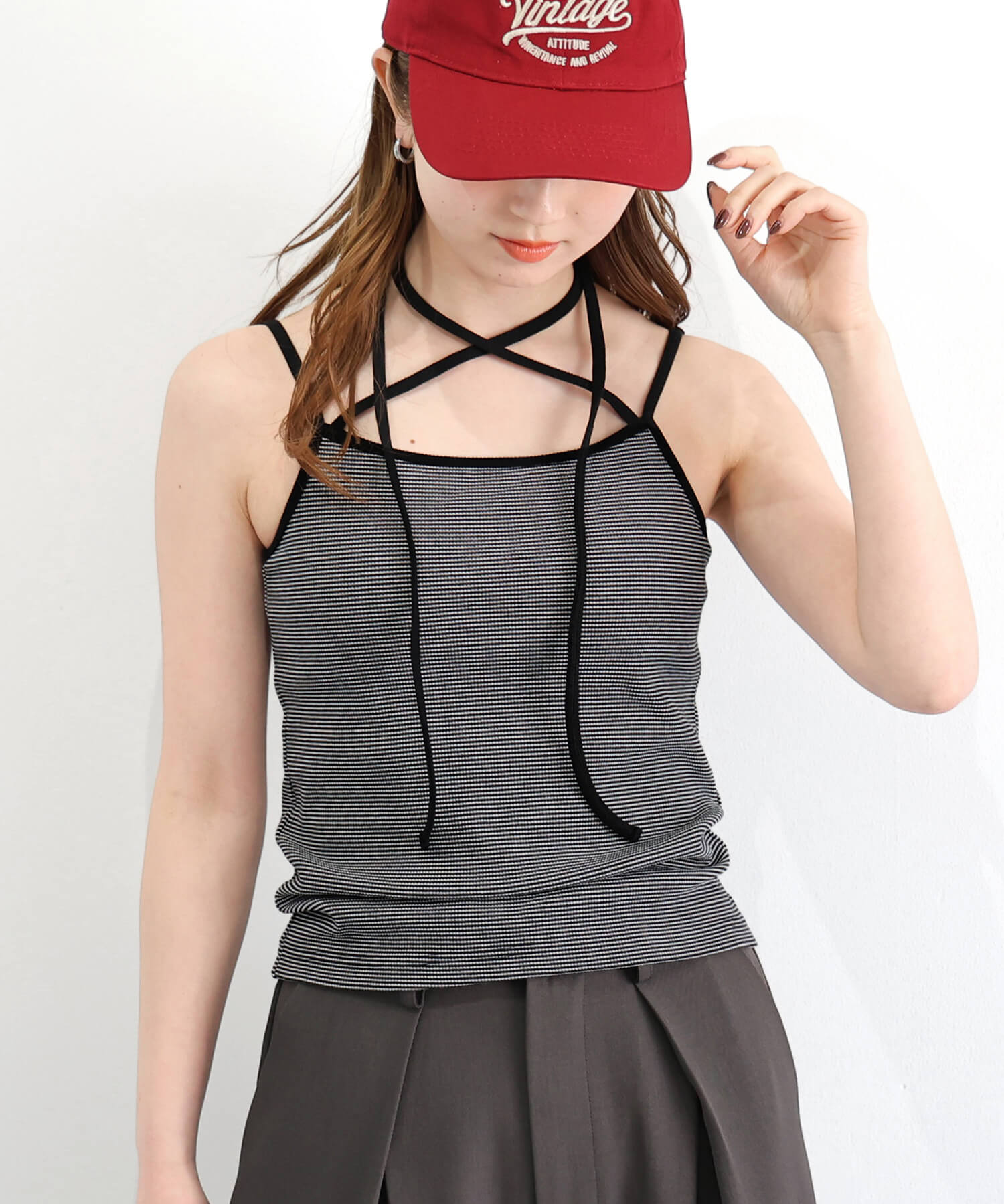 ・チョーカーストラップがトレンドライクなカップインキャミソールです。
