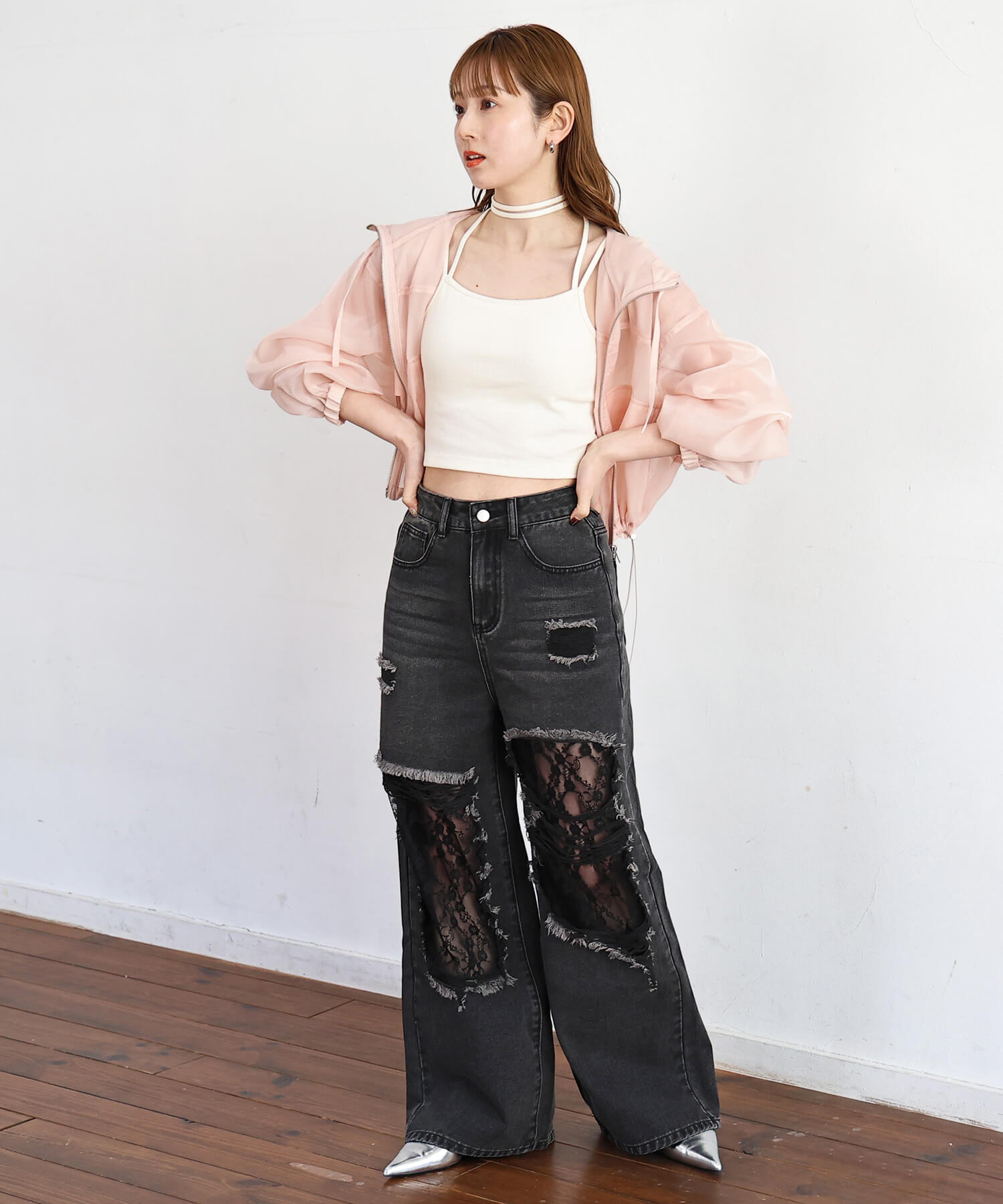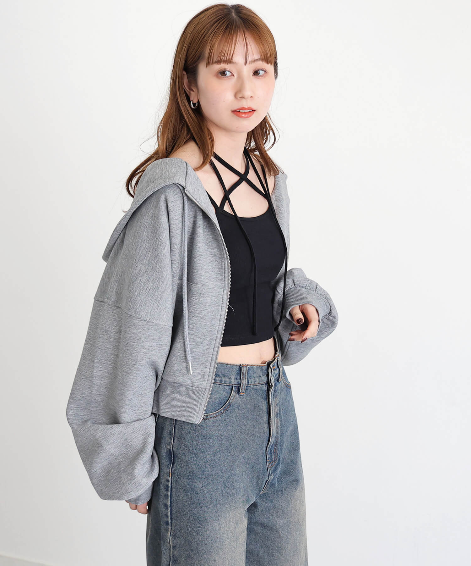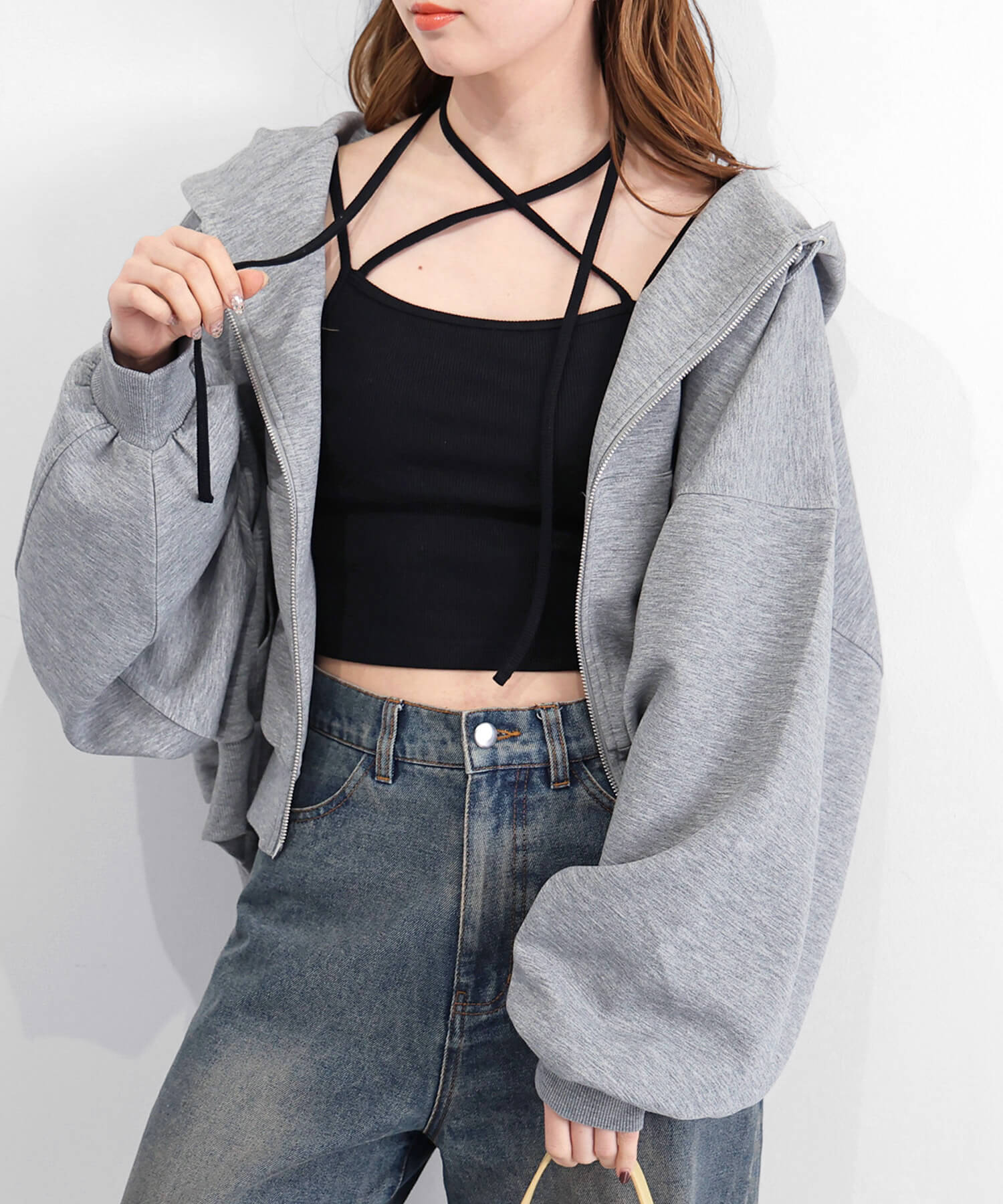 ※当アイテムはSサイズ表記ですが、テレコカップ付きチョーカーキャミ(品番:07700T2071)のショート丈です。フリーサイズとして着用頂けるサイズ感です。