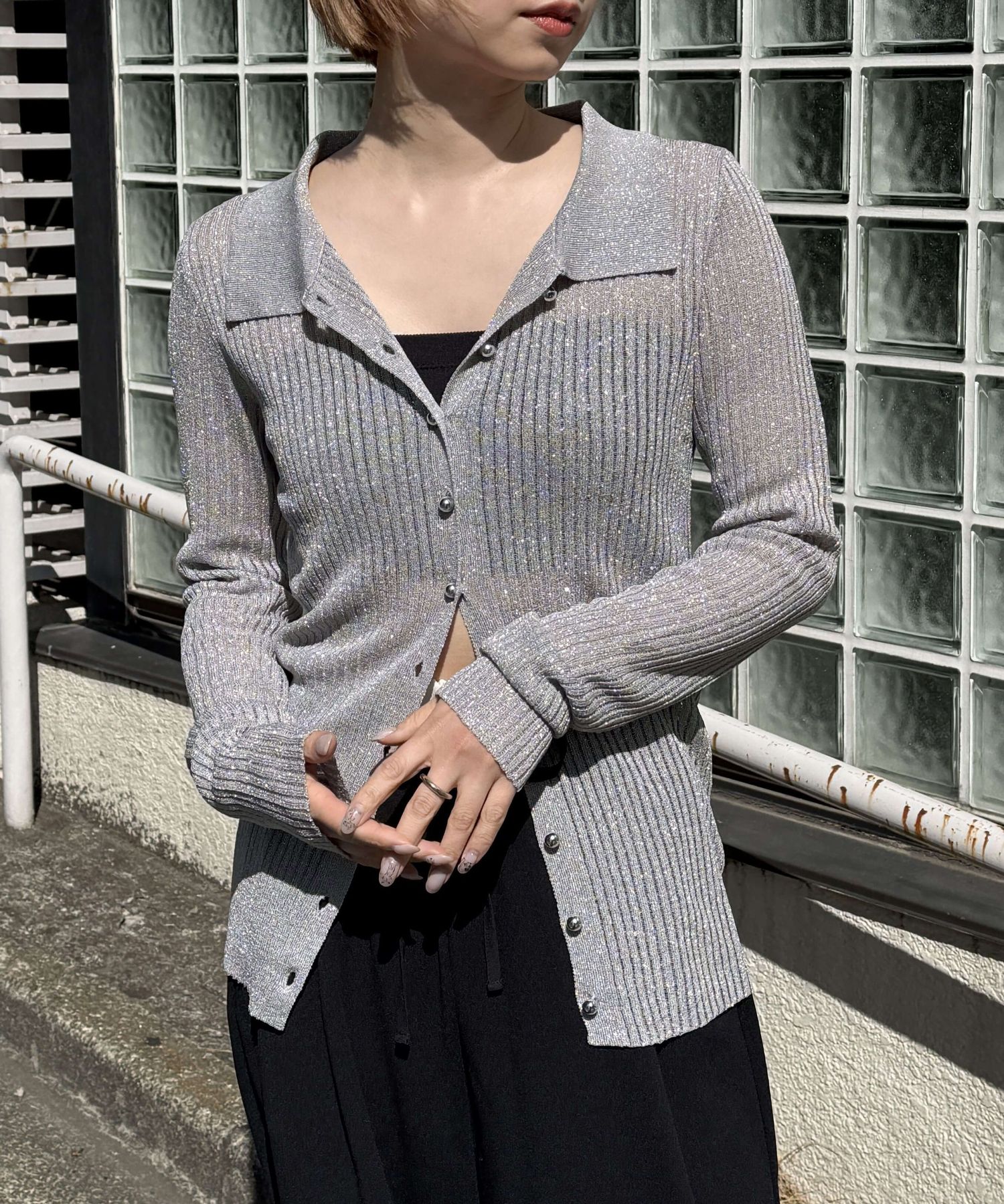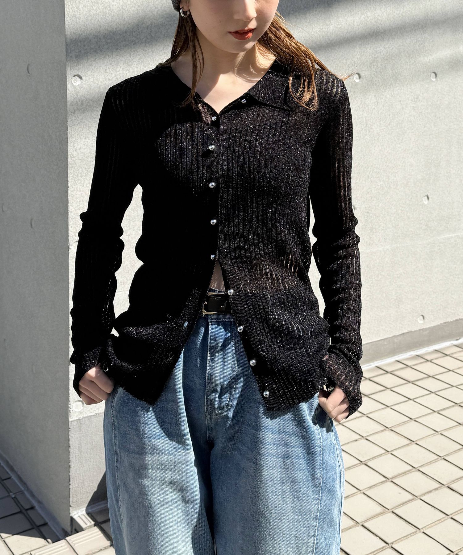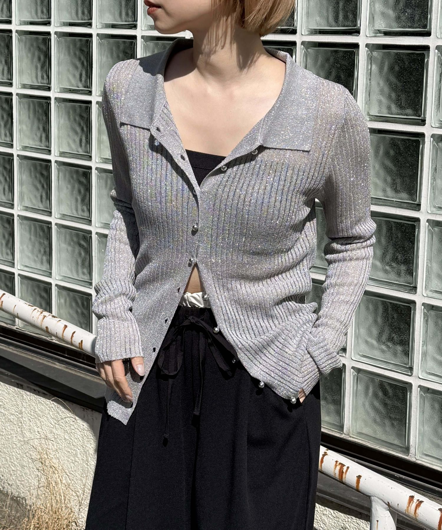 [4月7日販売開始!!] ラメシアーメタル釦襟付カーディガン