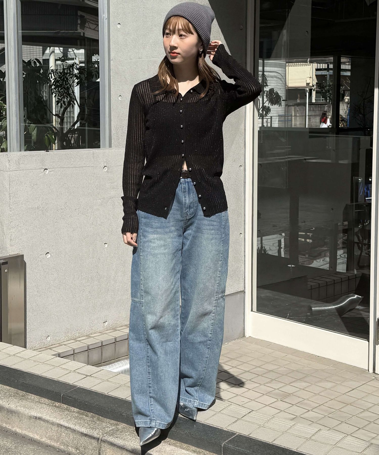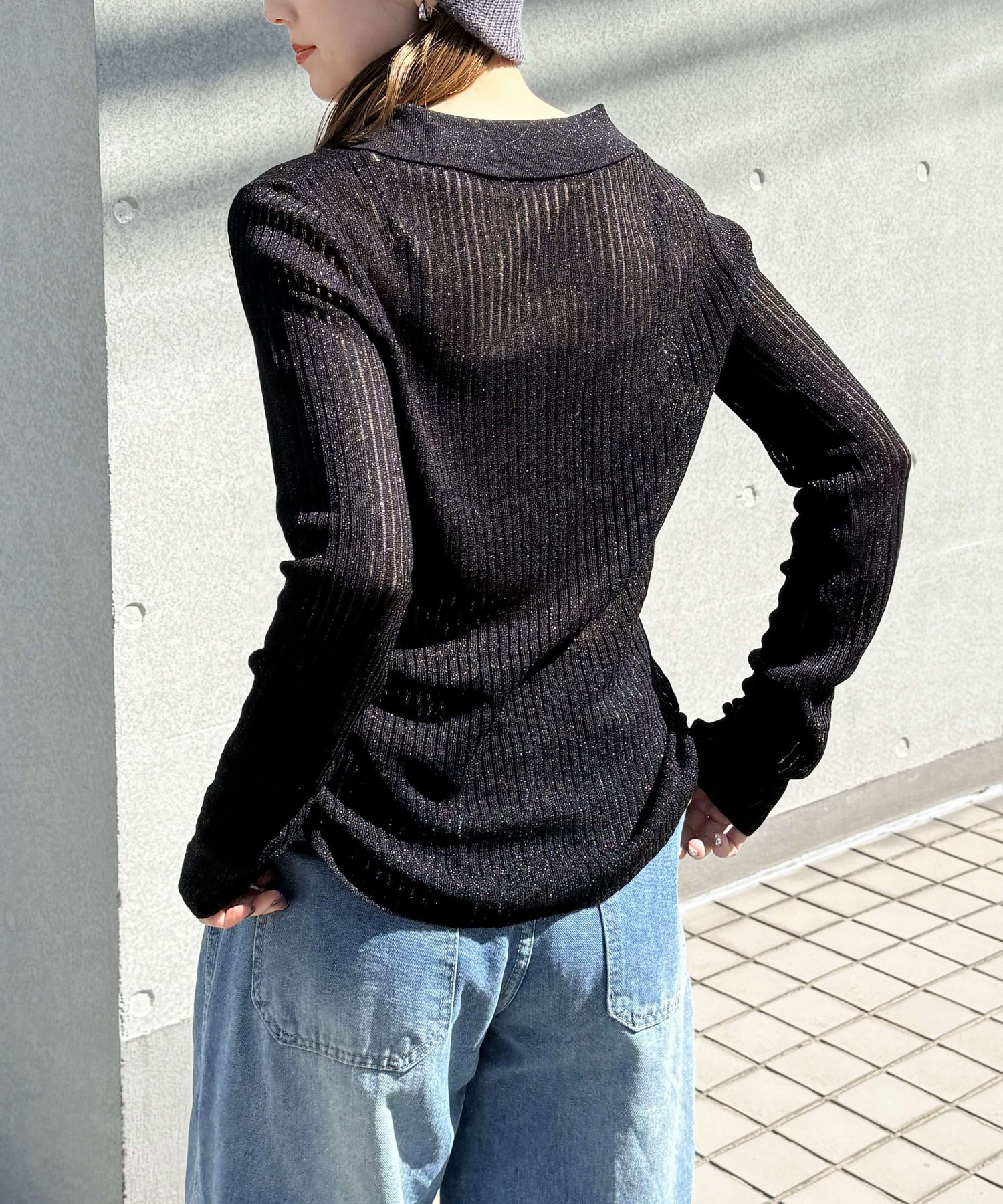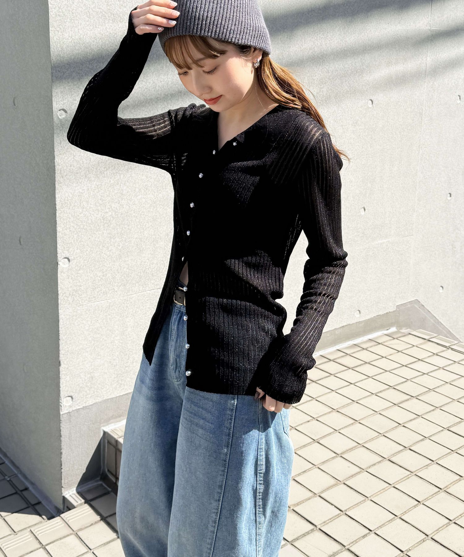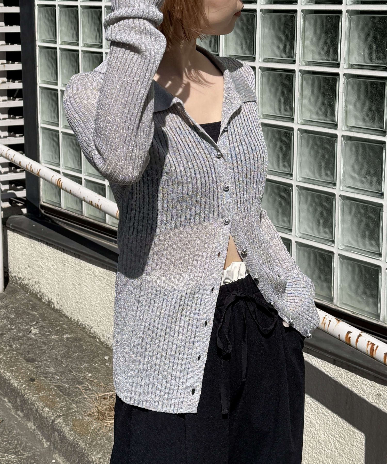 [4月7日販売開始!!] ラメシアーメタル釦襟付カーディガン