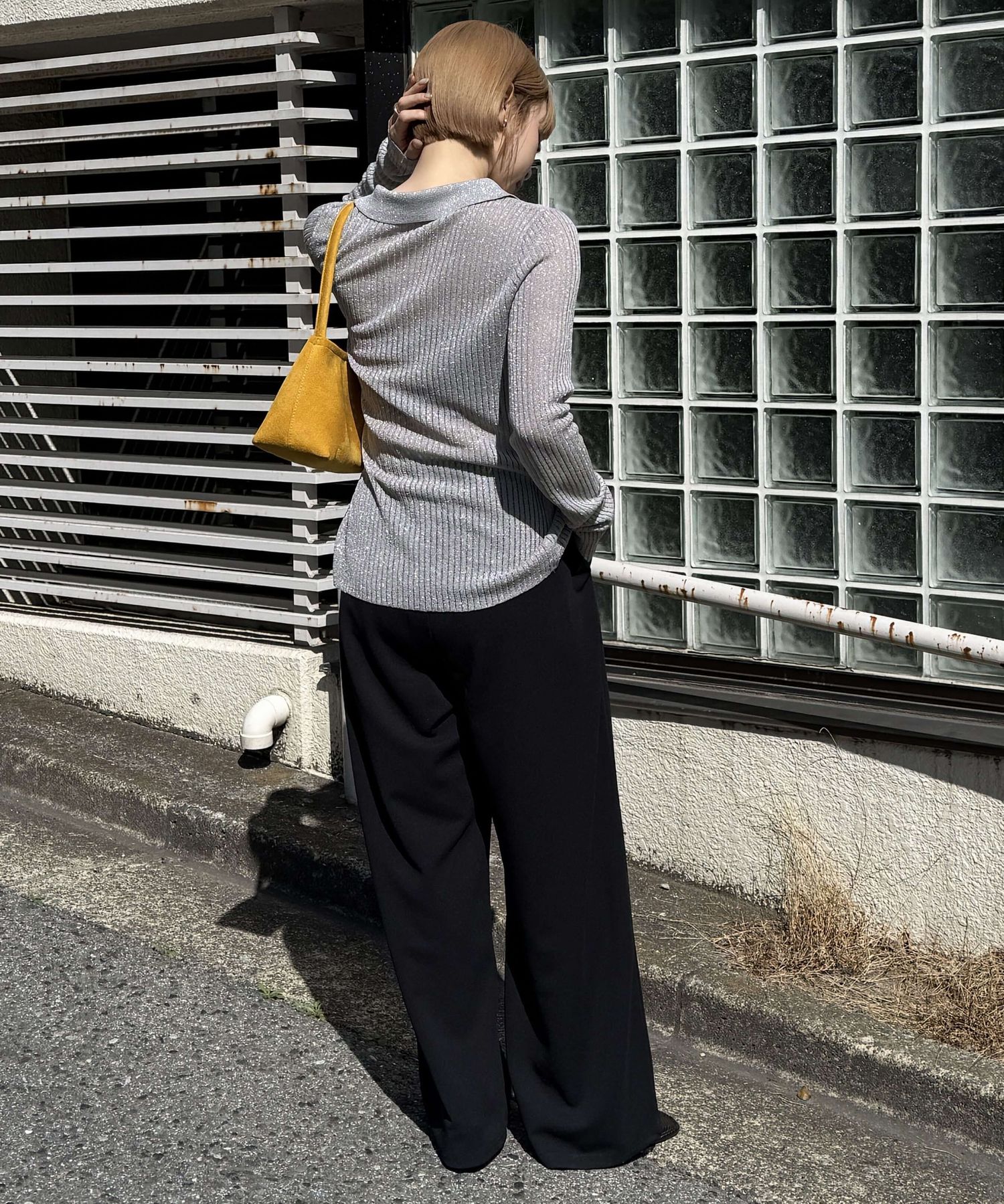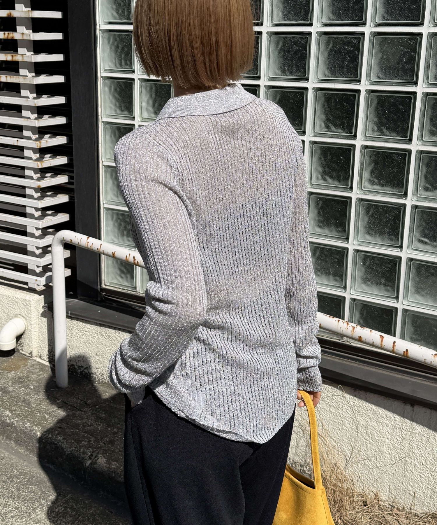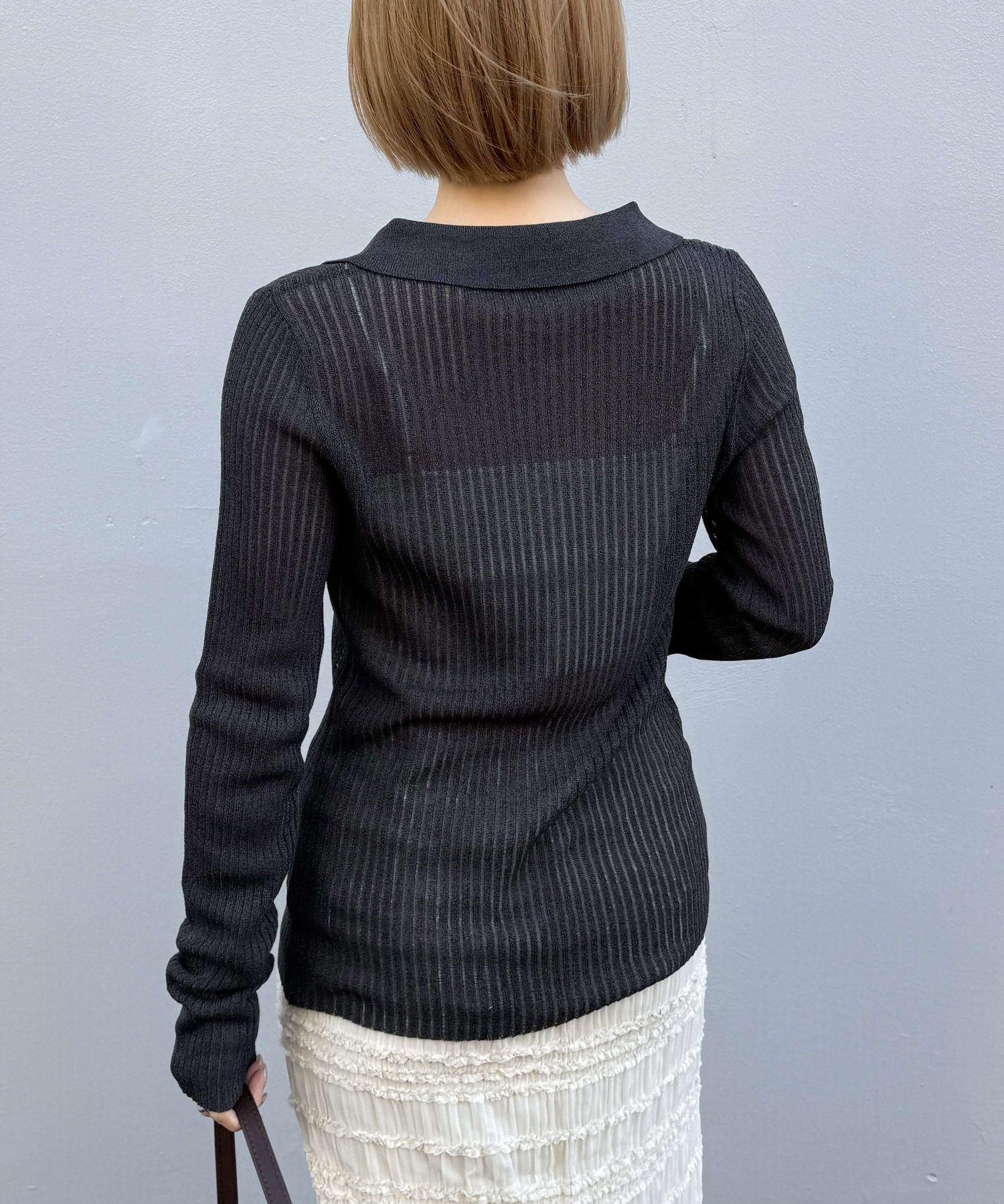 ・着るだけでこなれ感を演出する襟付きニット。
