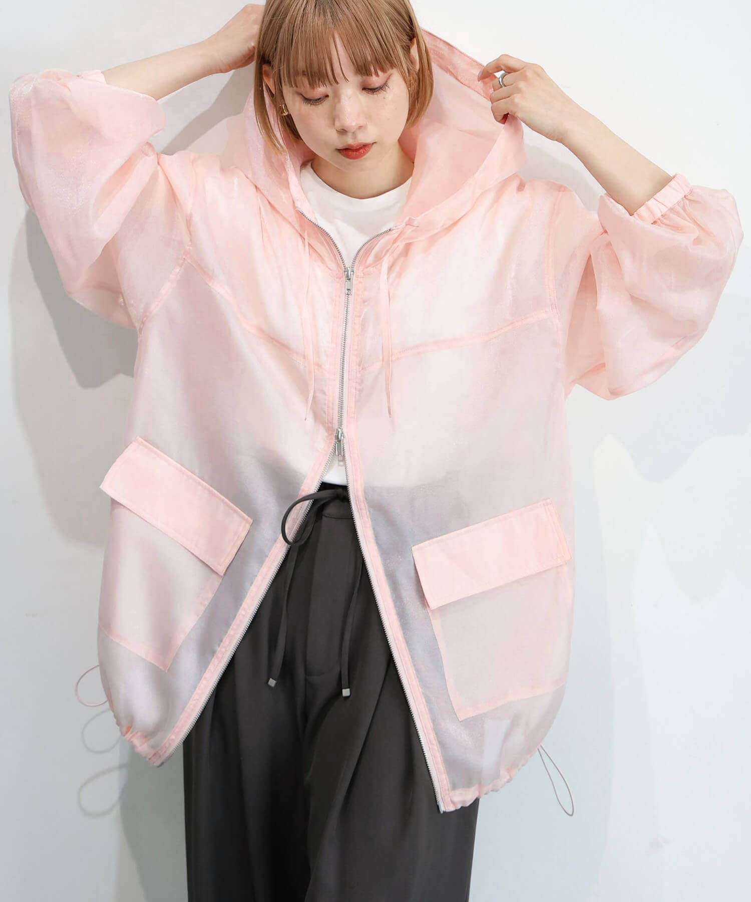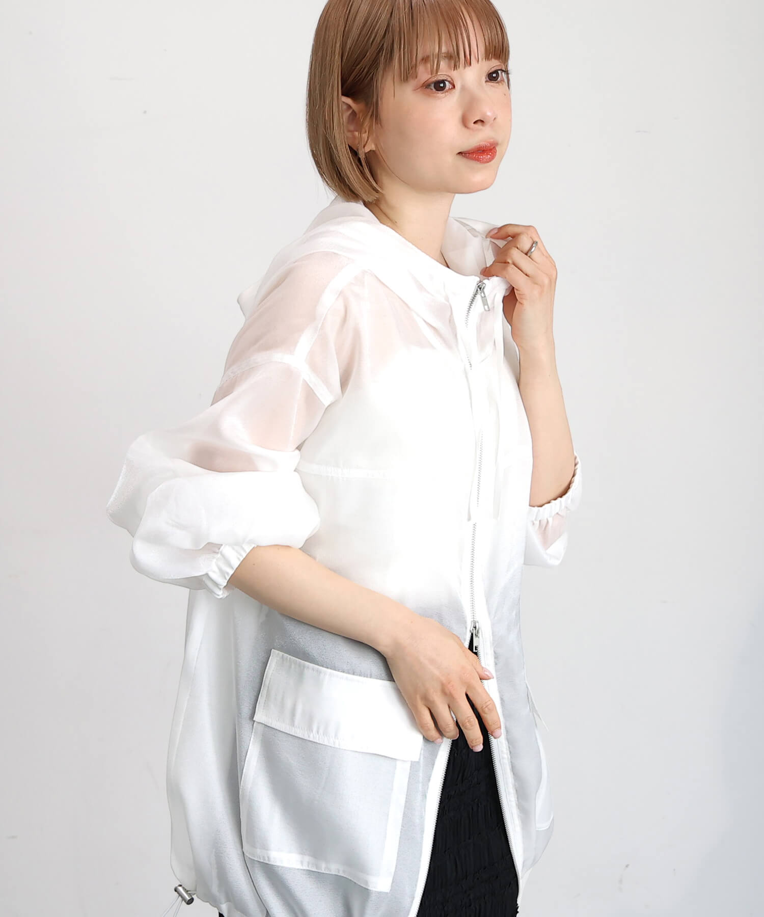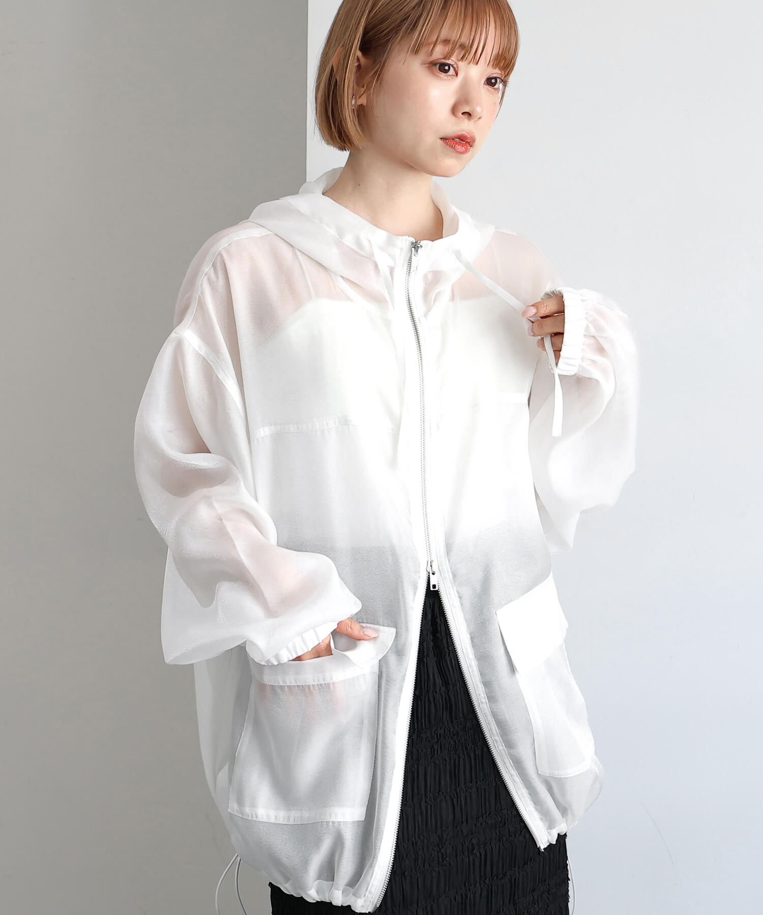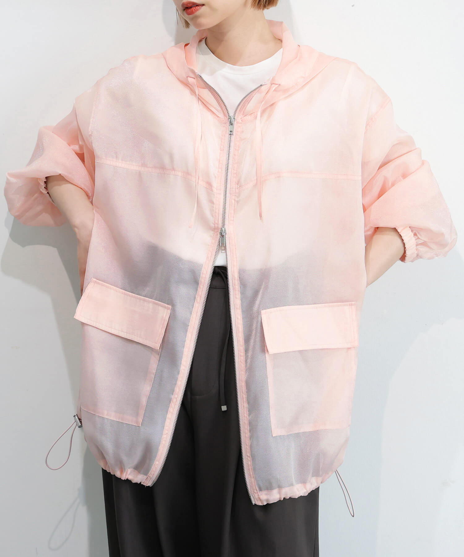 ・フロントはダブルジップで、シルエットのアレンジも自在です。