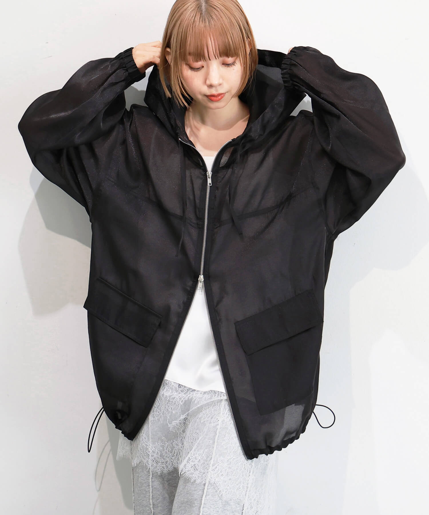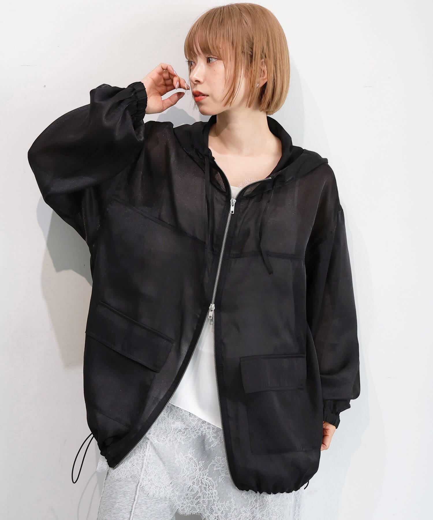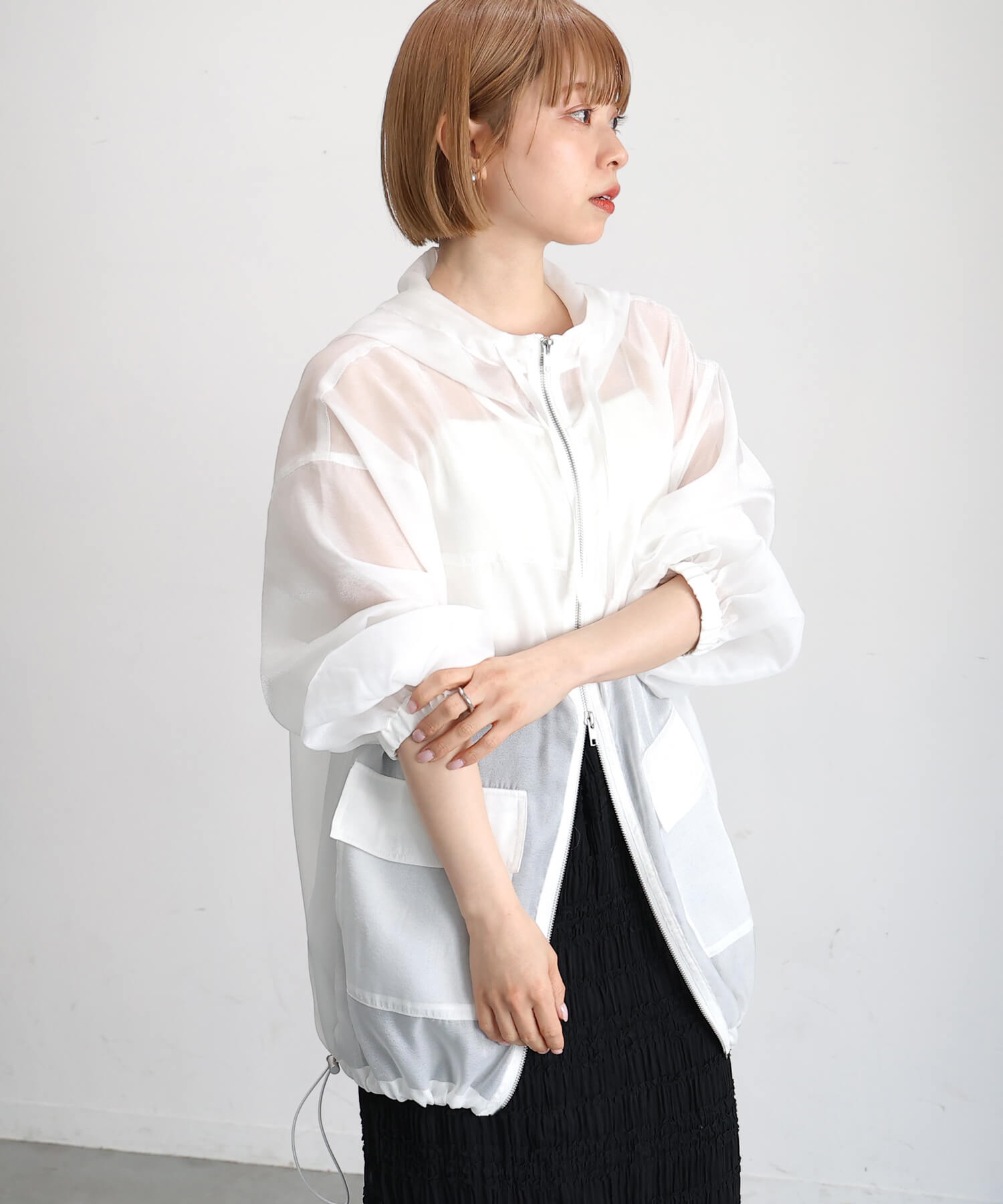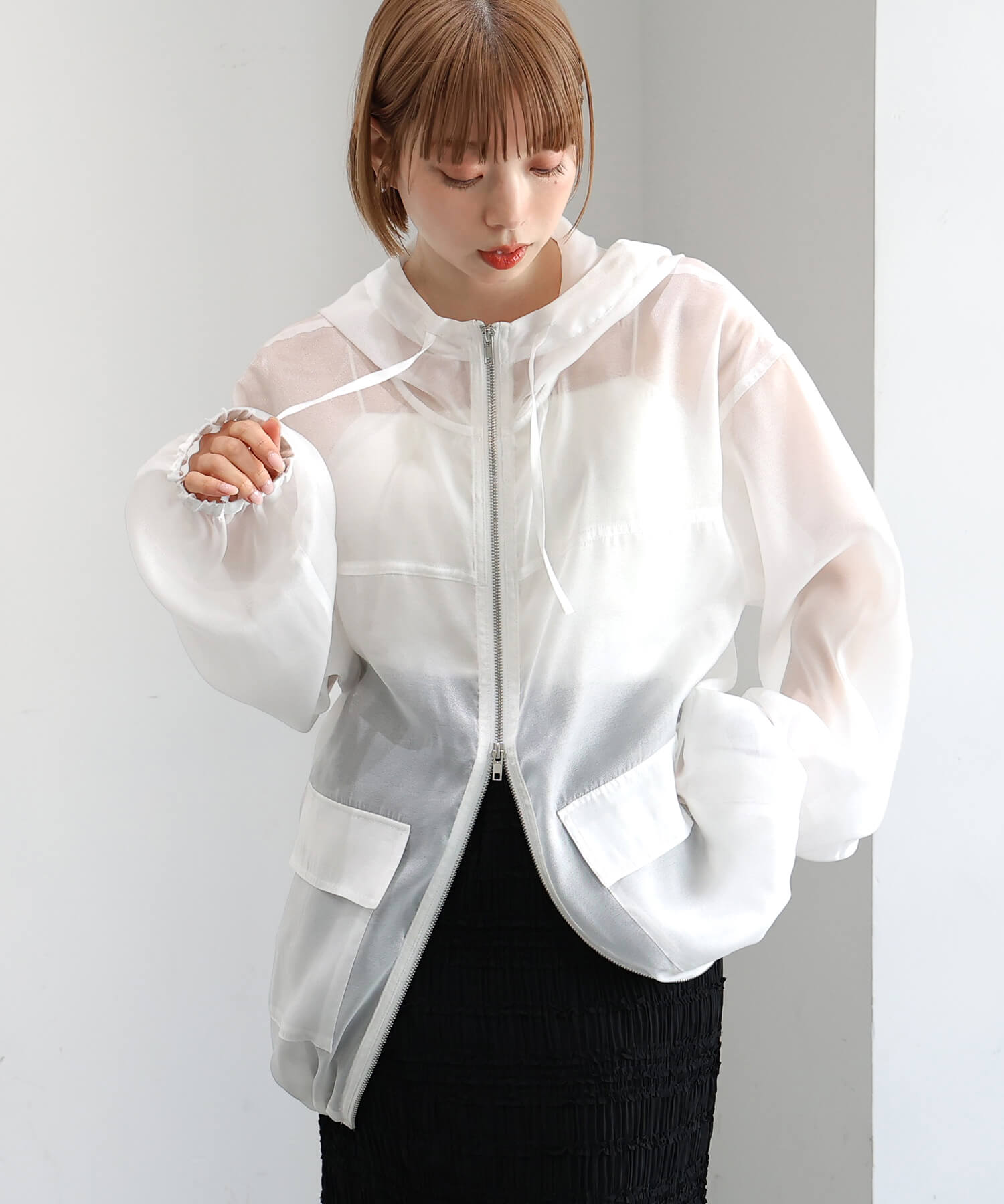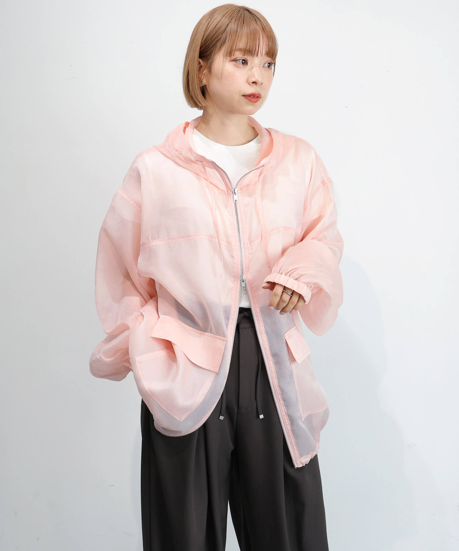 ・フロントはダブルジップで、シルエットのアレンジも自在です。