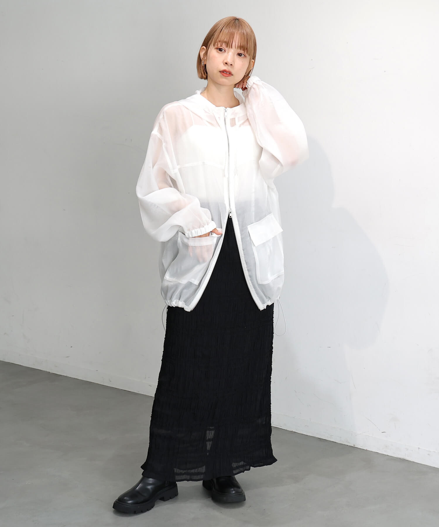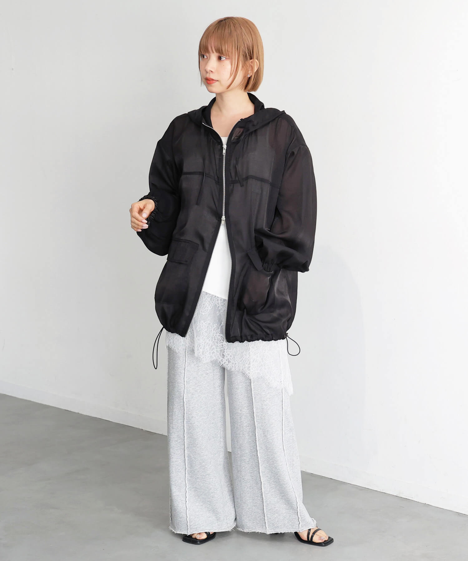 ・エアリーなシアー素材がコーディネートに程よい抜け感を演出します。
