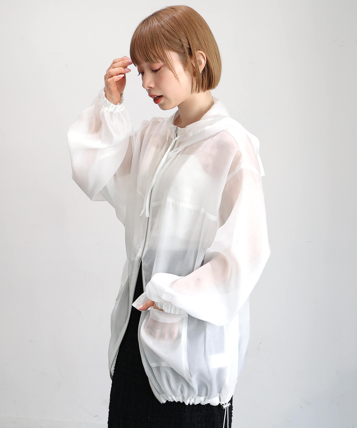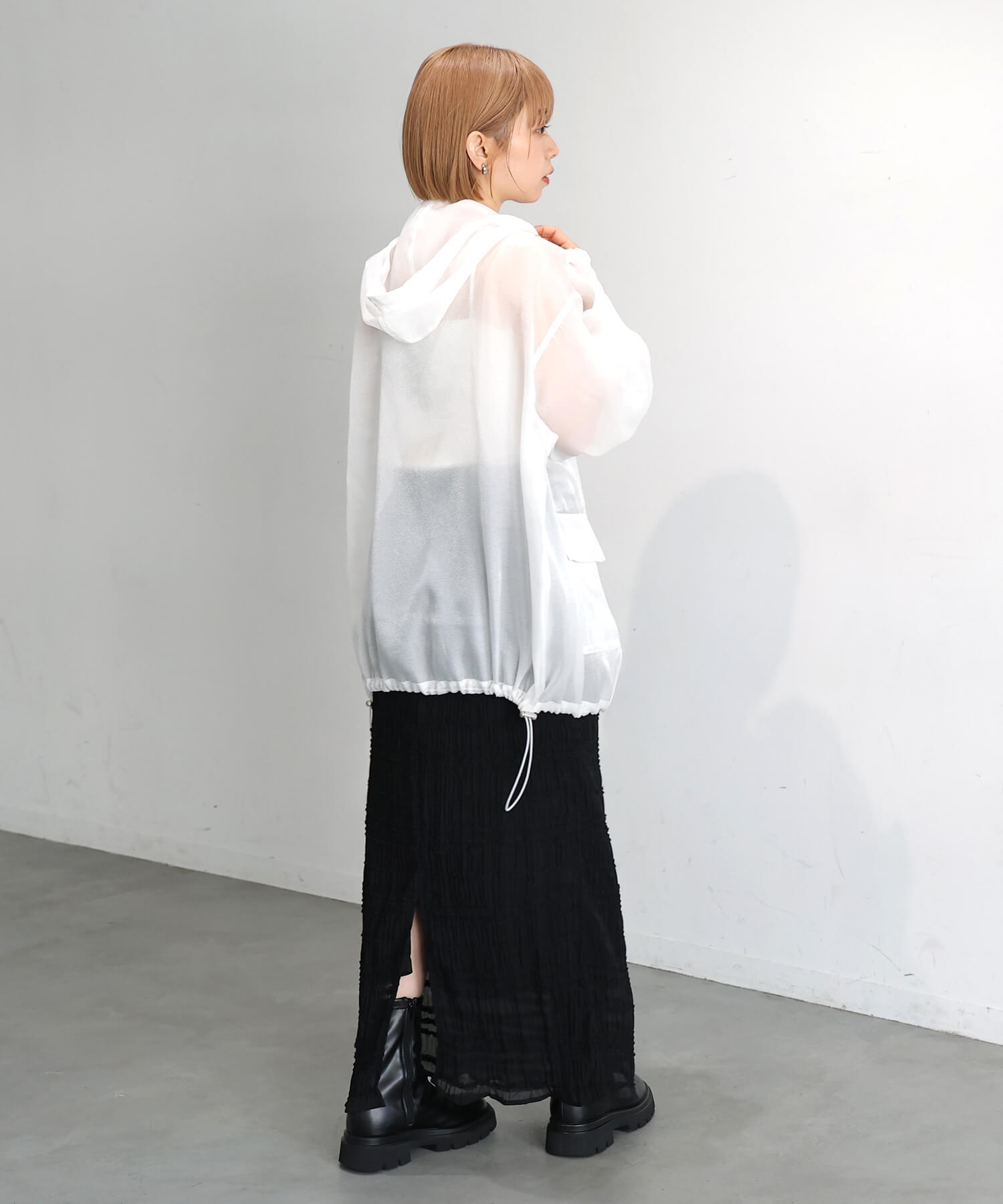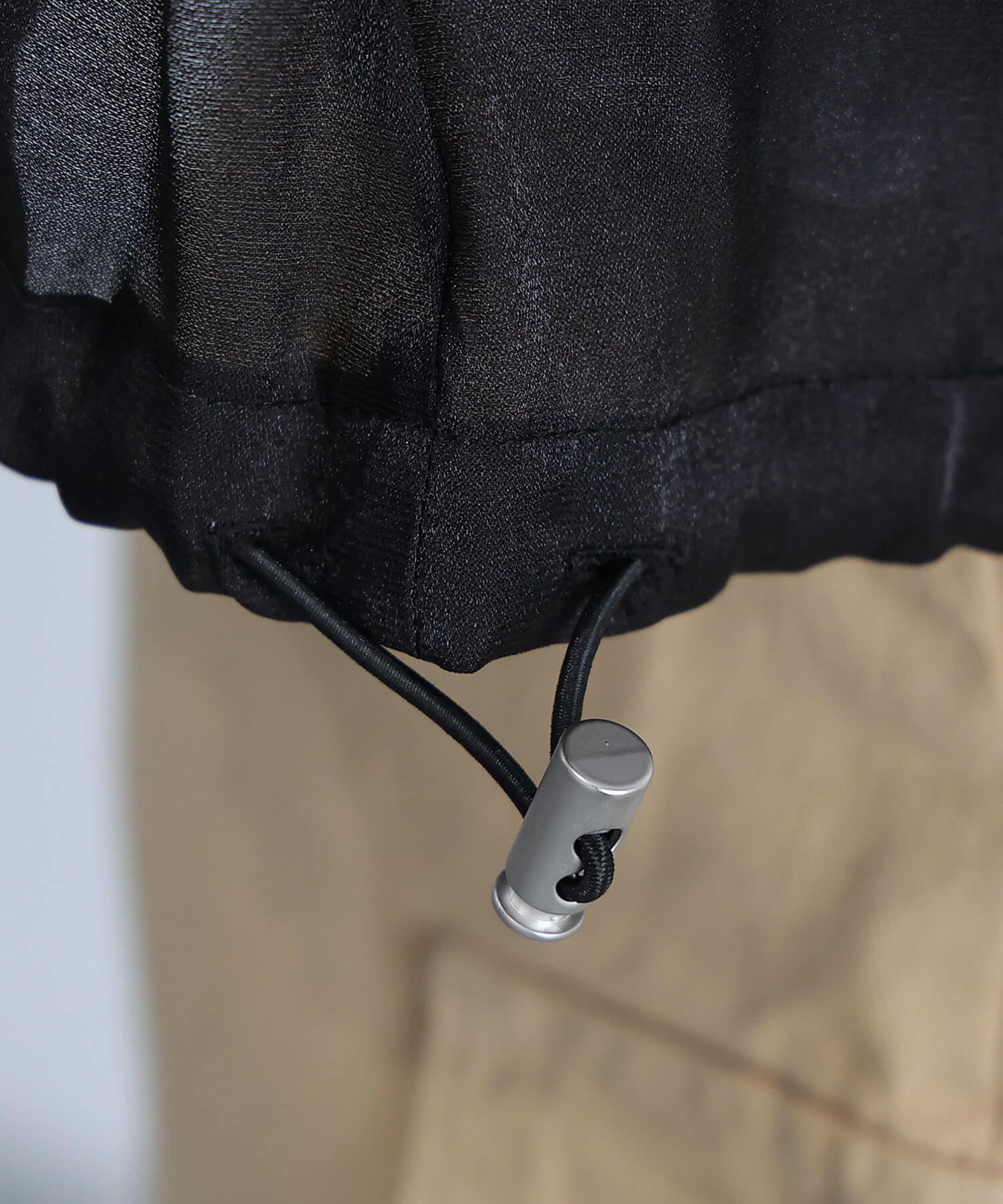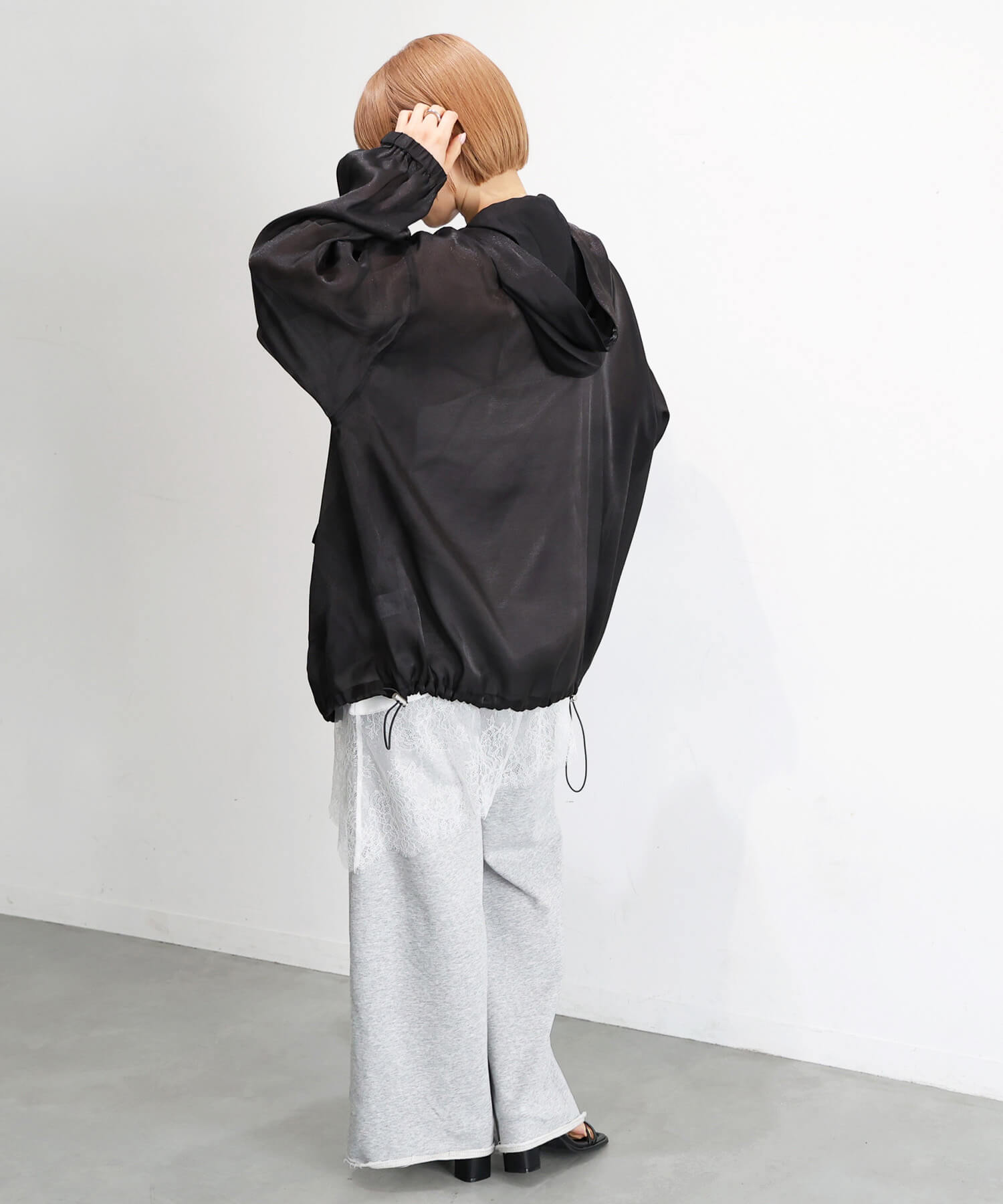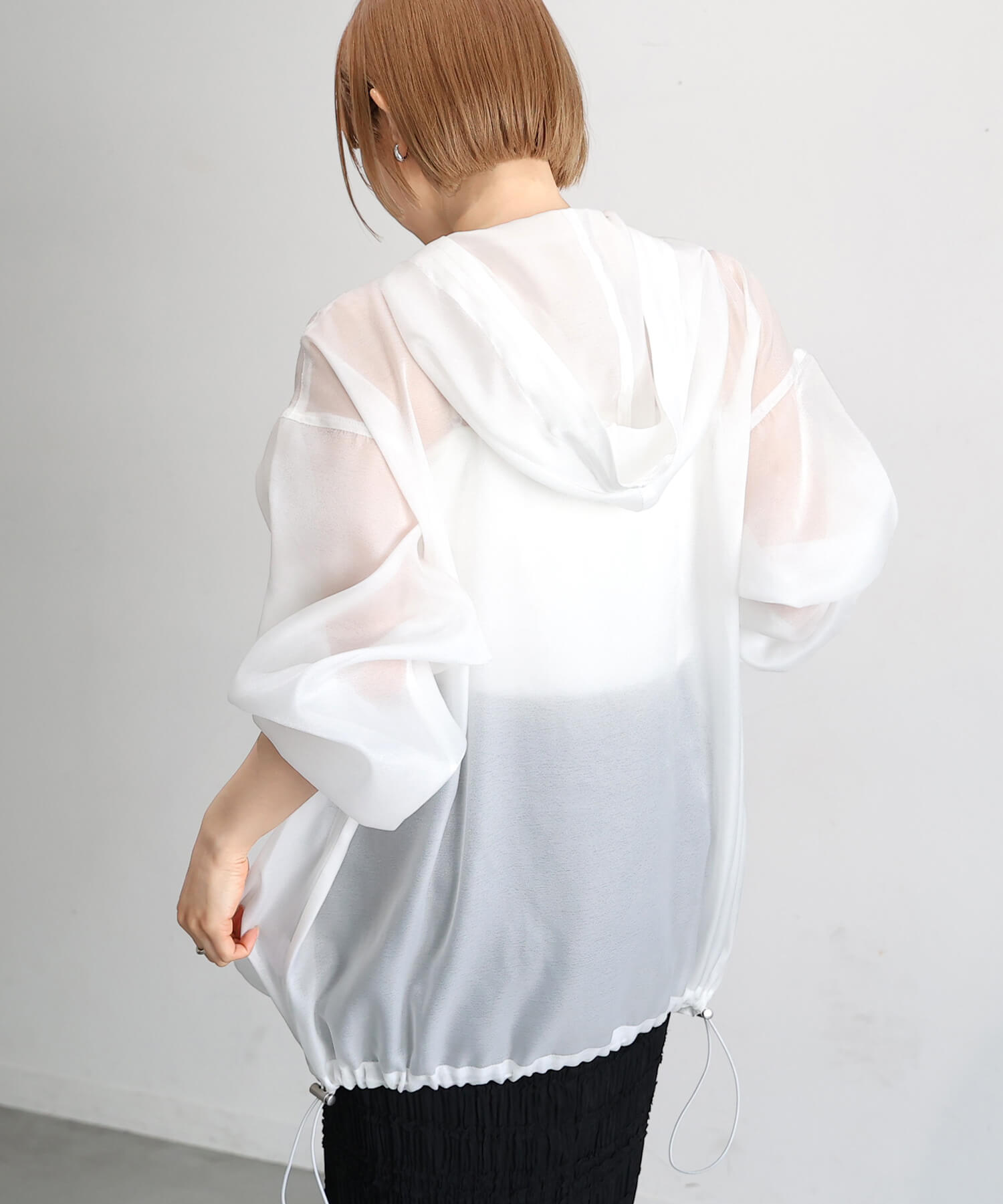 ・裾のドロストを絞れば、丸みのあるコクーンシルエットに。