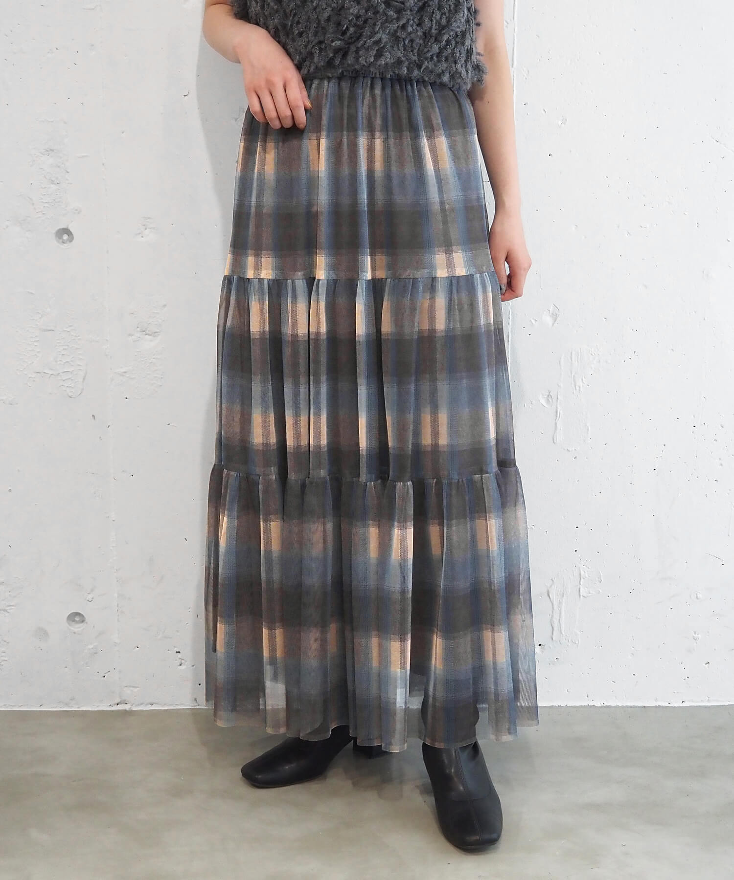 雰囲気の違う生地が選べるティアードスカート。コーディネートで使い分けもおすすめ♪