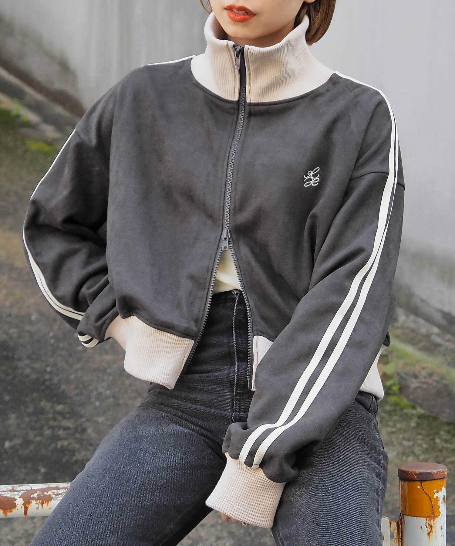 【web限定アイテム】袖ライン畦編みジップブルゾン