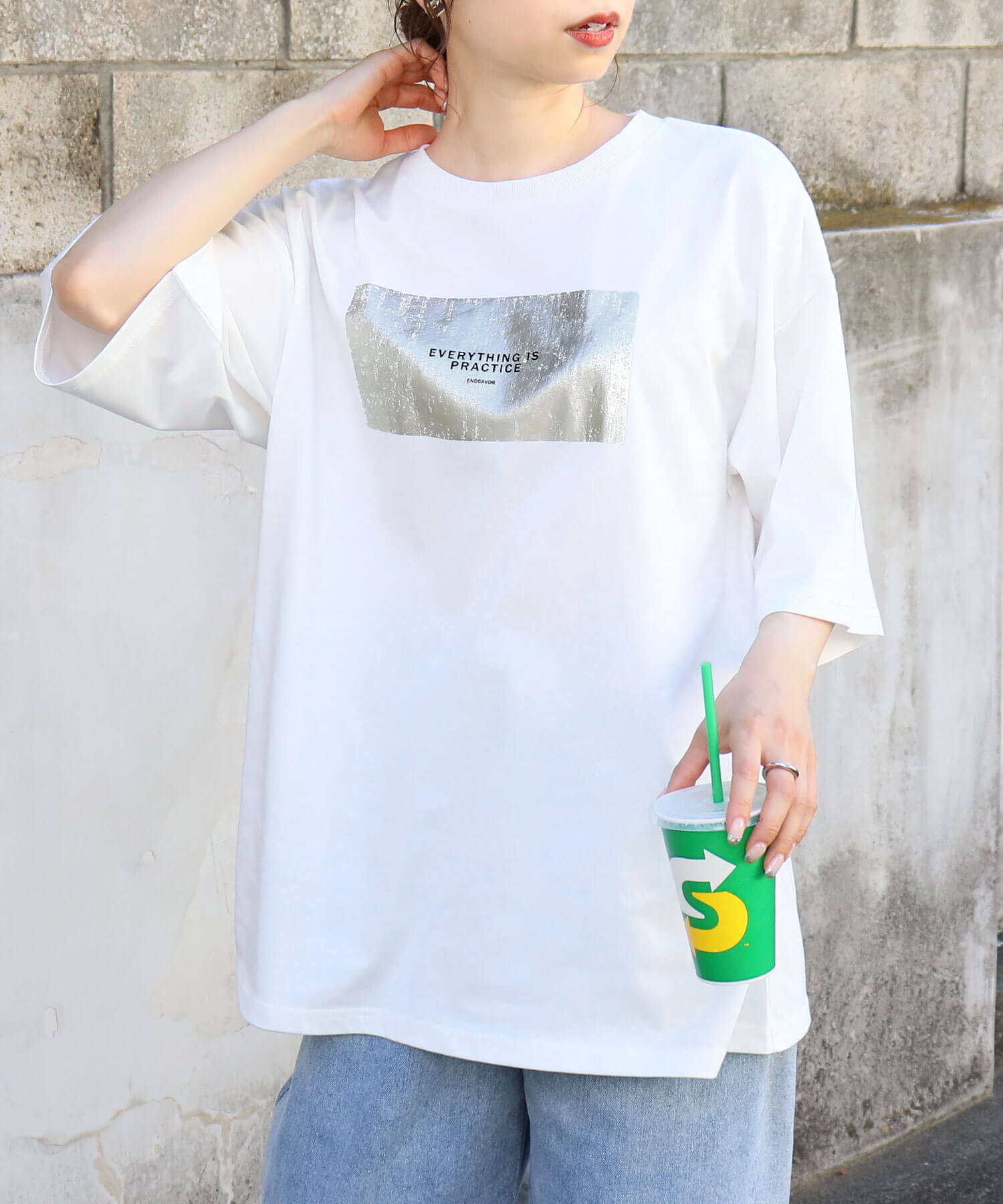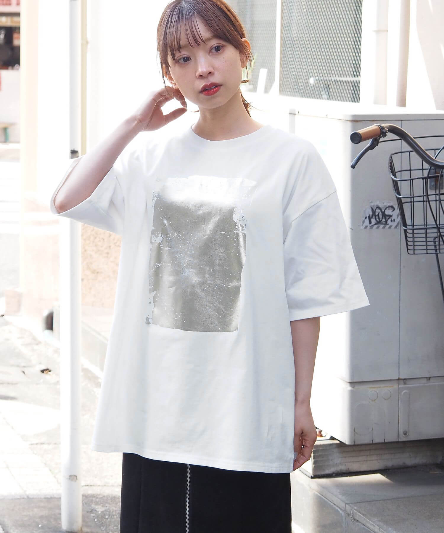 ・光沢感のある箔プリントが魅力のBIGTシャツです。