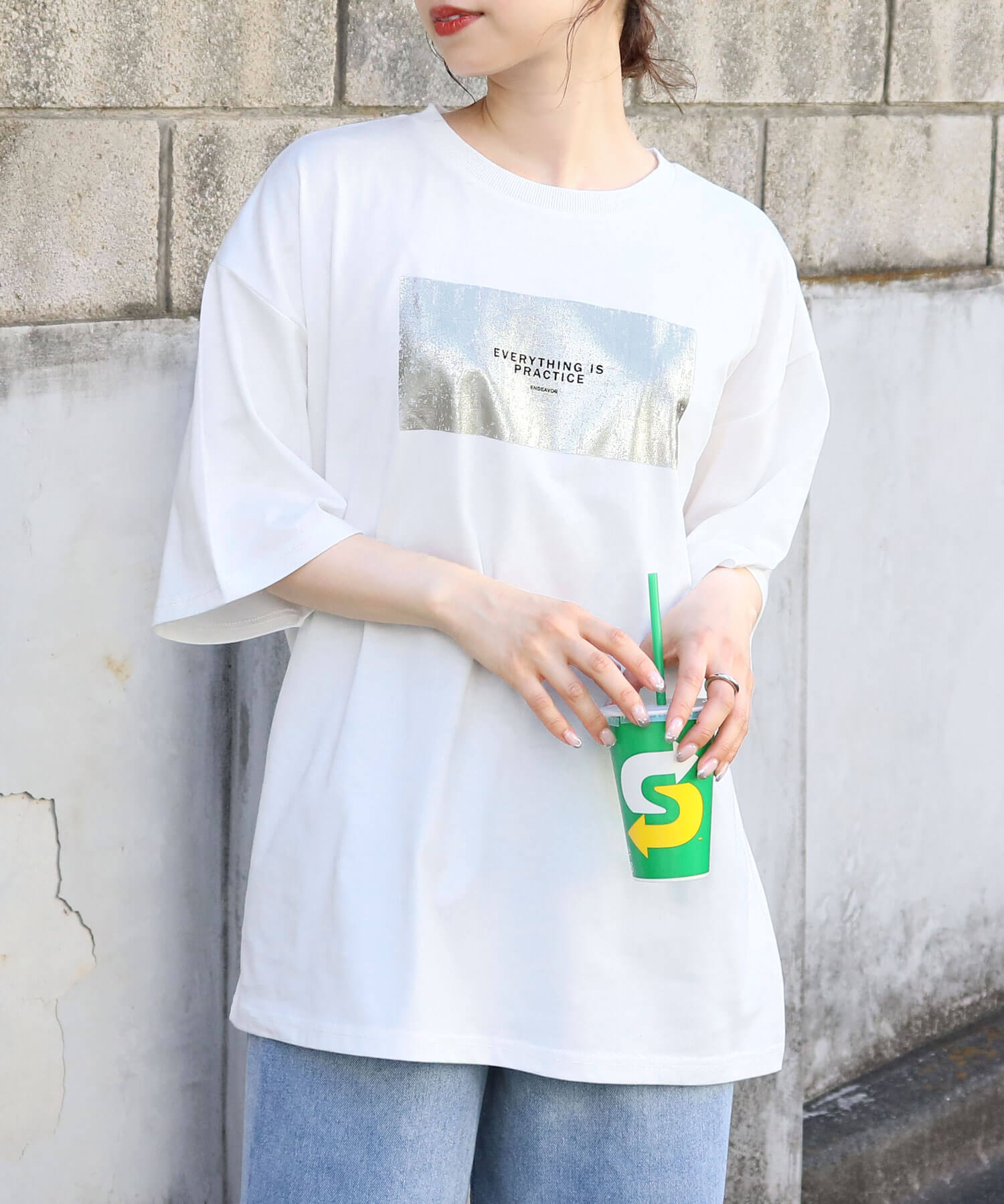 箔プリント半袖BIGTシャツ