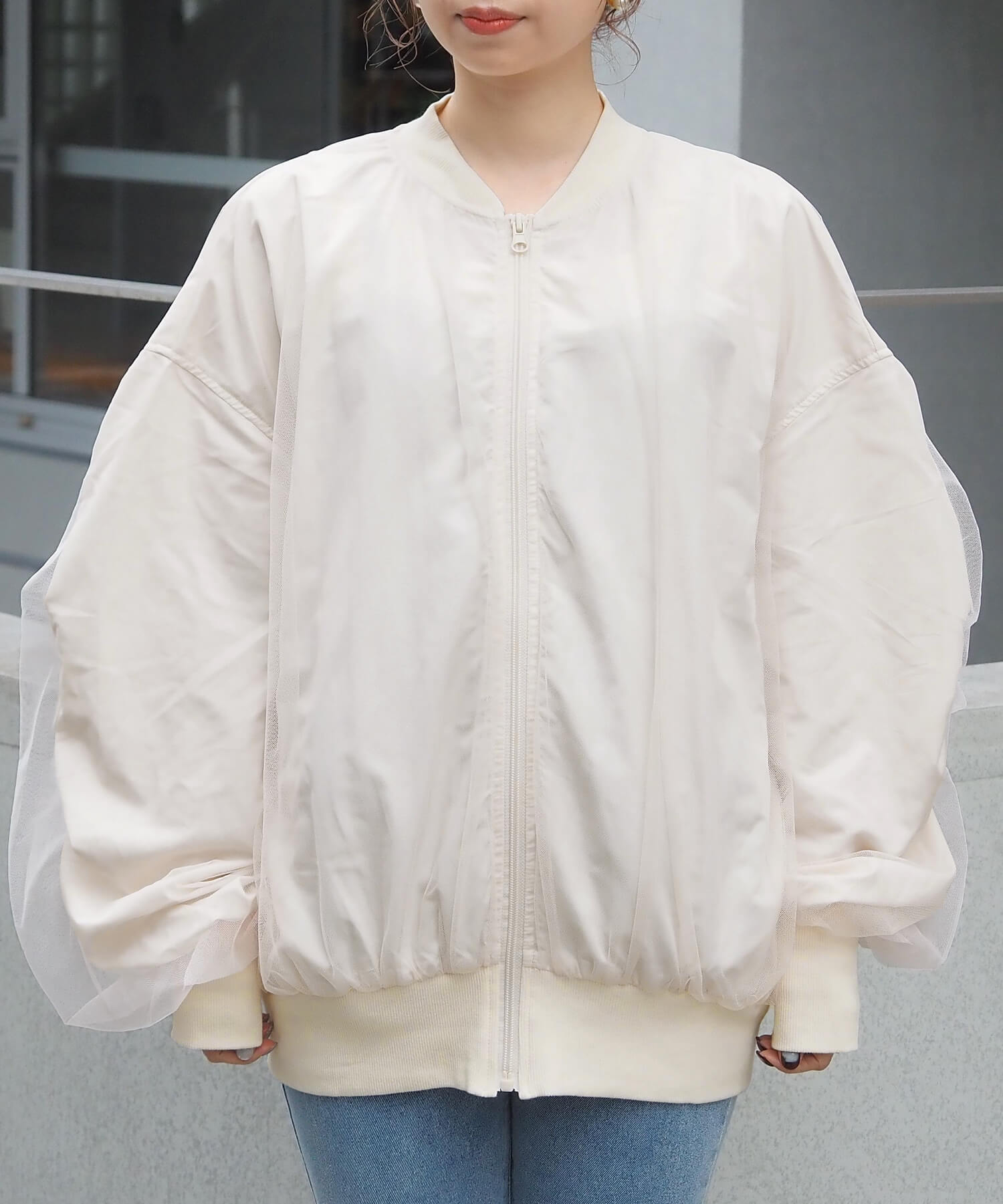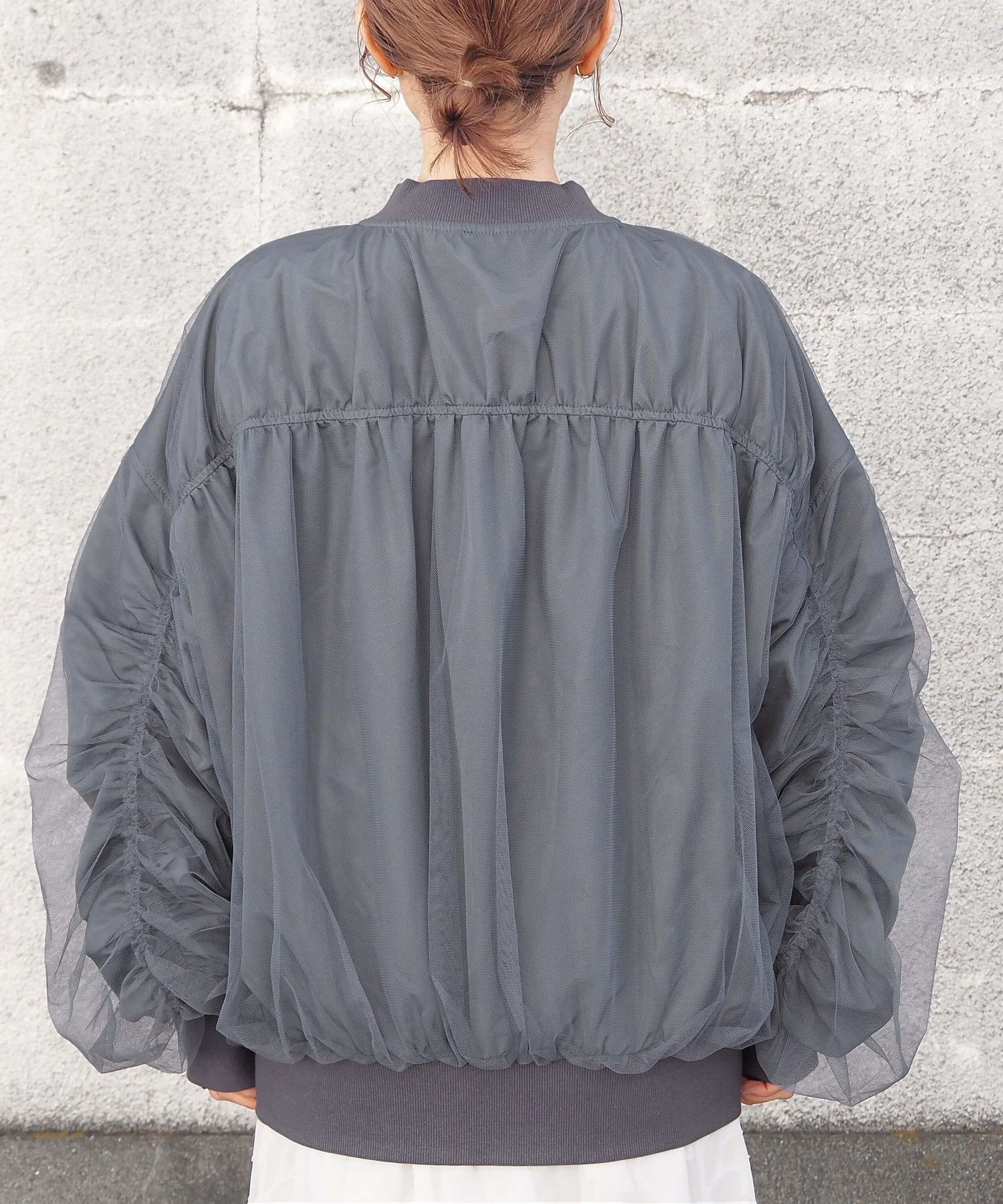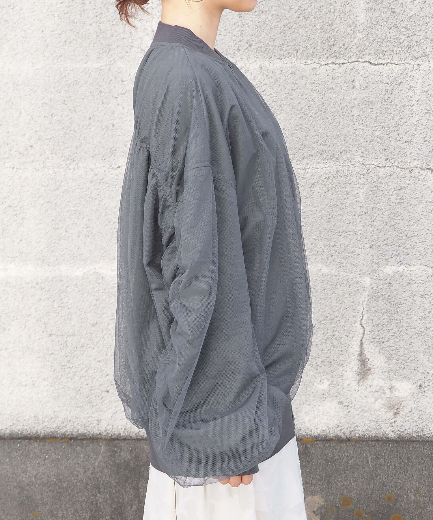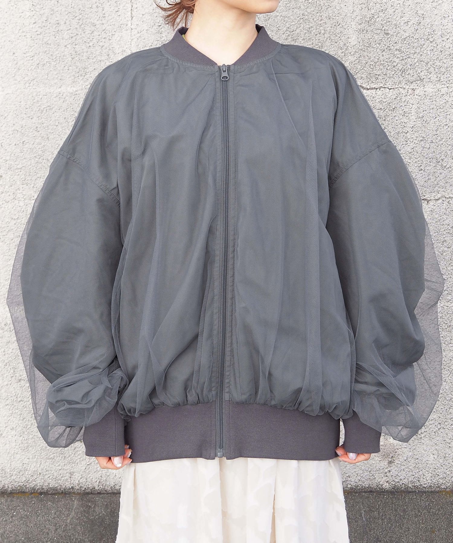 ・今季注目のチュール生地をたっぷりと重ねた、オーバーサイズブルゾンです。
