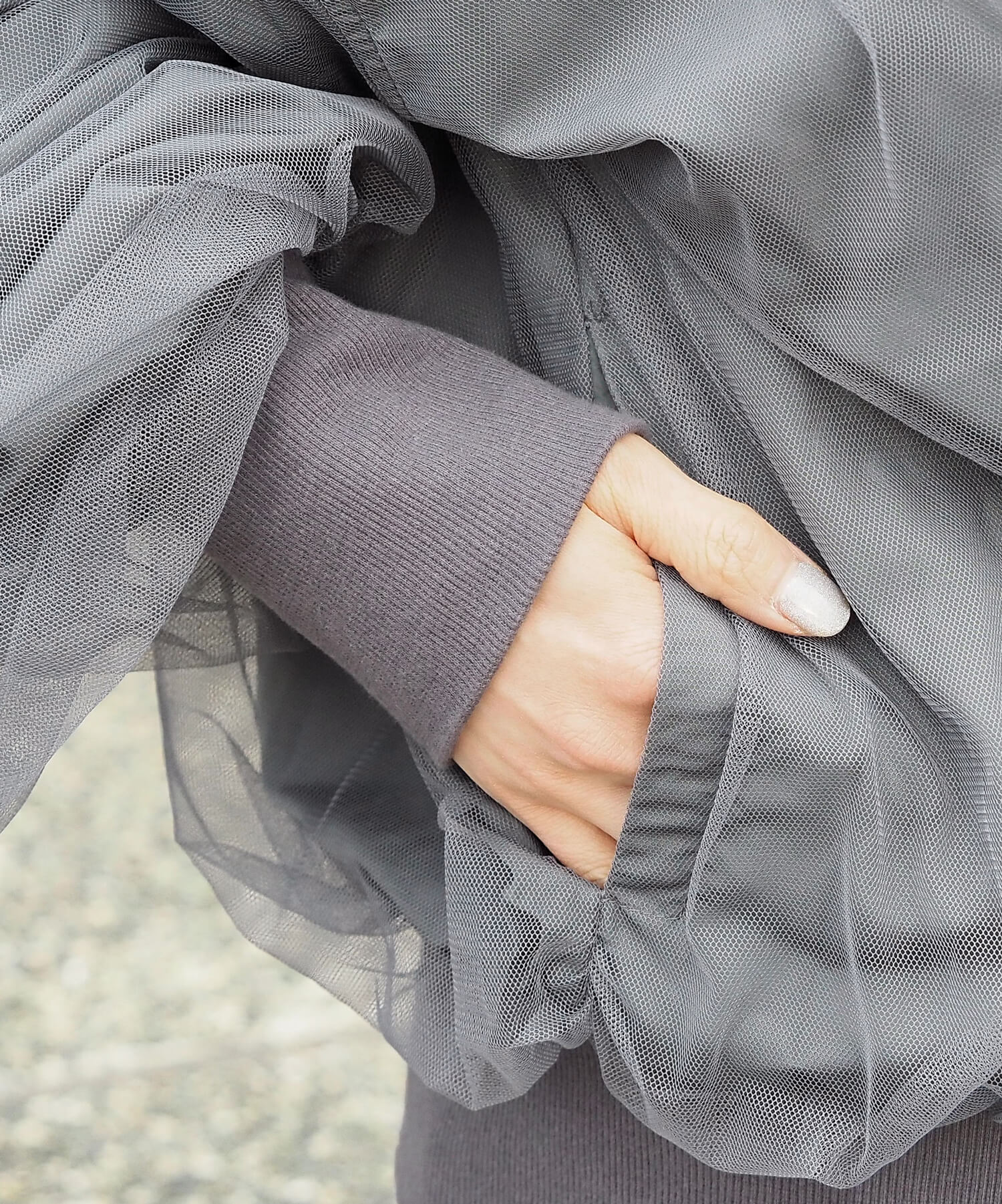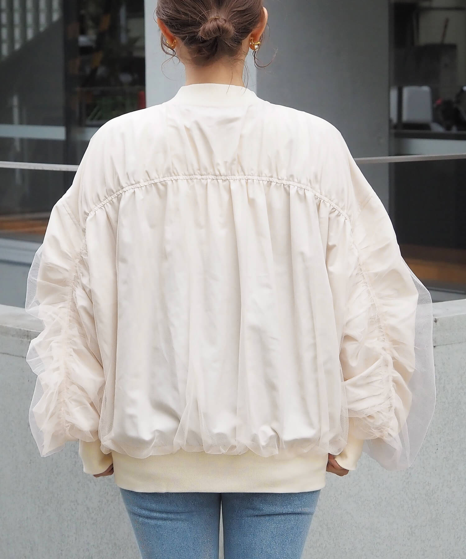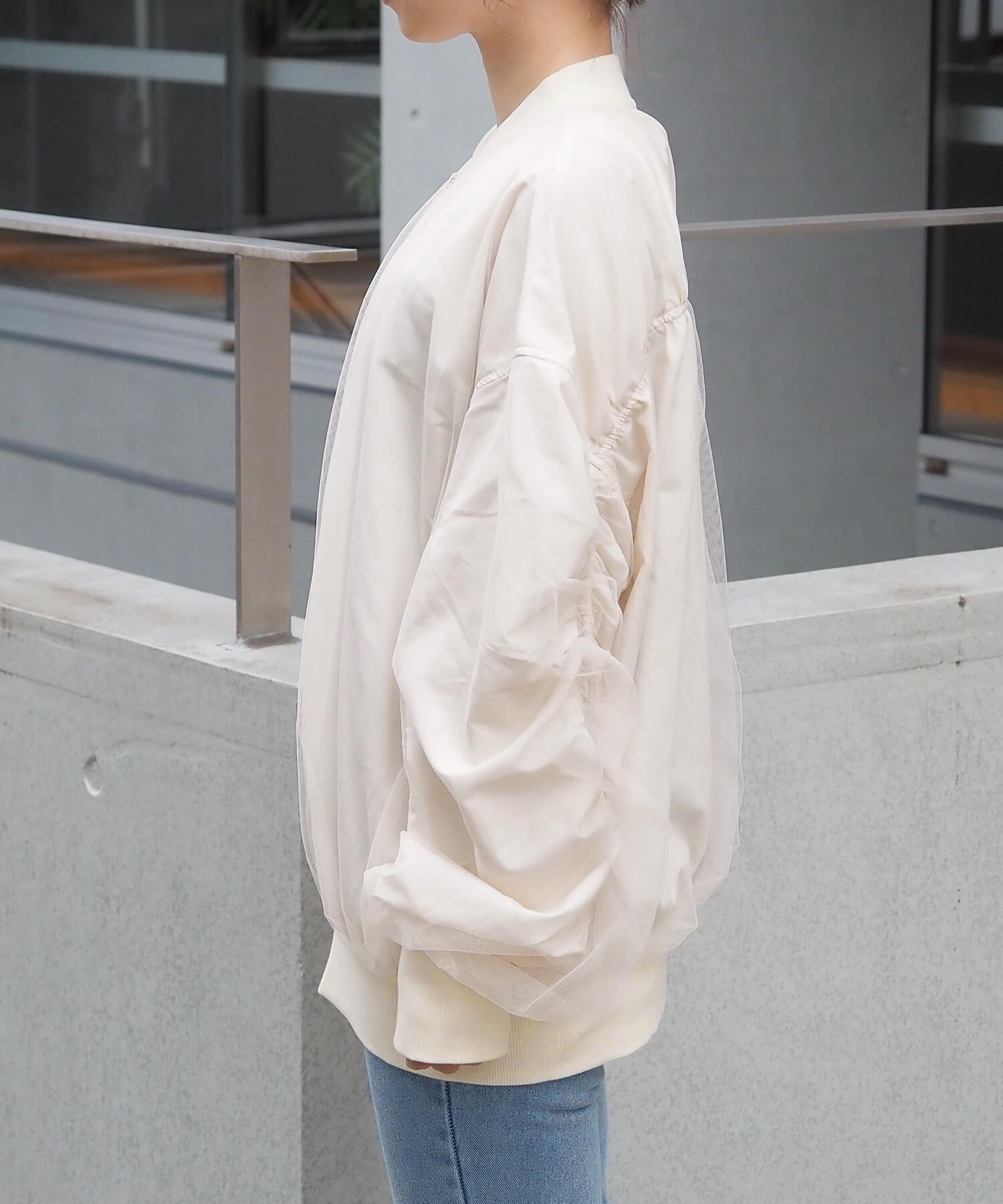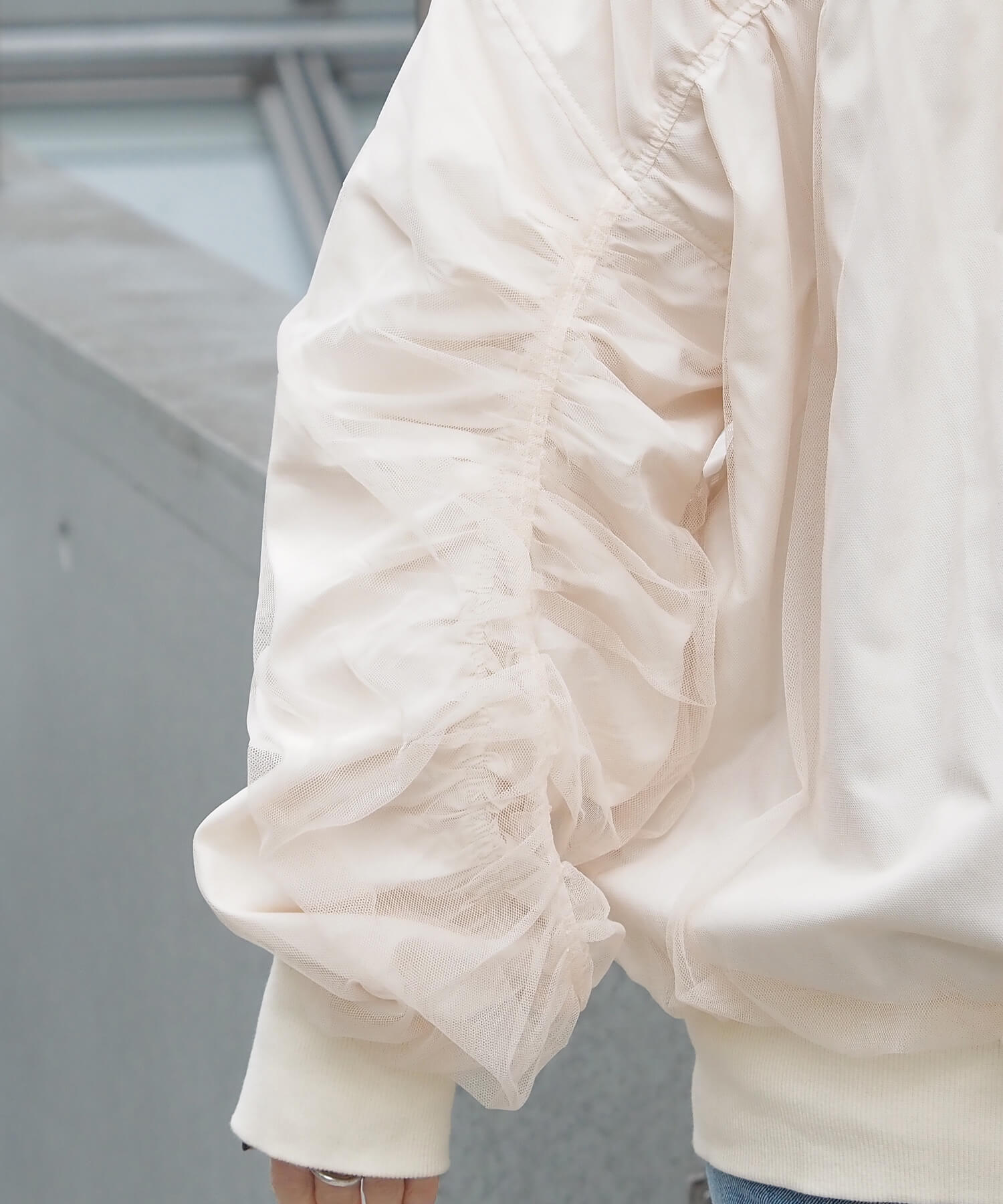 ・今季注目のチュール生地をたっぷりと重ねた、オーバーサイズブルゾンです。