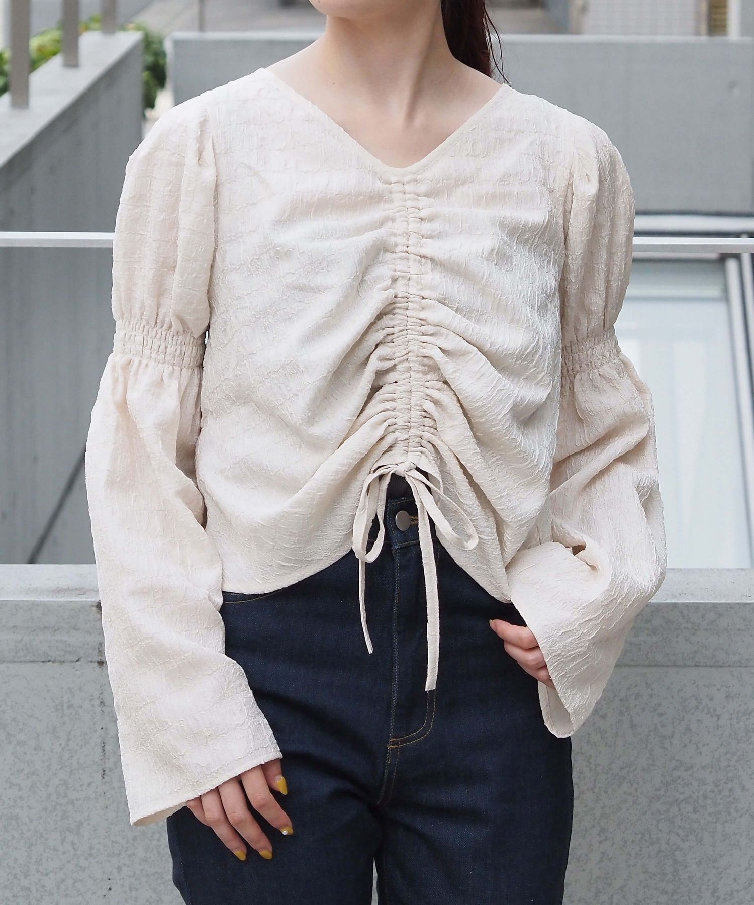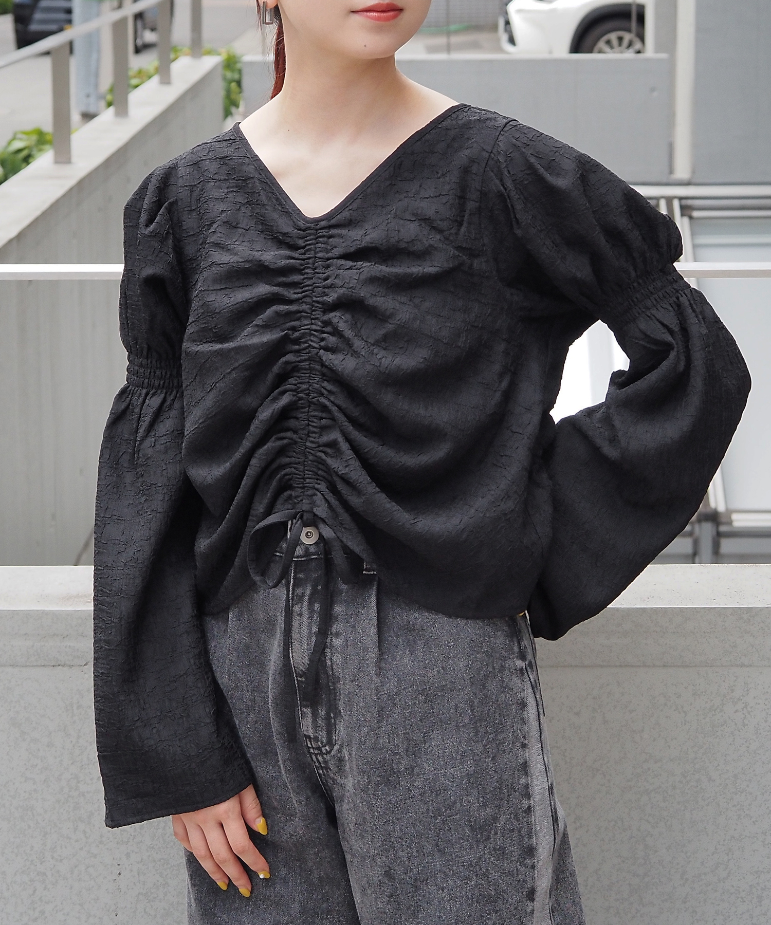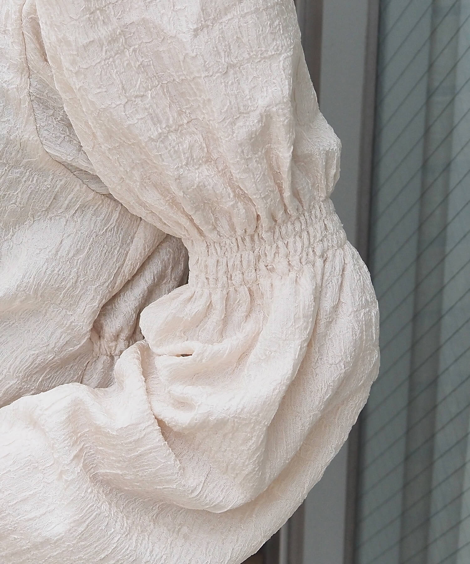 ・袖にはシャーリング加工をプラスし、適度なボリューム感とフレアなラインが好バランスなシルエットに。