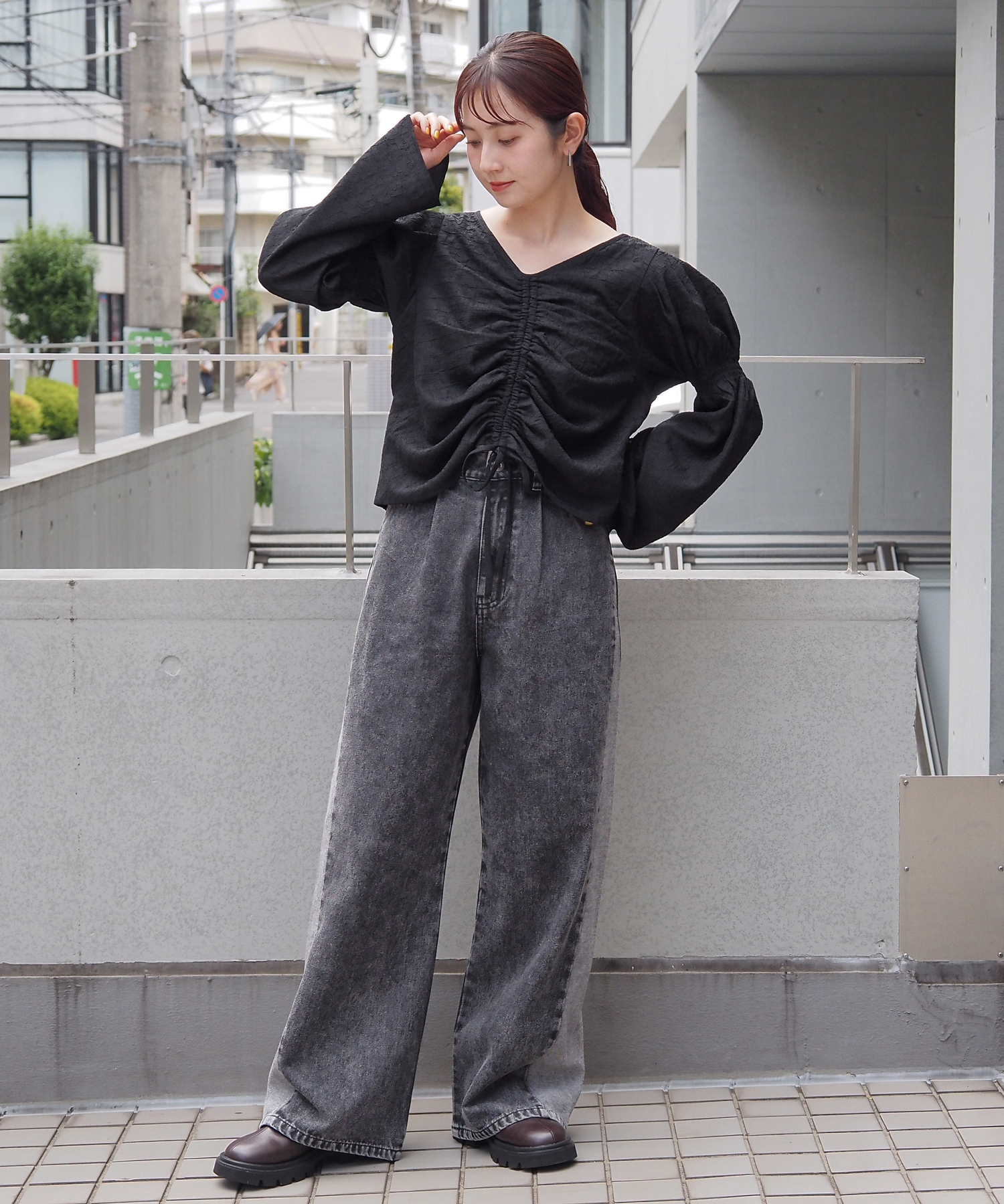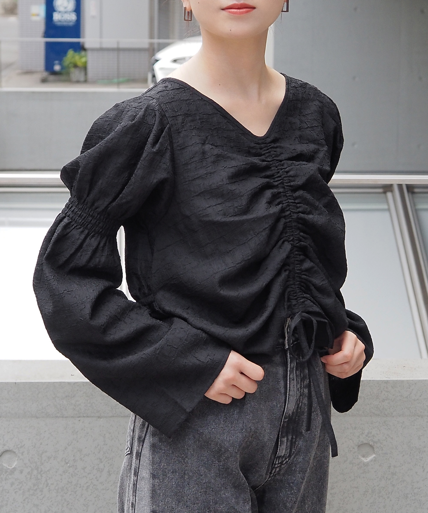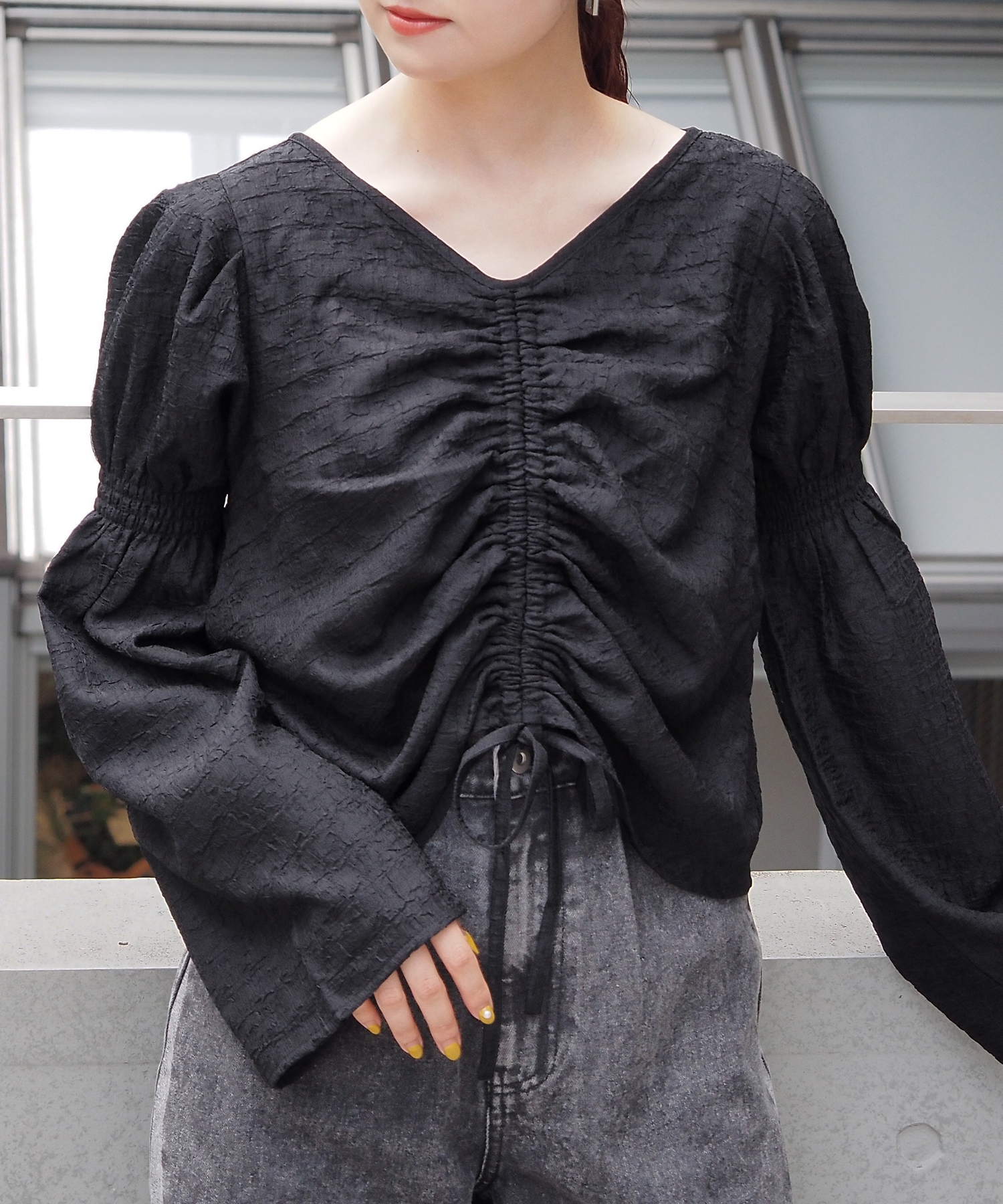 ・袖にはシャーリング加工をプラスし、適度なボリューム感とフレアなラインが好バランスなシルエットに。