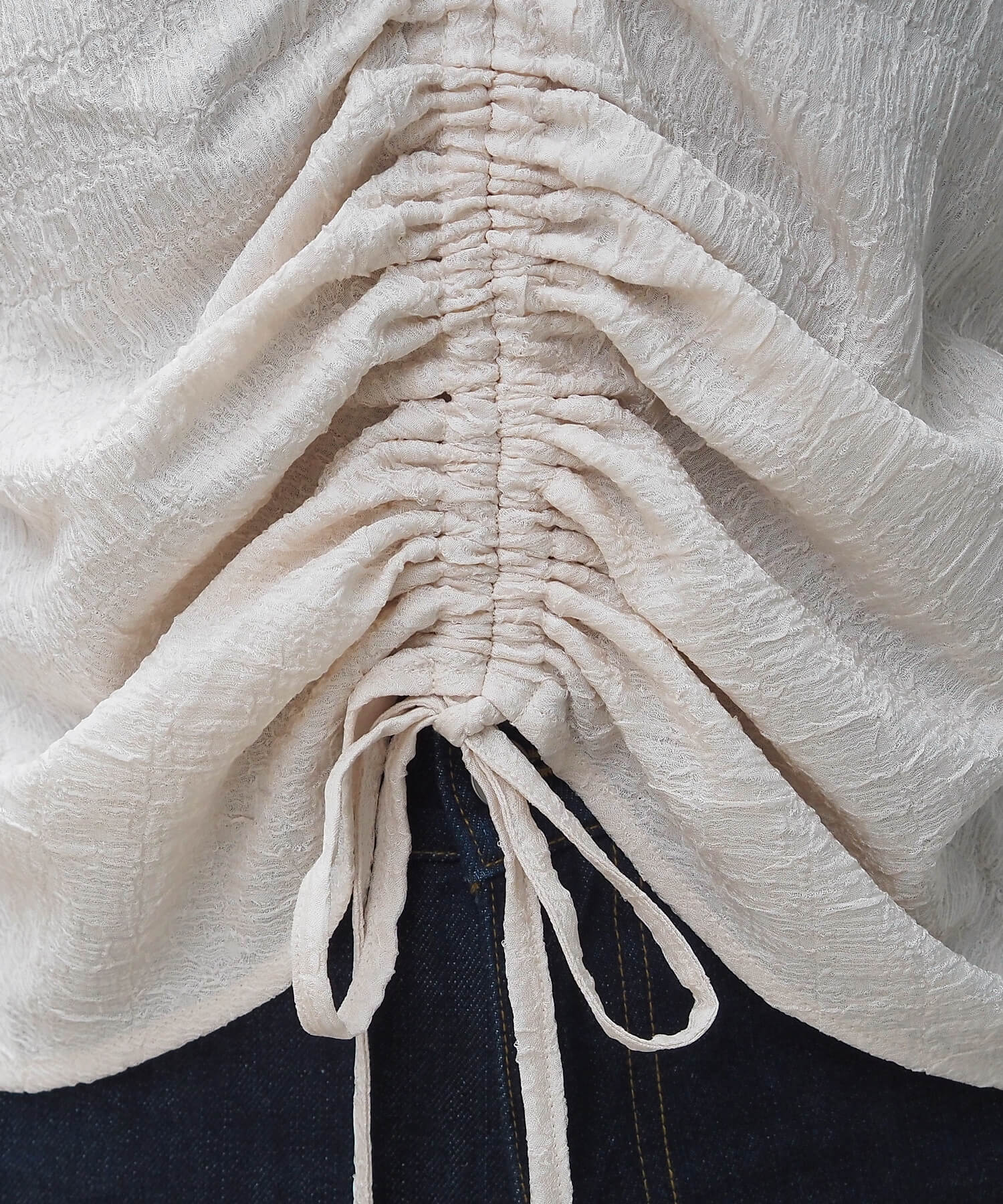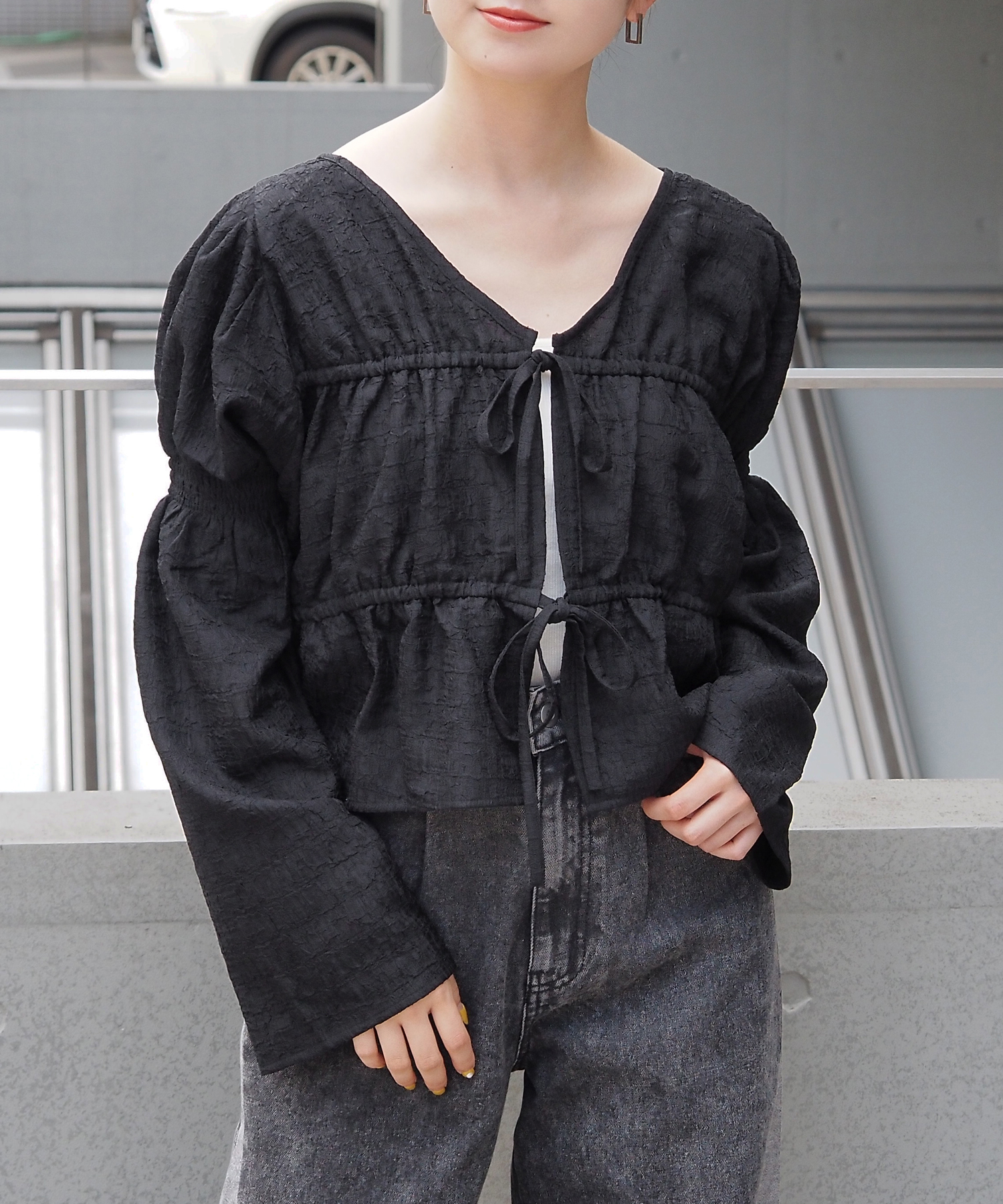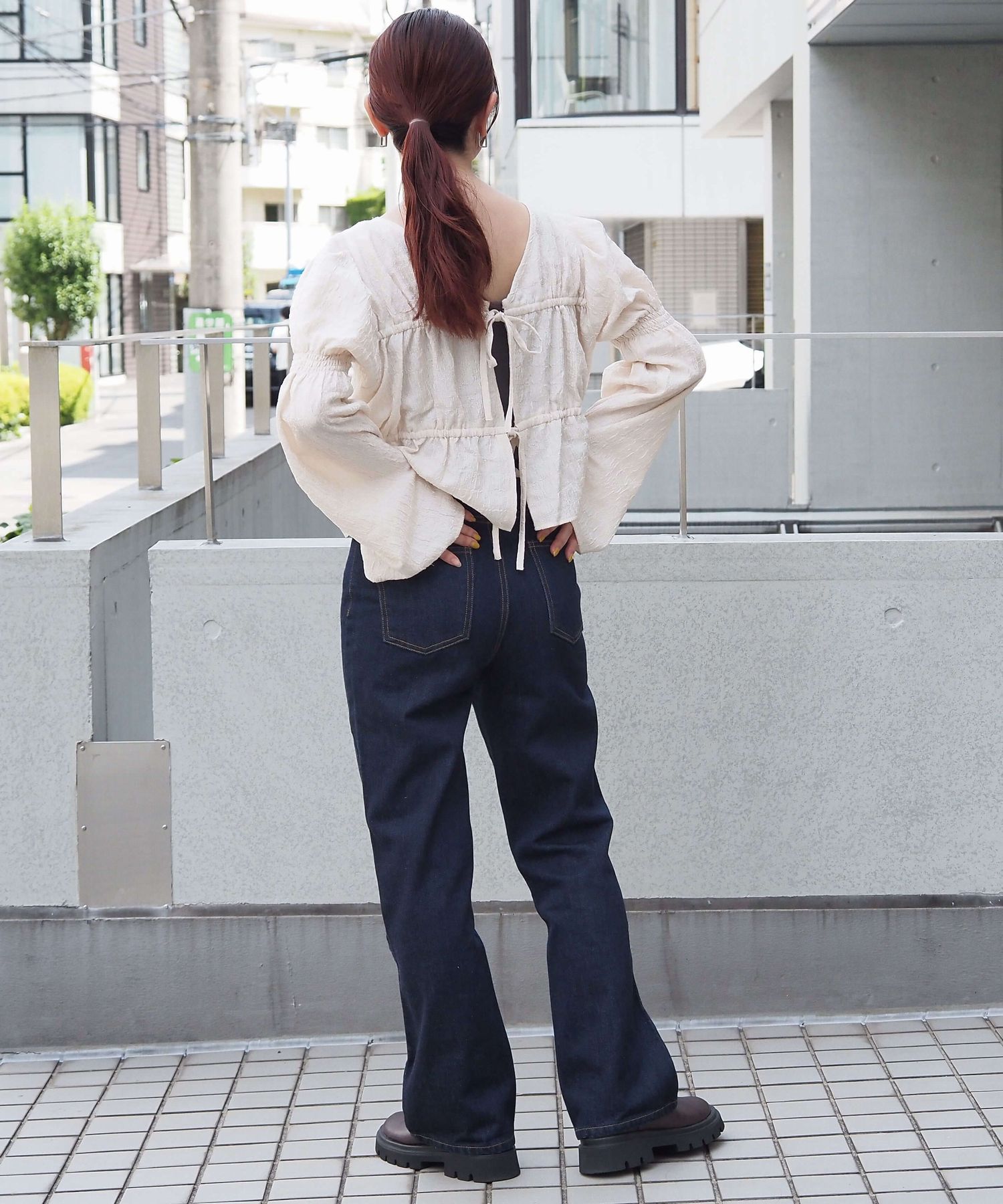・フロントドロストやバックのダブルリボン、パフ袖など女性らしいディテールをぎゅっと詰め込んだこだわりの1枚。