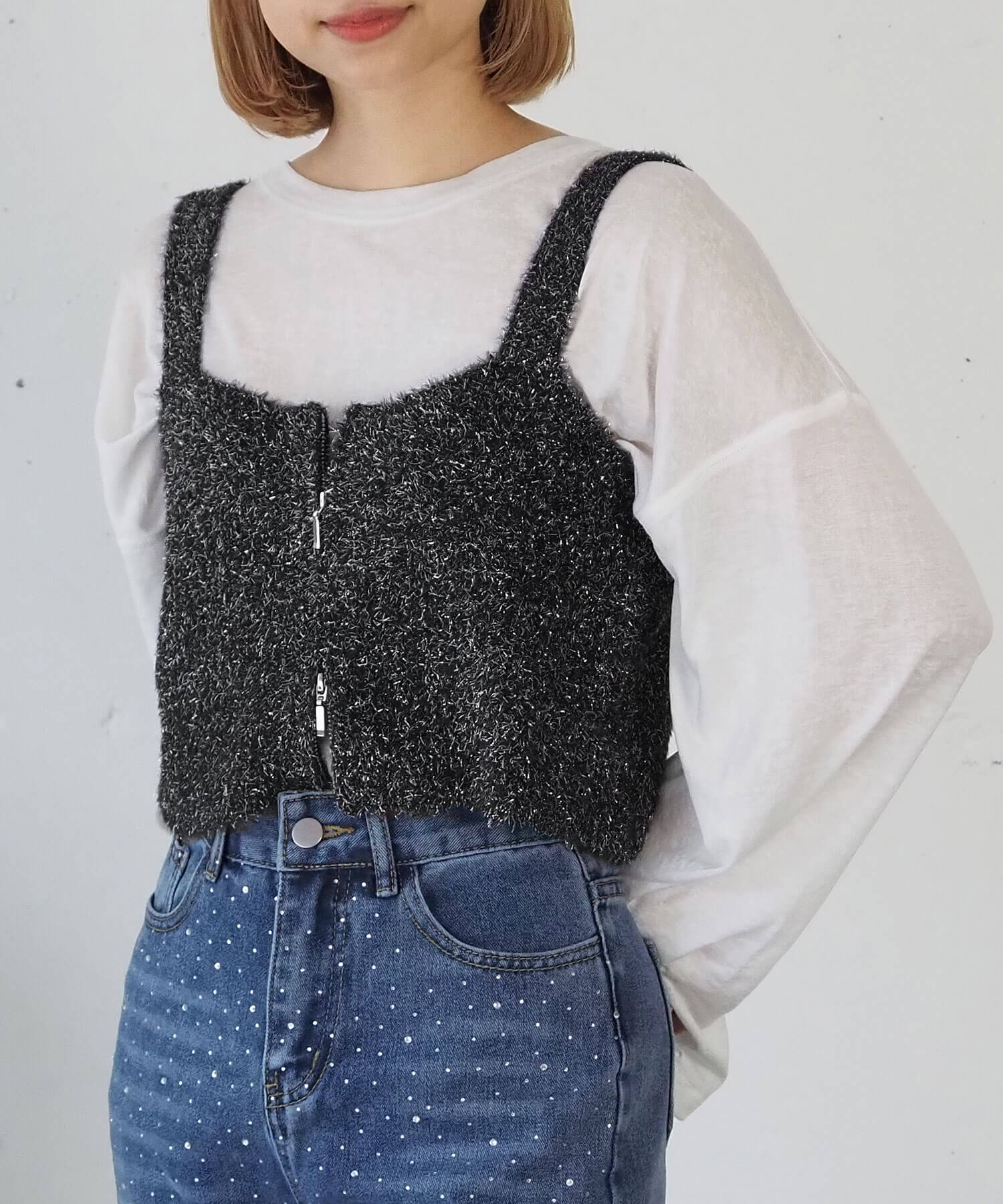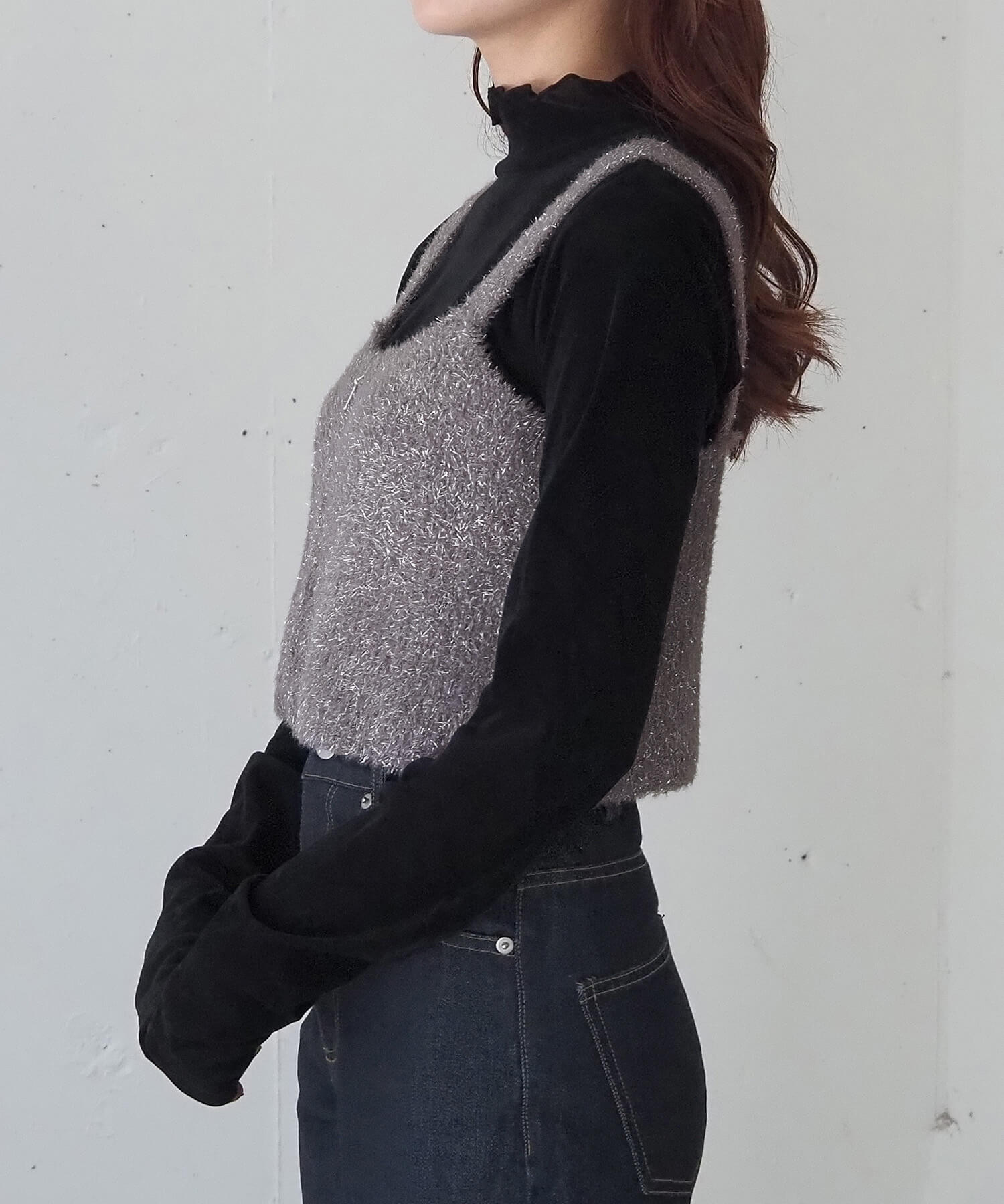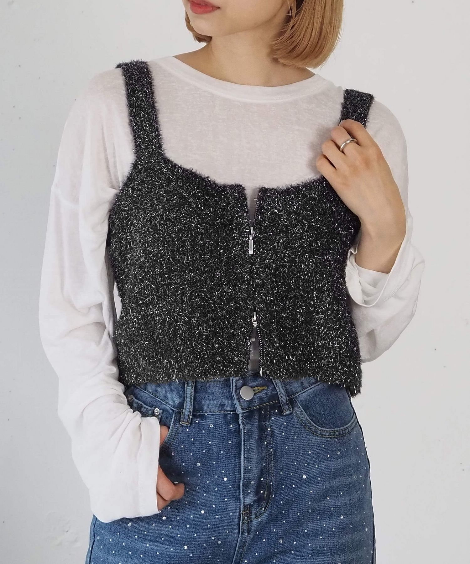 ・トップスとのレイヤードを楽しめる、ニットビスチェです。