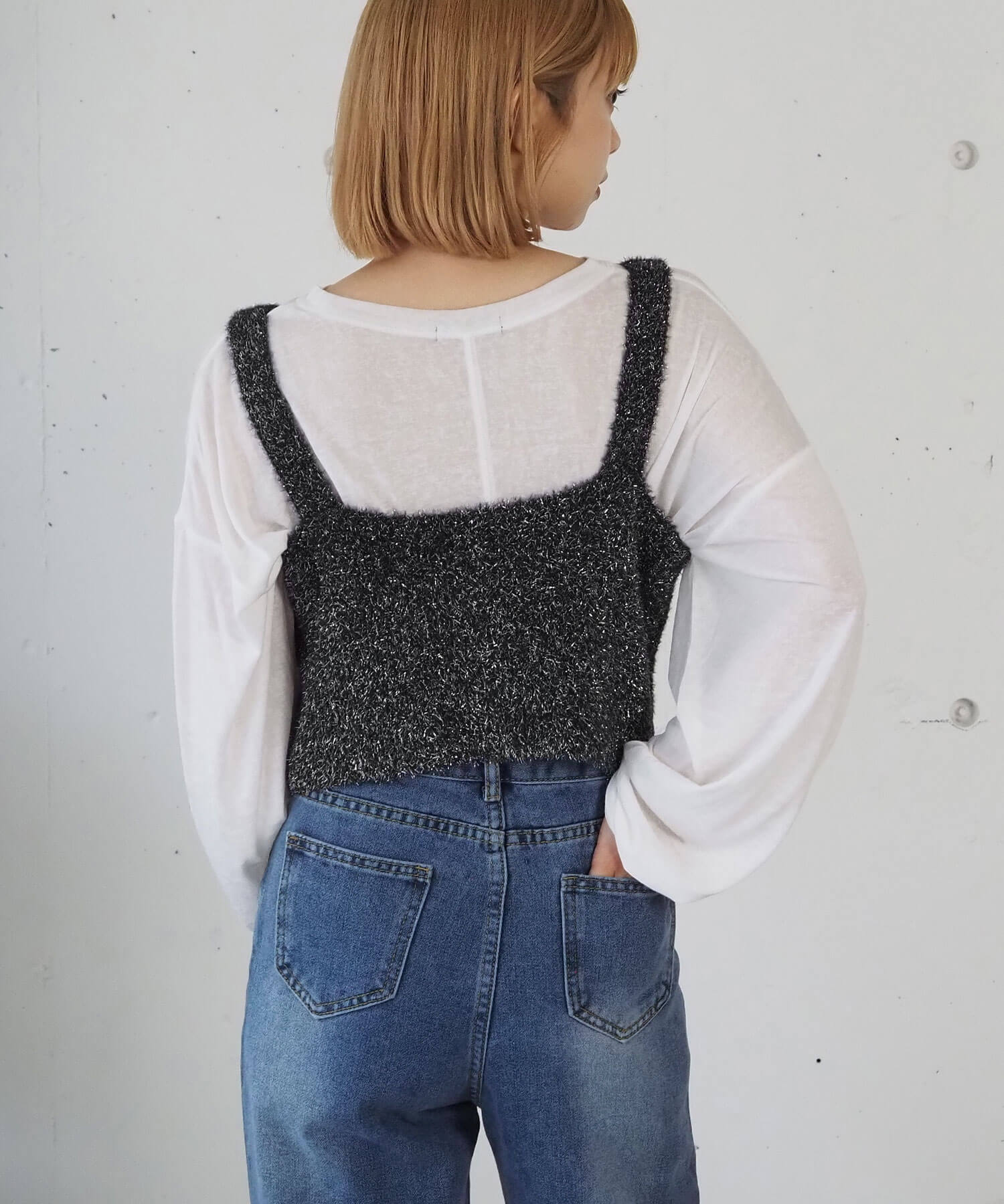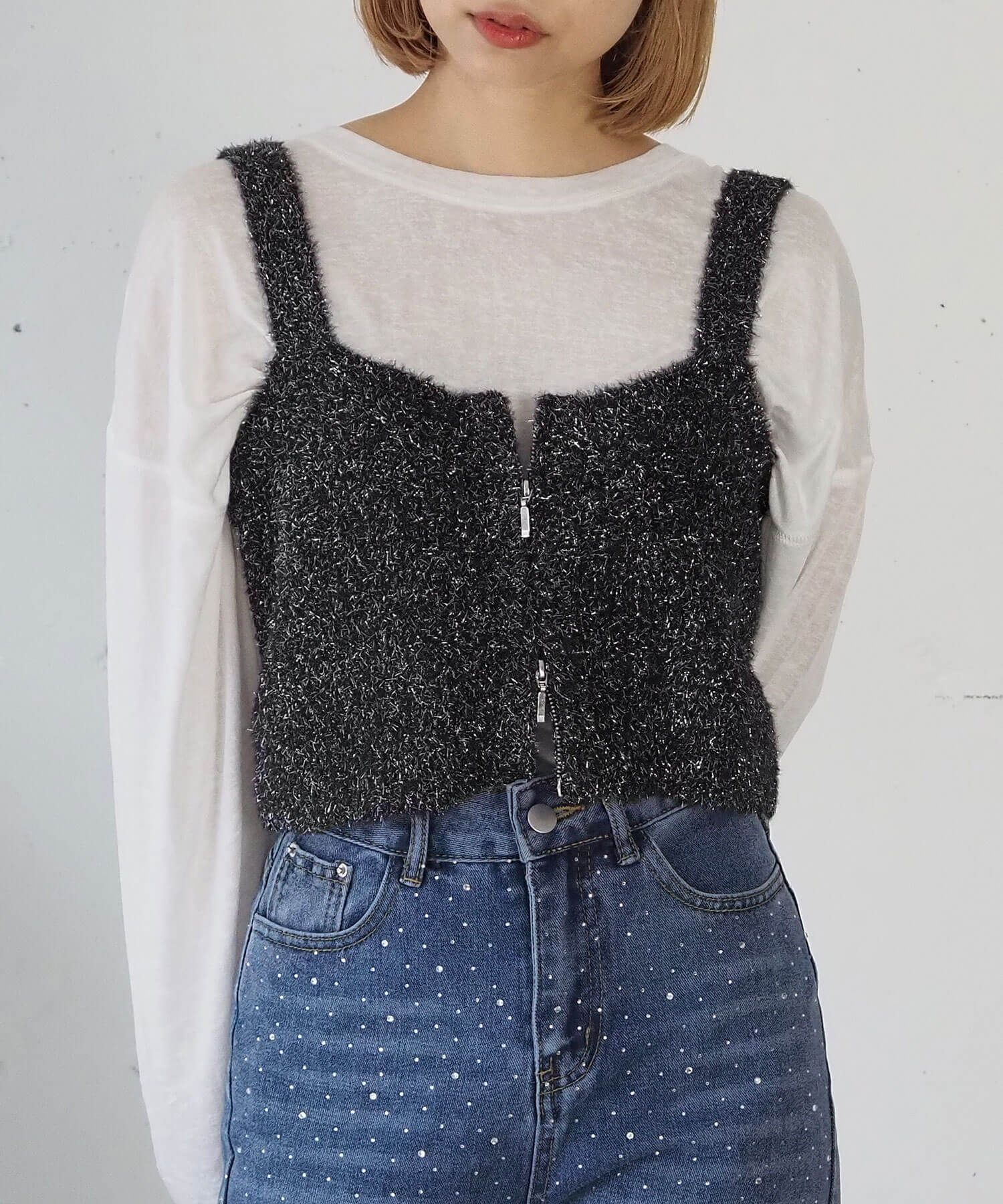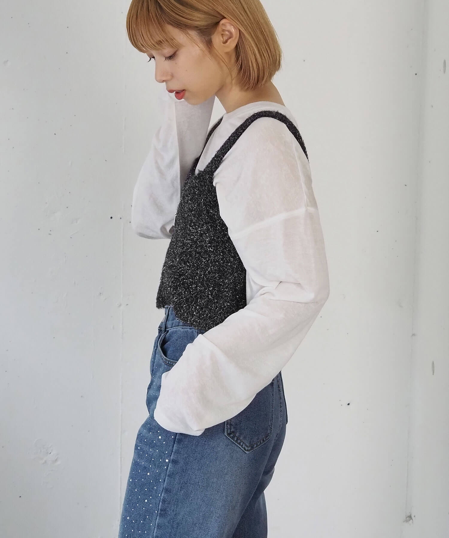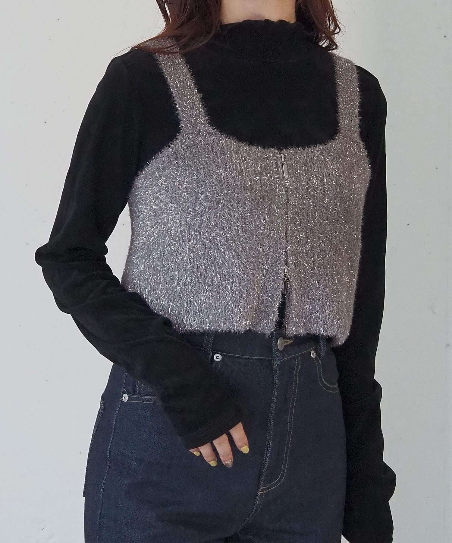 ・トップスとのレイヤードを楽しめる、ニットビスチェです。