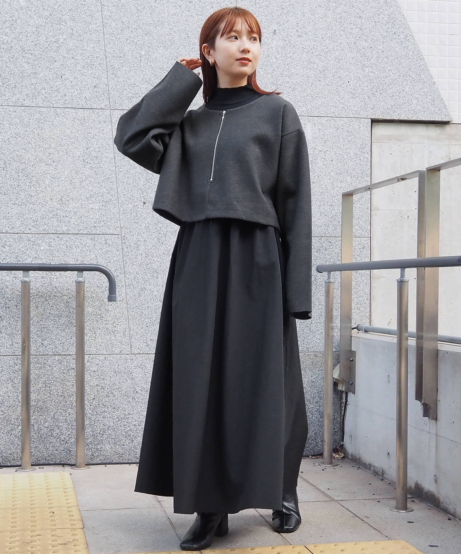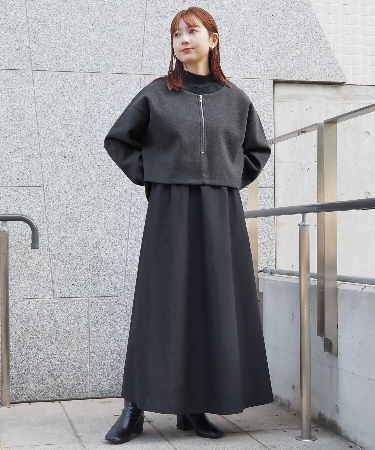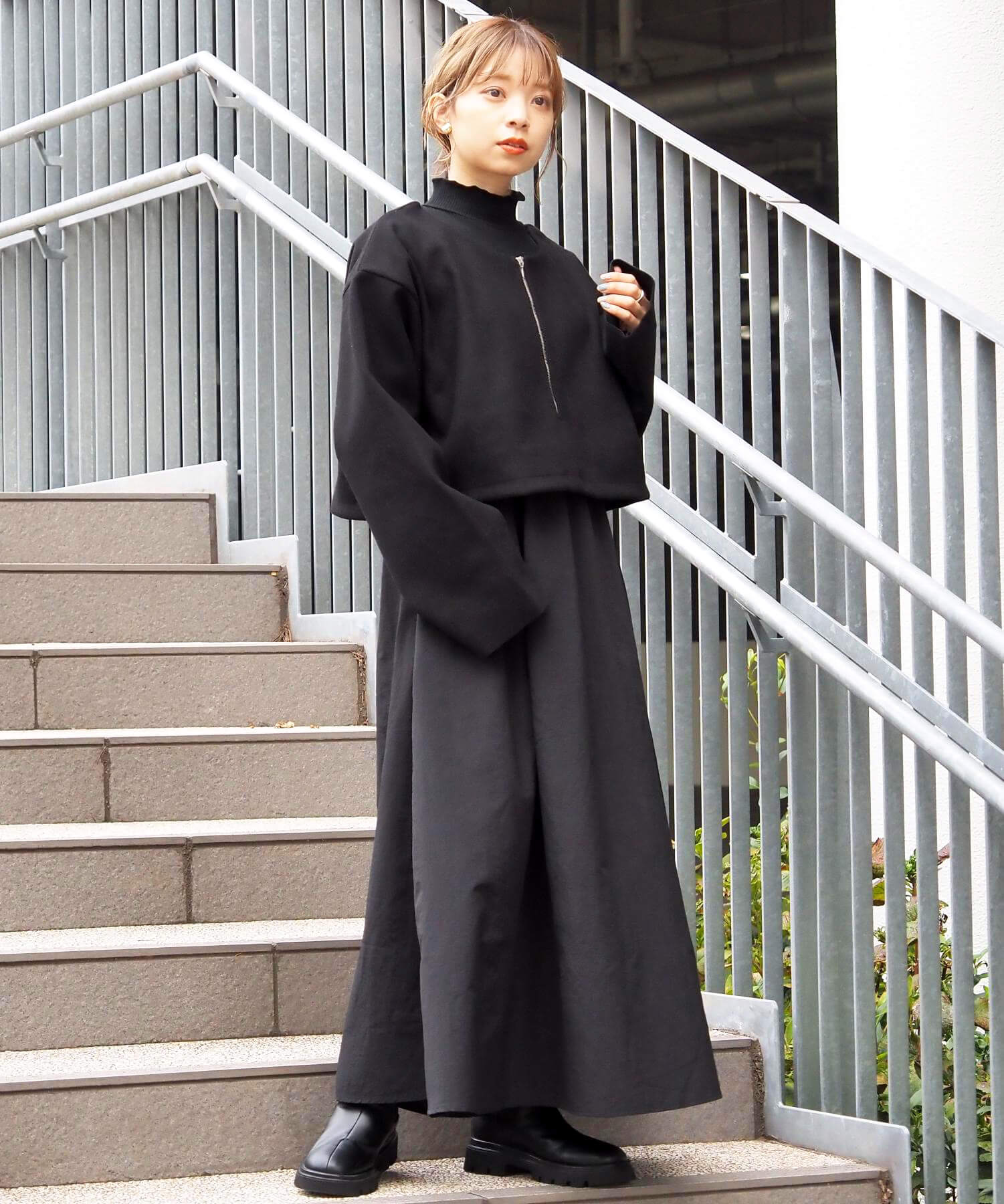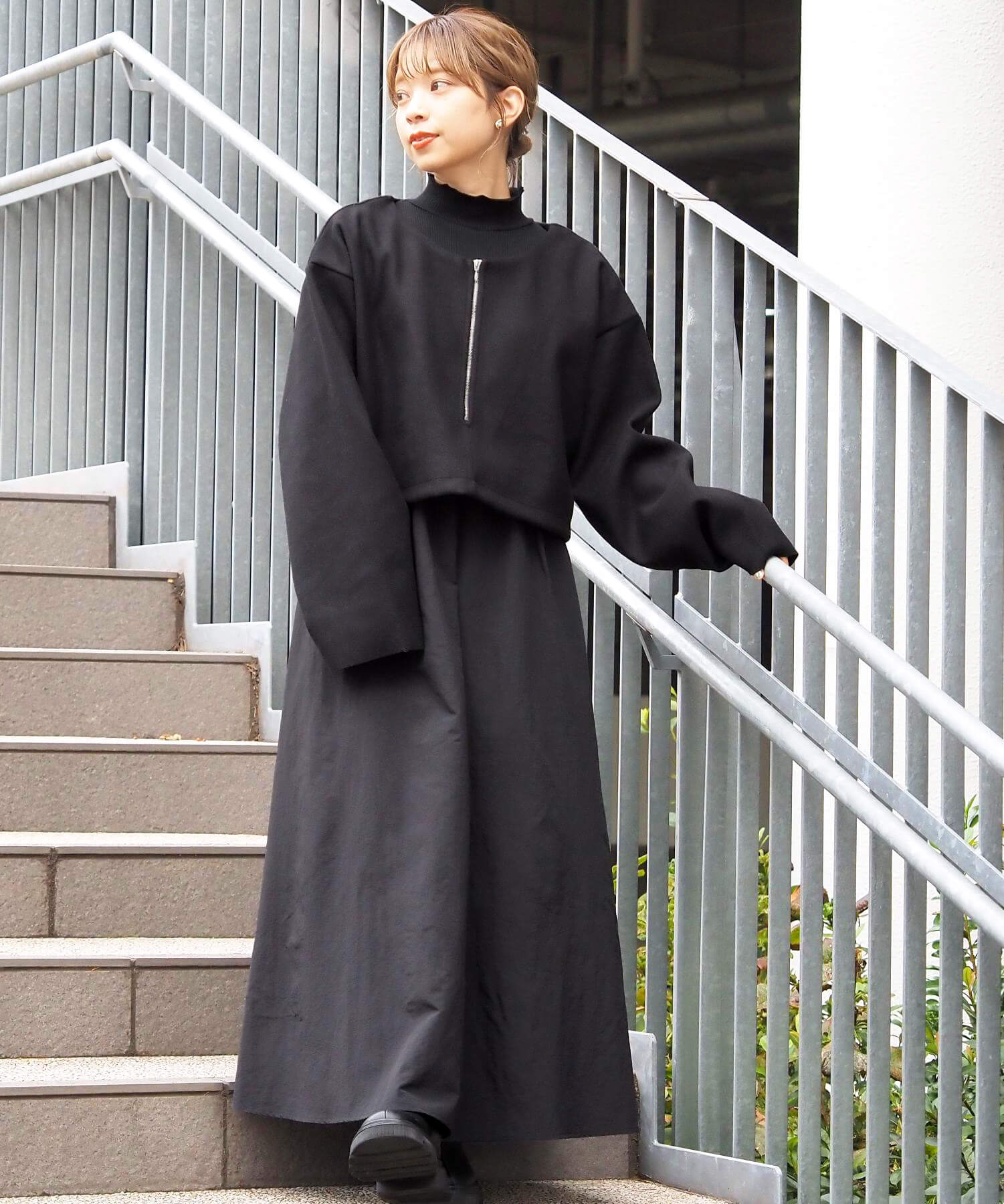 ・メルトン調のハーフジッププルオーバーとハイネックワンピースの2SETアイテムです。