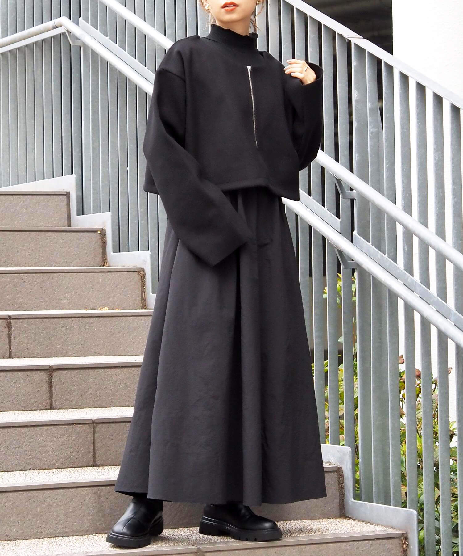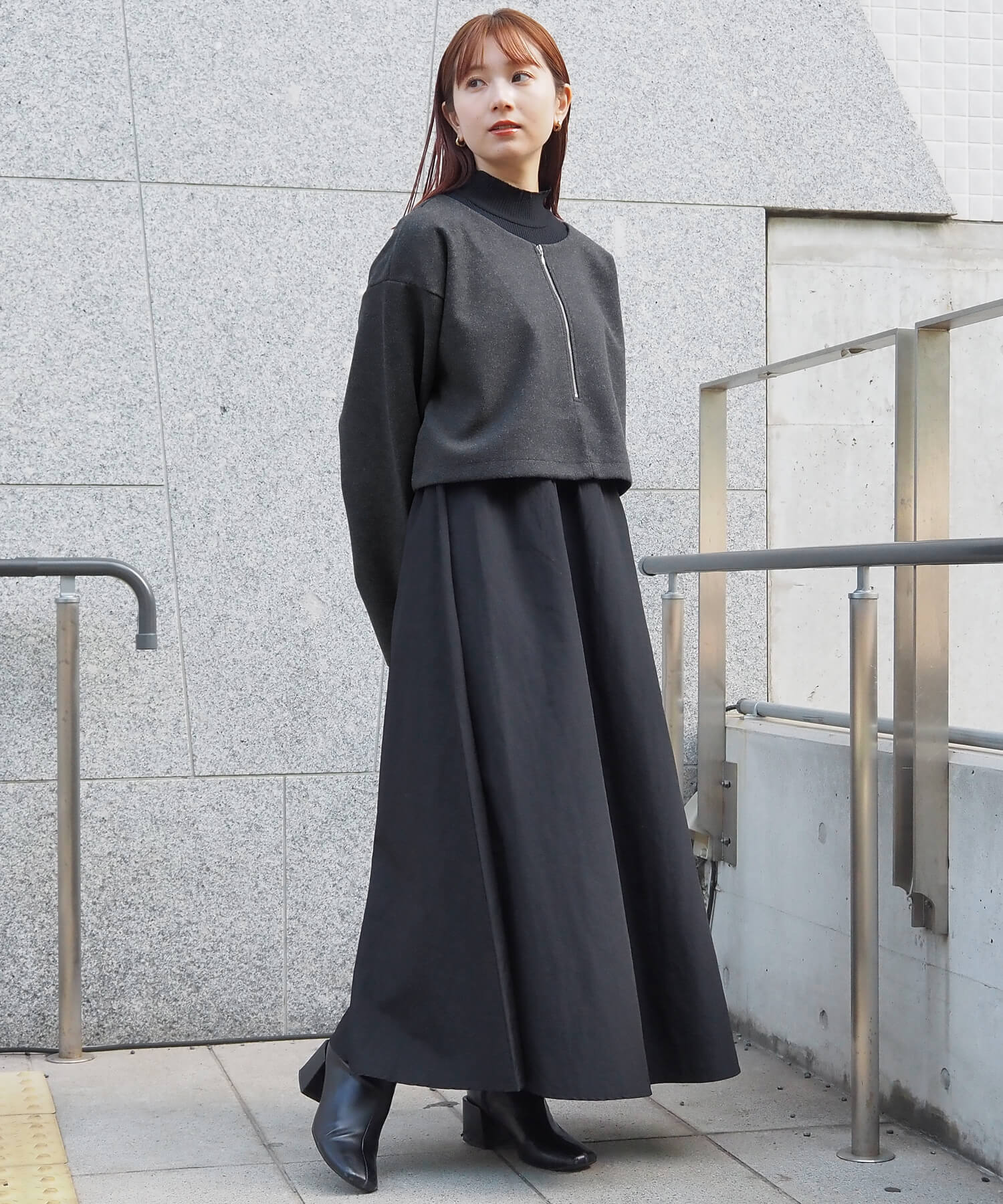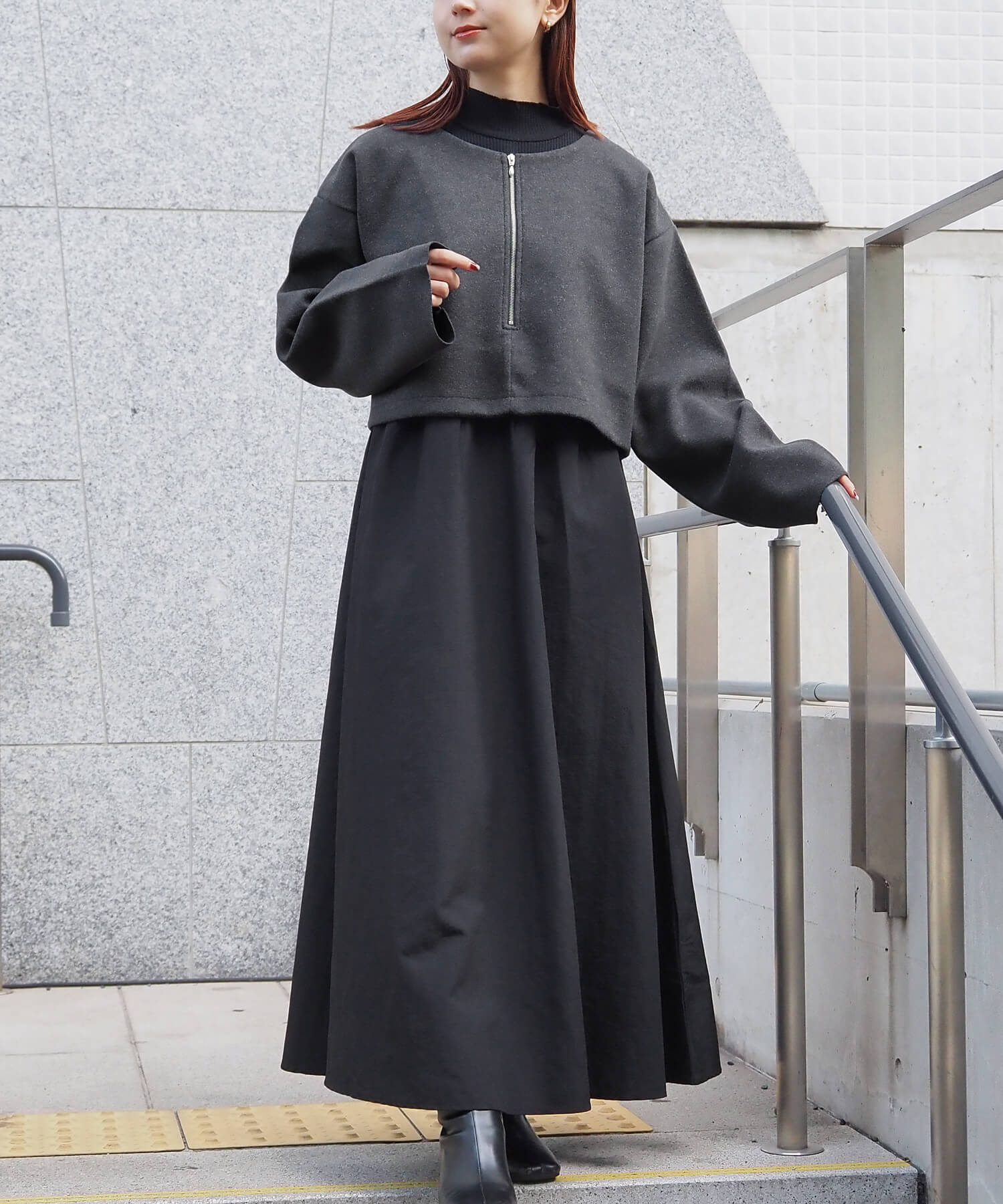 ・メルトン調のハーフジッププルオーバーとハイネックワンピースの2SETアイテムです。