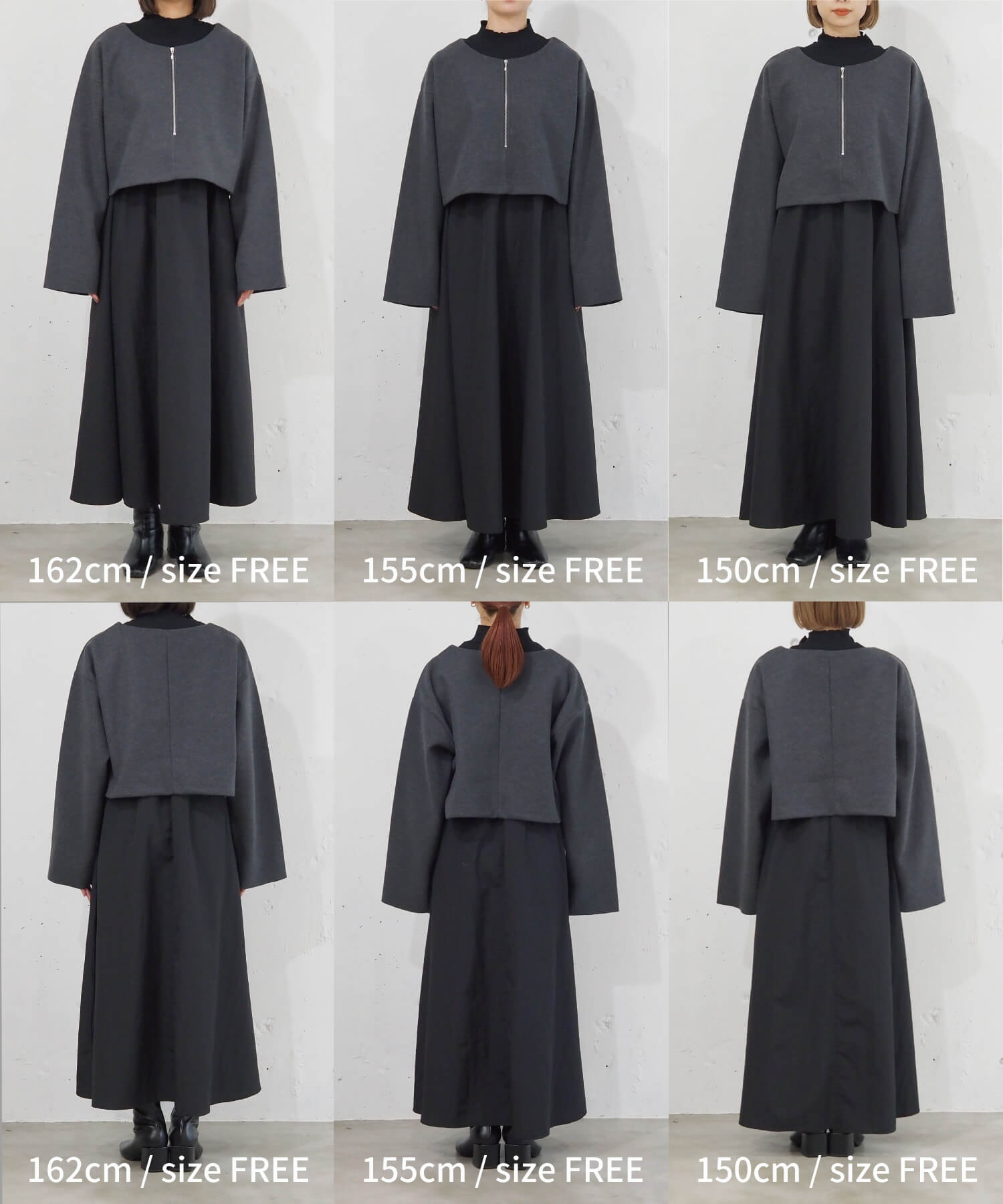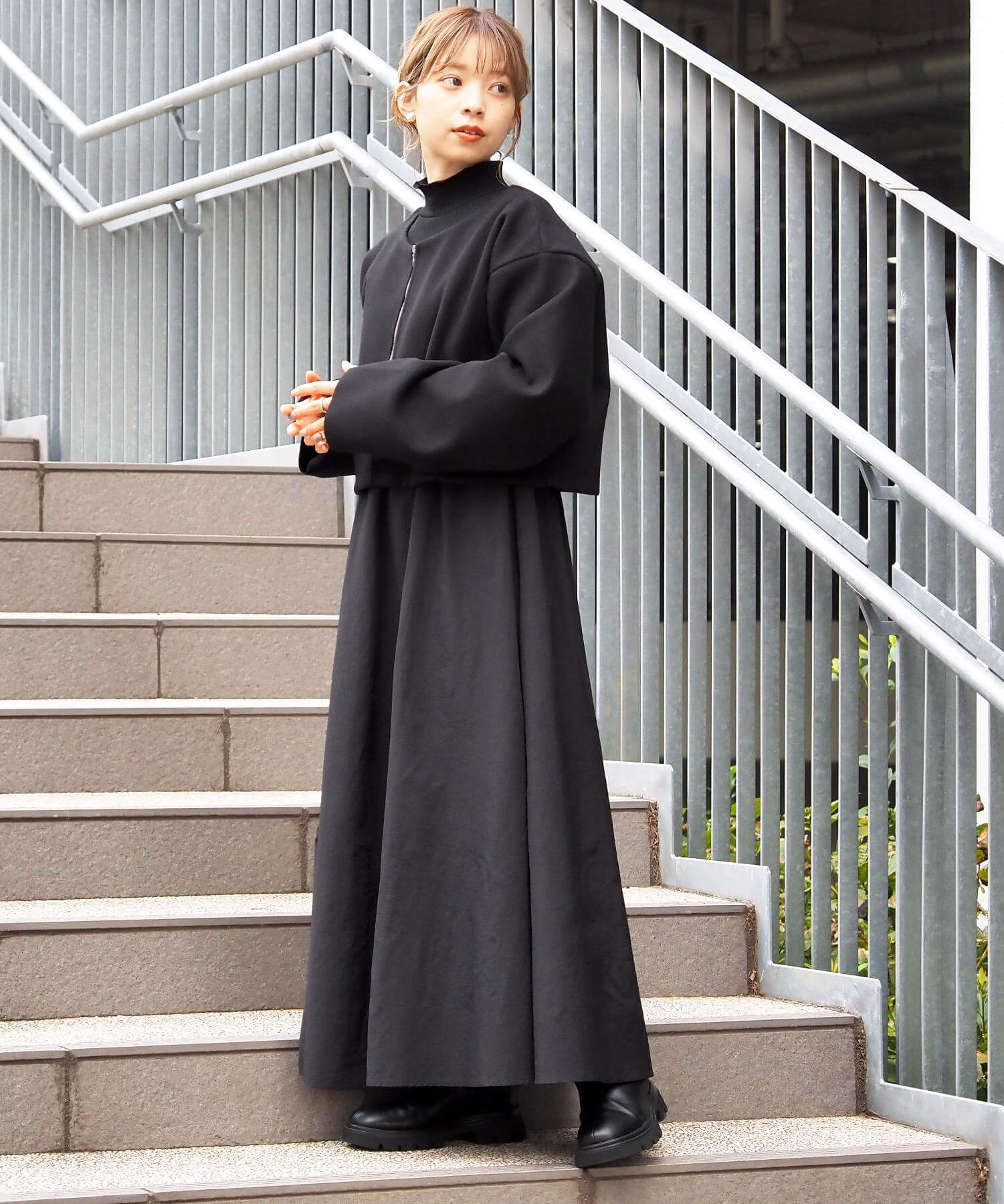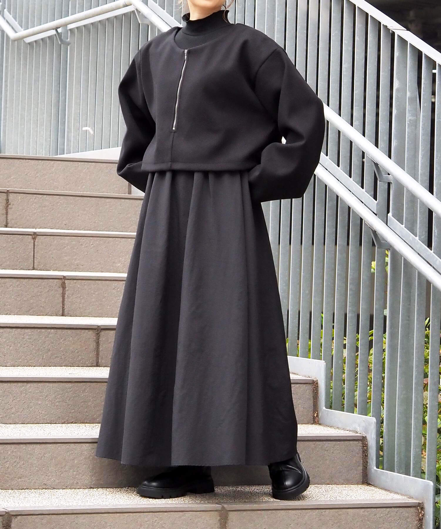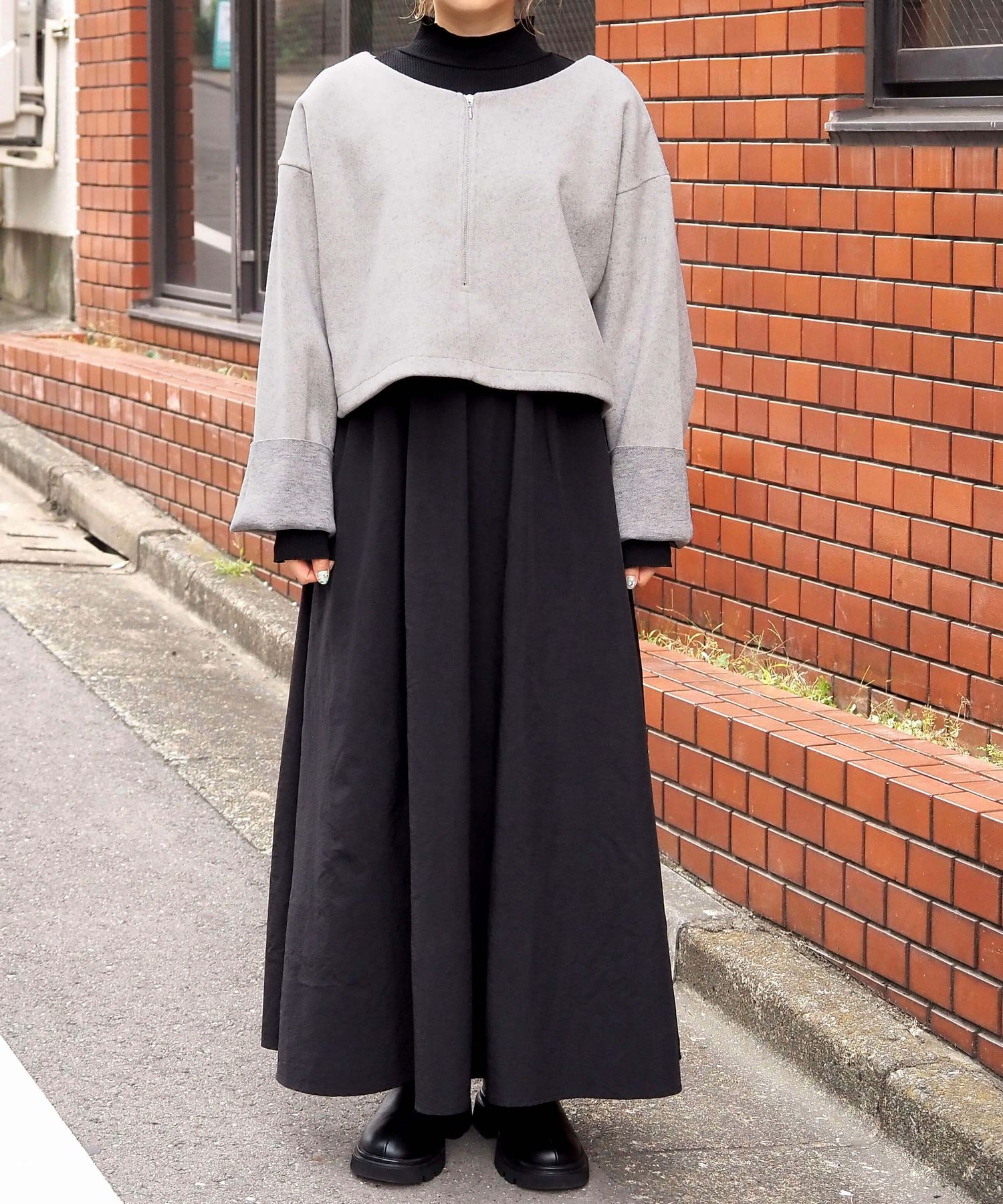 ・メルトン調のハーフジッププルオーバーとハイネックワンピースの2SETアイテムです。