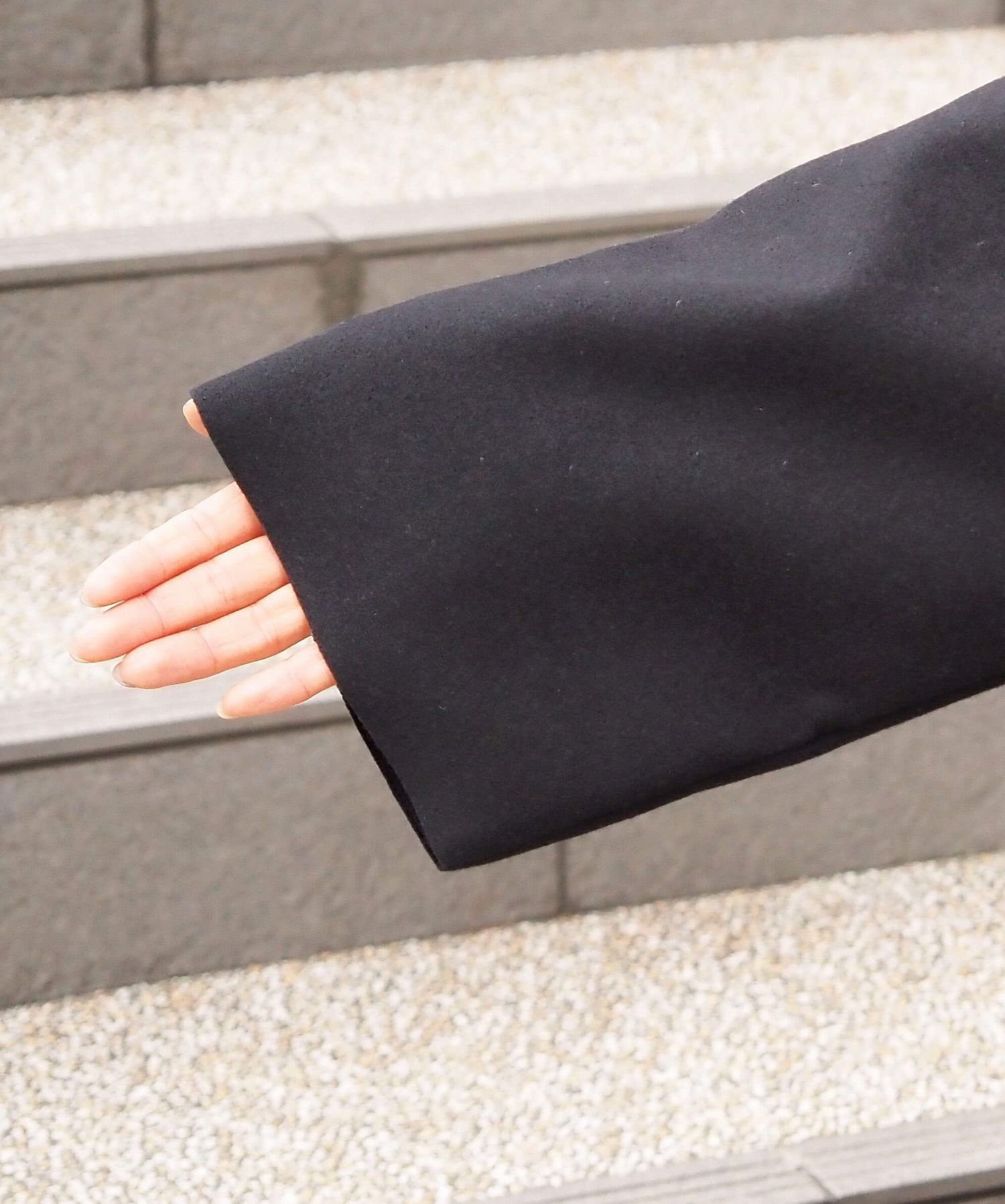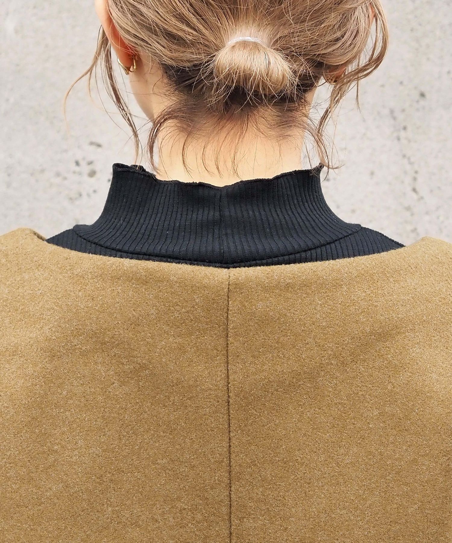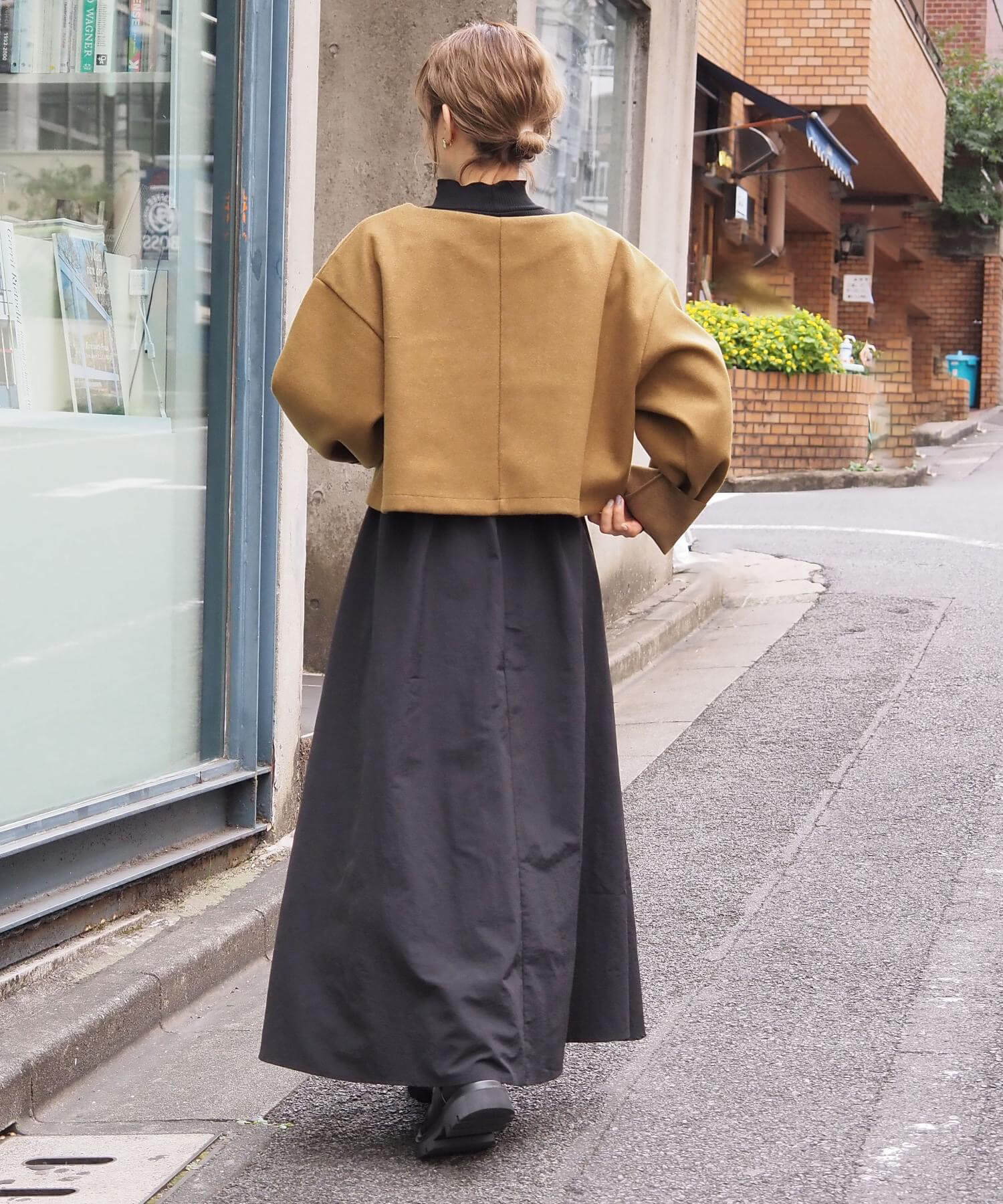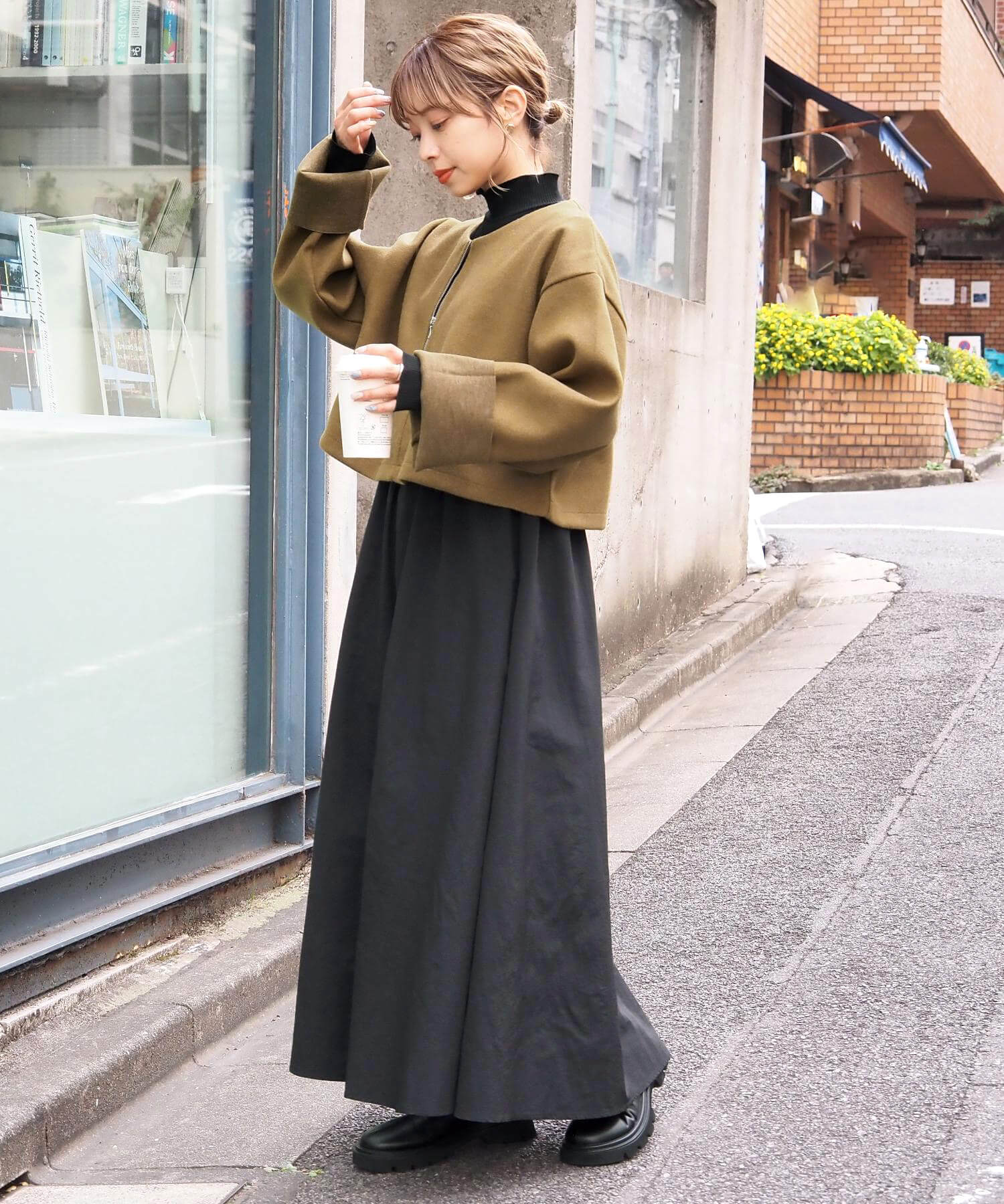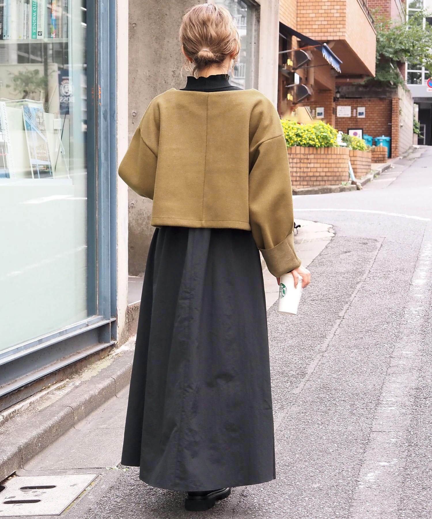 ・ウールライクなトップスは、コンパクトなショート丈とこなれ感のあるワイドスリーブがポイント。アクセサリーいらずのハーフジップデザインで、着こなしがぐっと格上げされます。